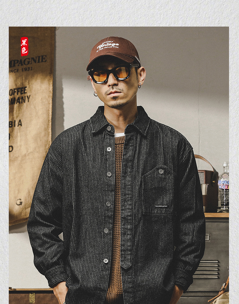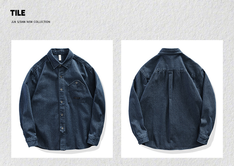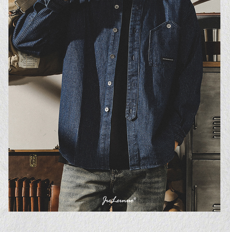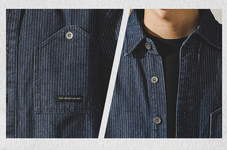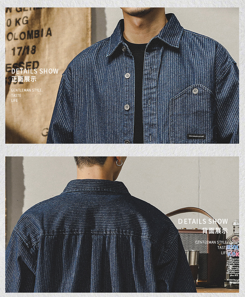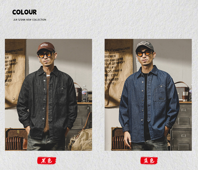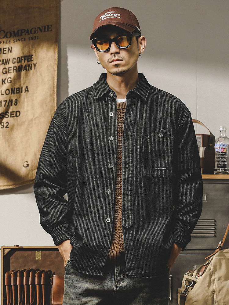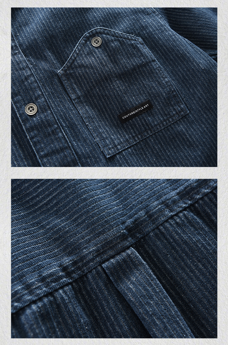 Jie Renault 320g 무거운 줄무늬 작업 셔츠 남자의 긴 소매 봄과 가을 두꺼운 미국 캐주얼 느슨한 골동품 셔츠