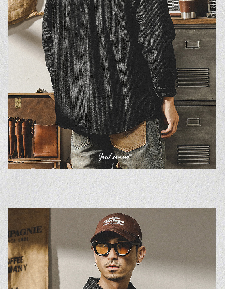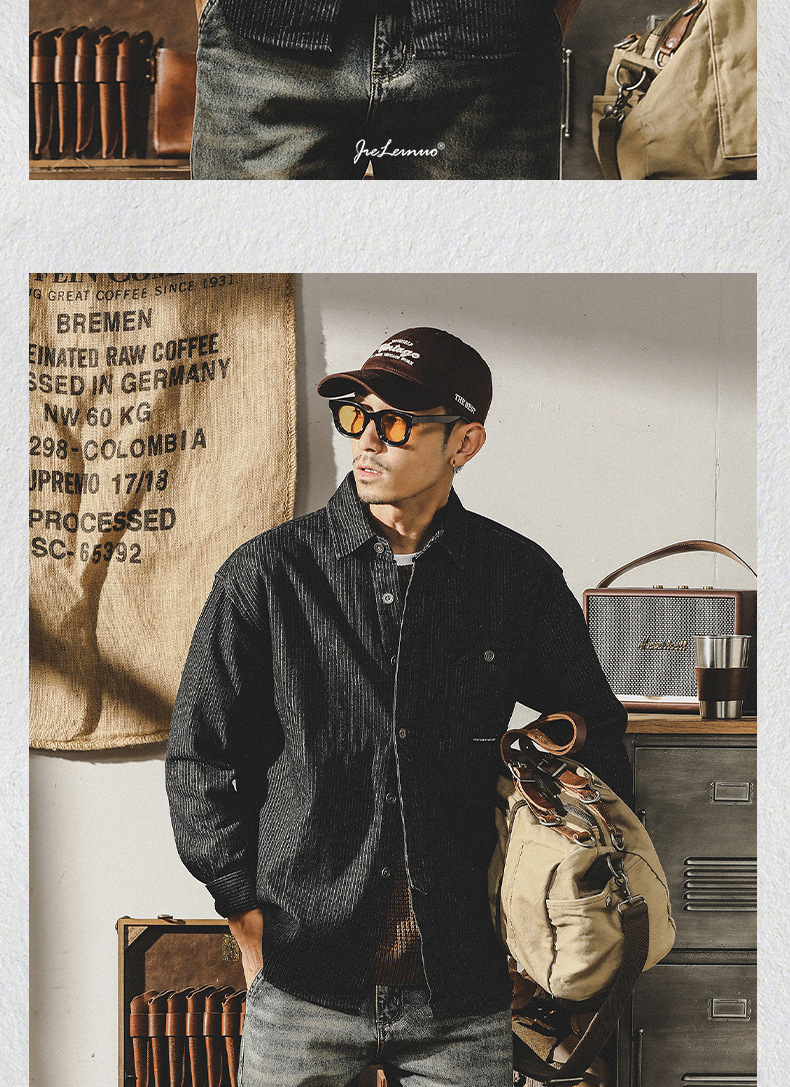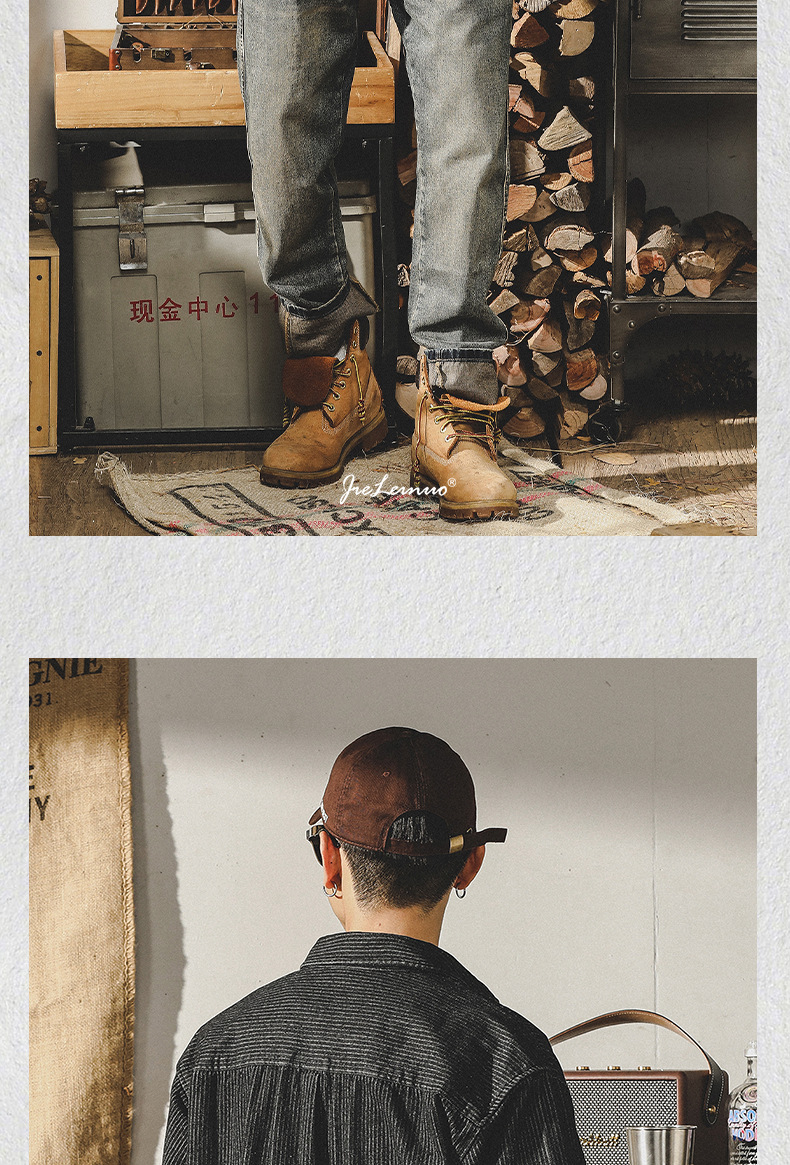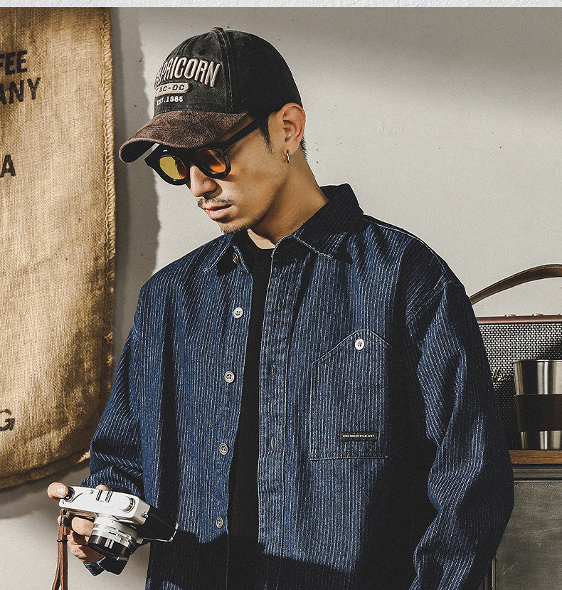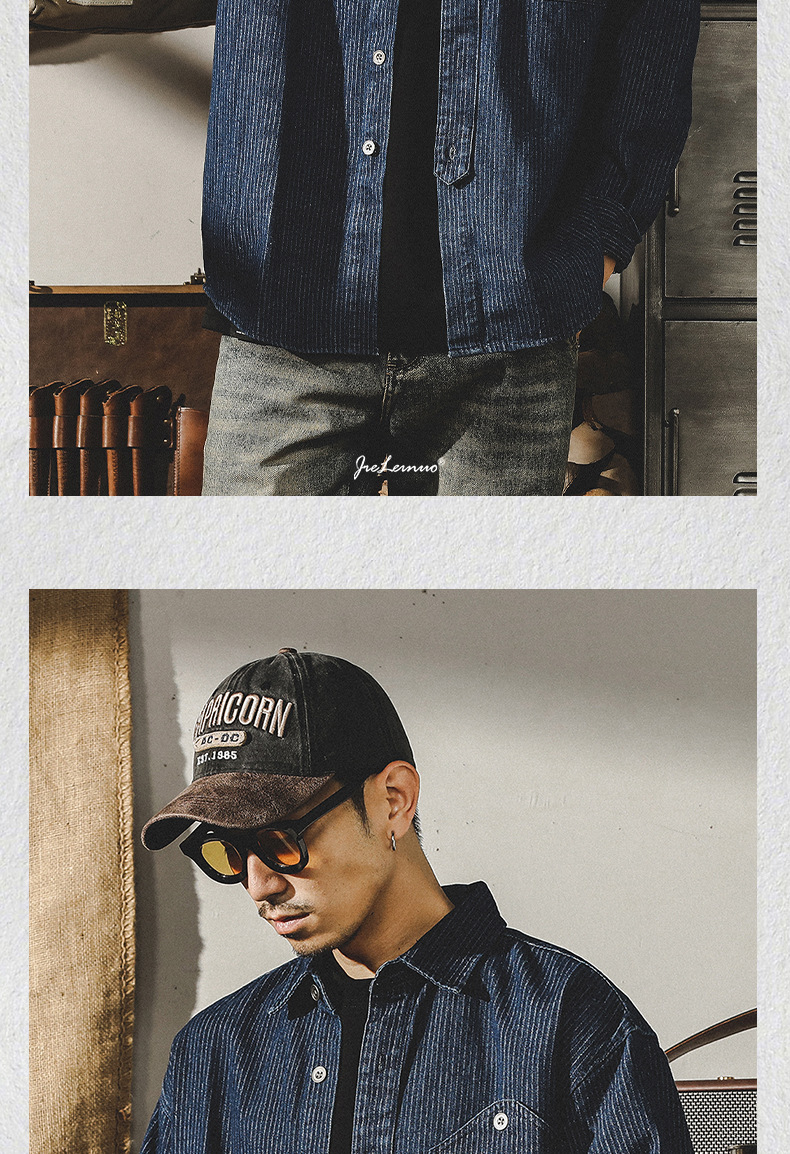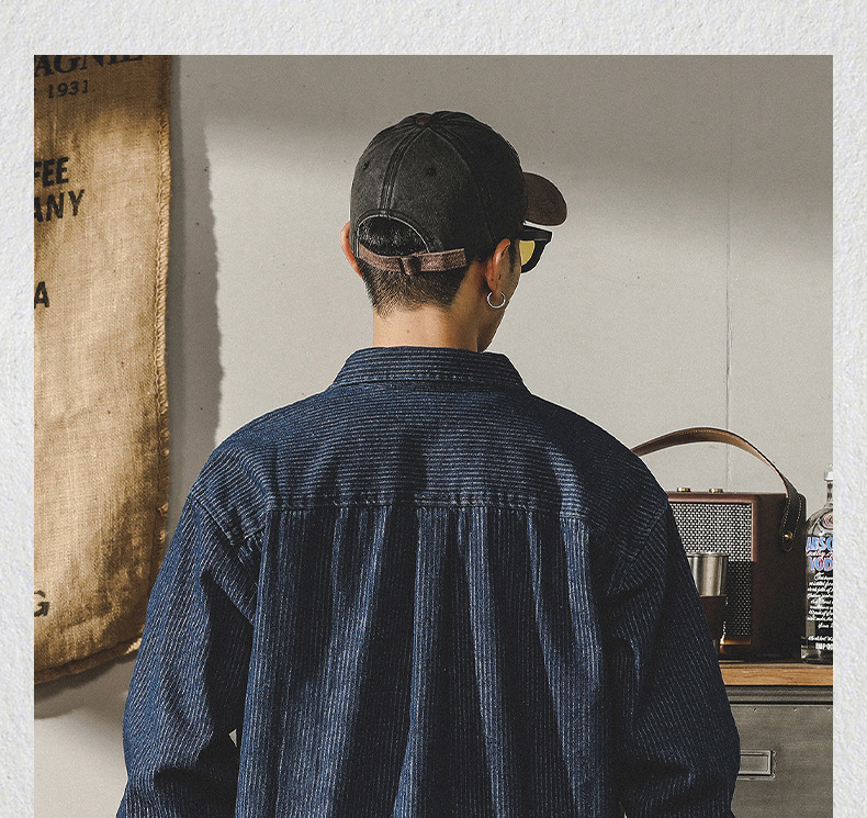 Jie Renault 320g 무거운 줄무늬 작업 셔츠 남자의 긴 소매 봄과 가을 두꺼운 미국 캐주얼 느슨한 골동품 셔츠