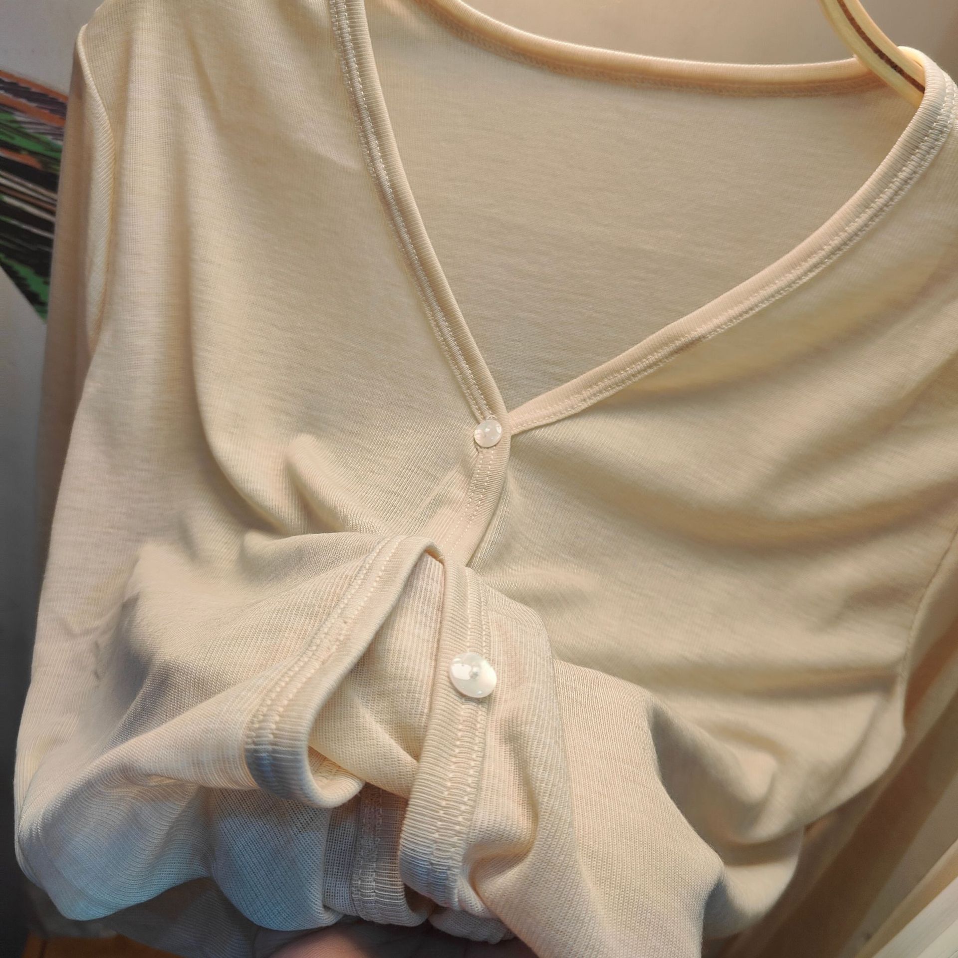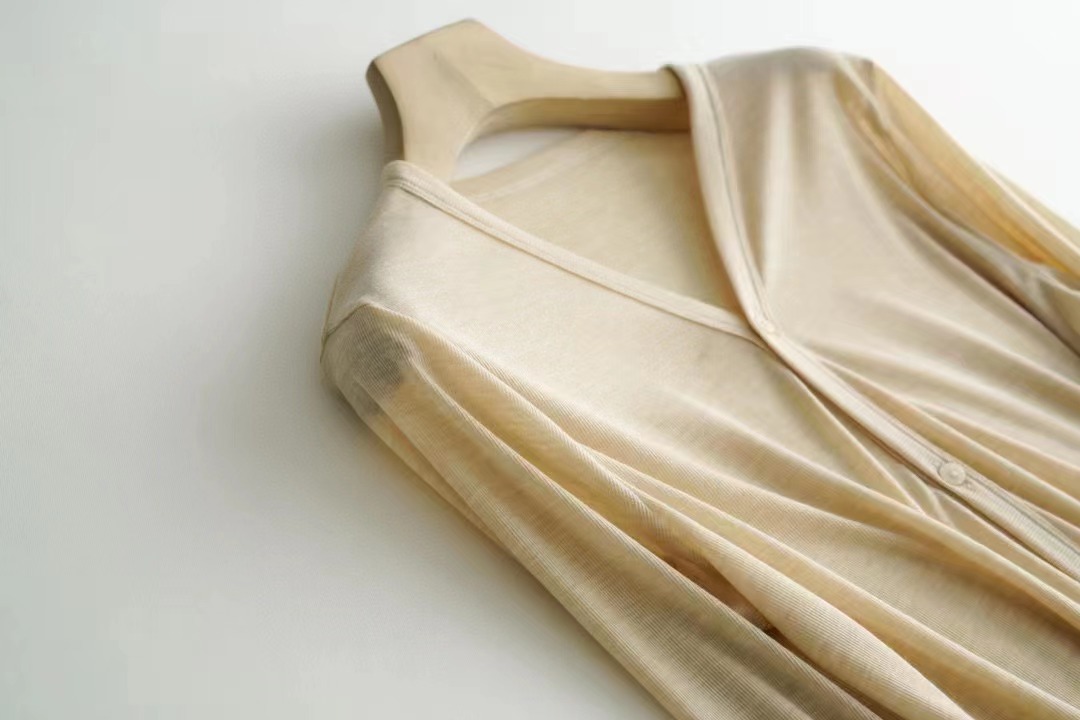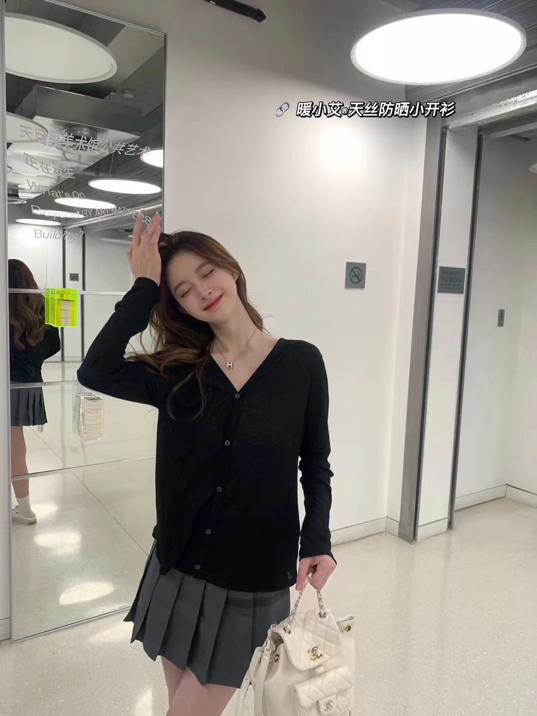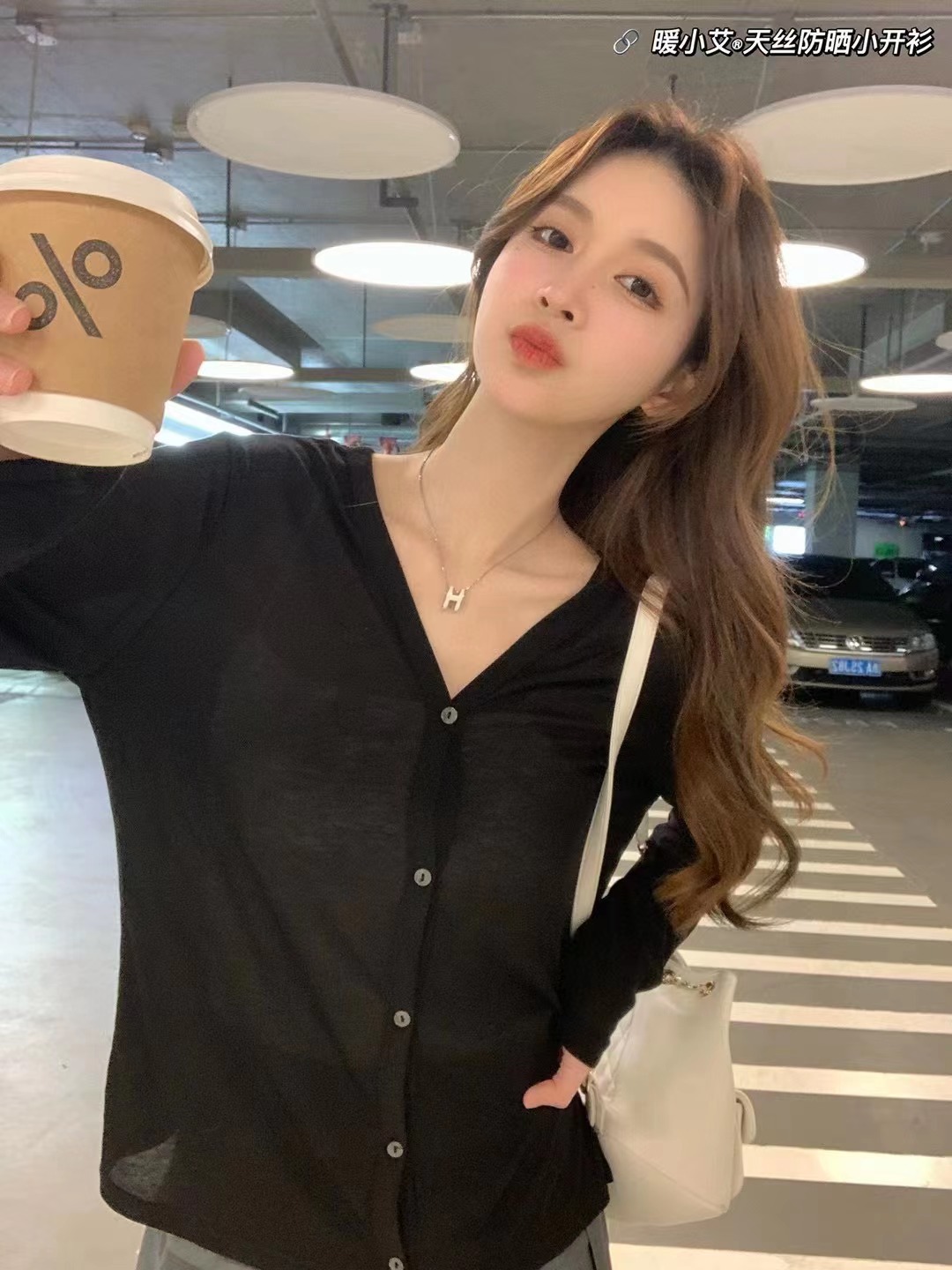 카스티야 ~ 여름 일본 텐셀 카디건 여성용 긴팔 얇은 슬링 아우터 블라우스 V넥 에어컨 셔츠 탑