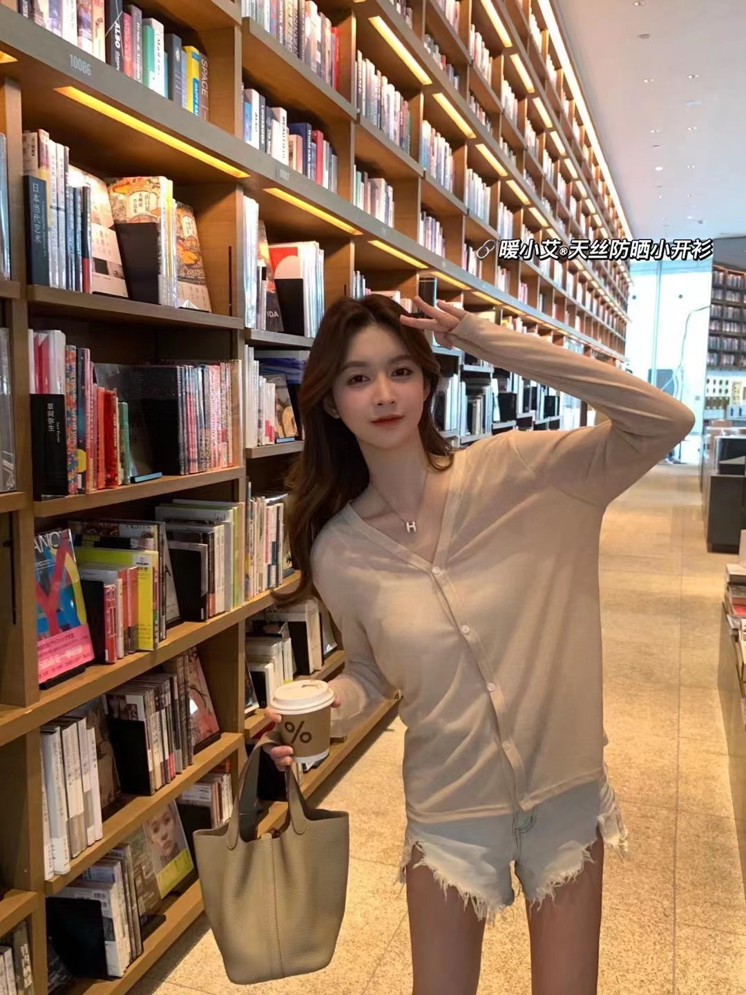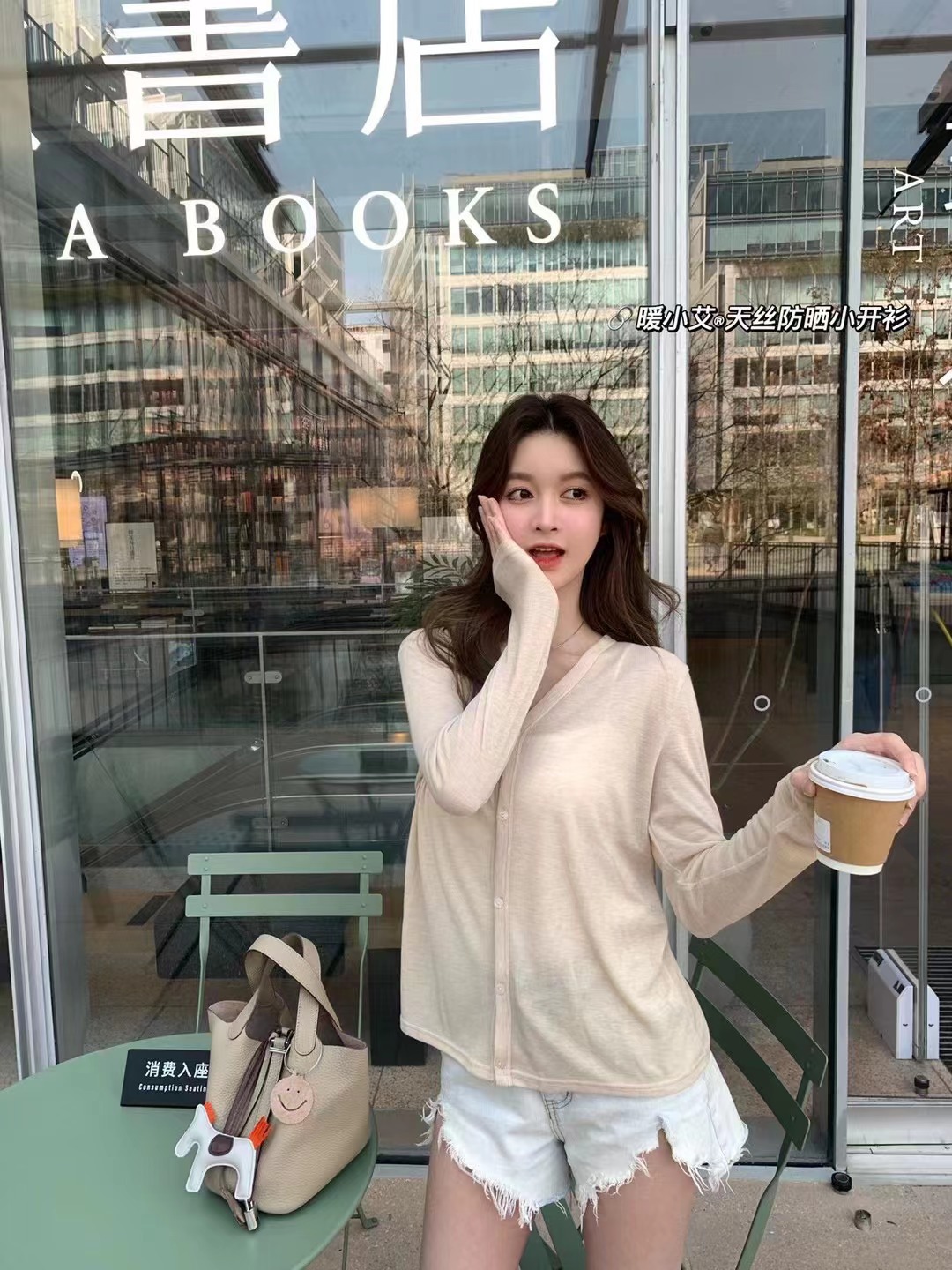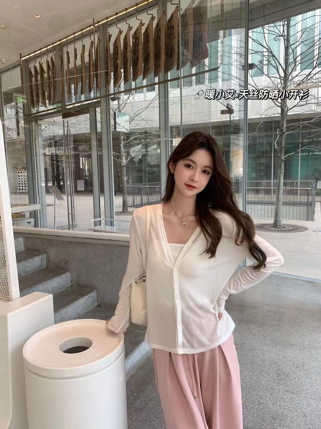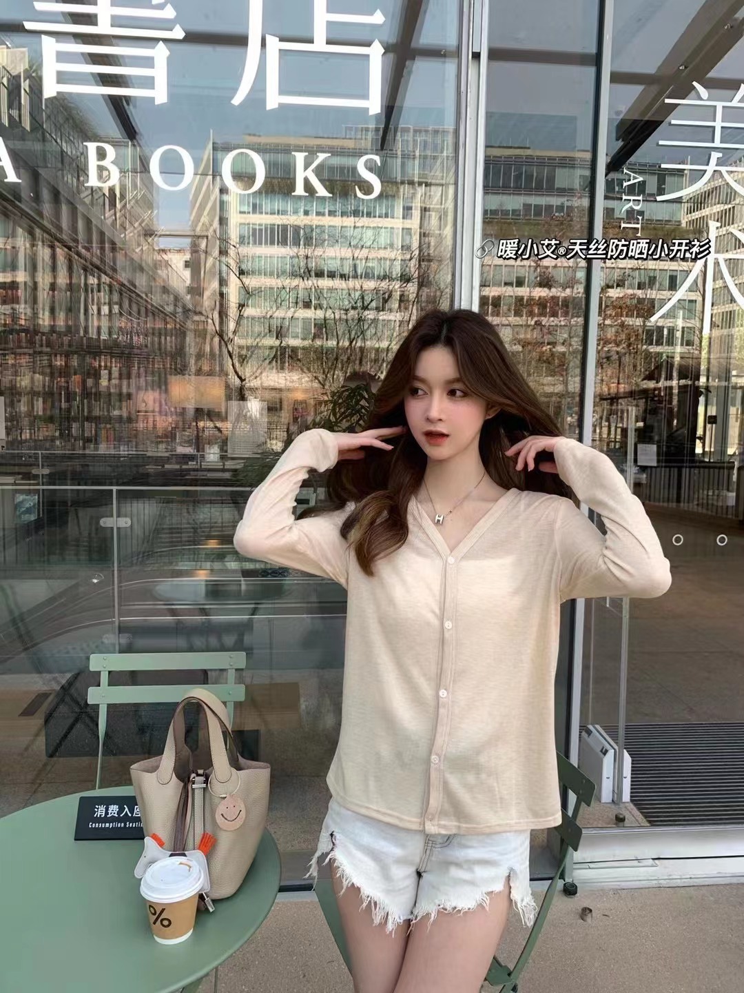 카스티야 ~ 여름 일본 텐셀 카디건 여성용 긴팔 얇은 슬링 아우터 블라우스 V넥 에어컨 셔츠 탑스토어 가기