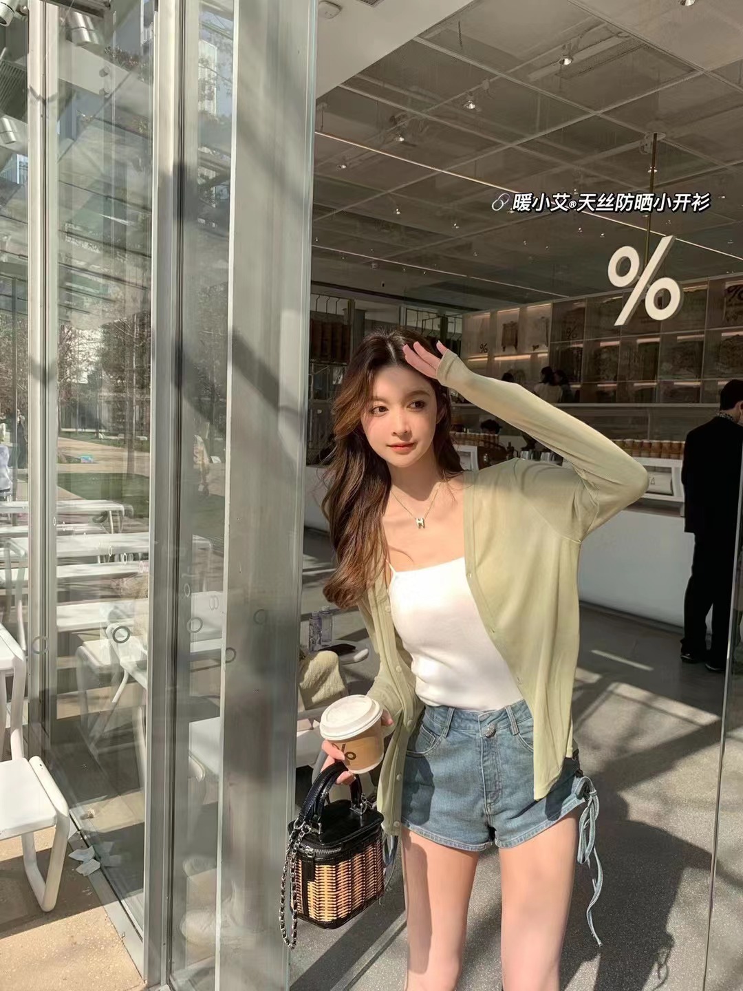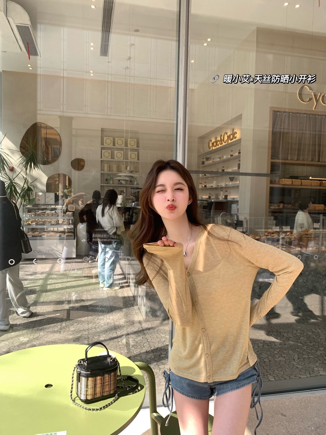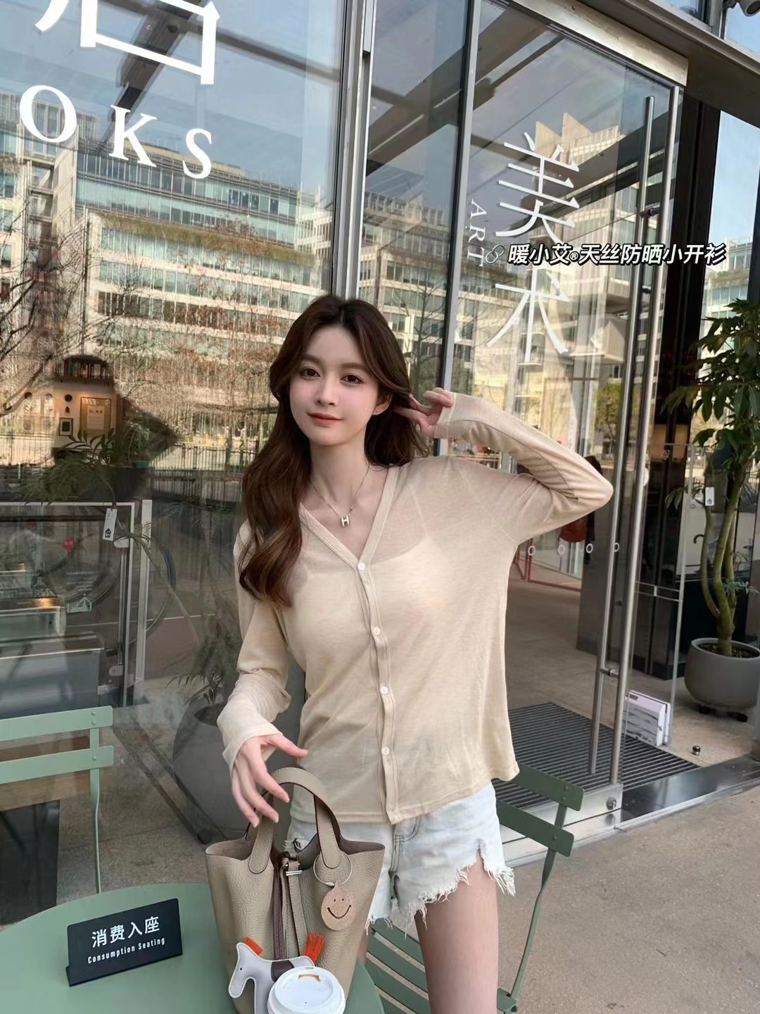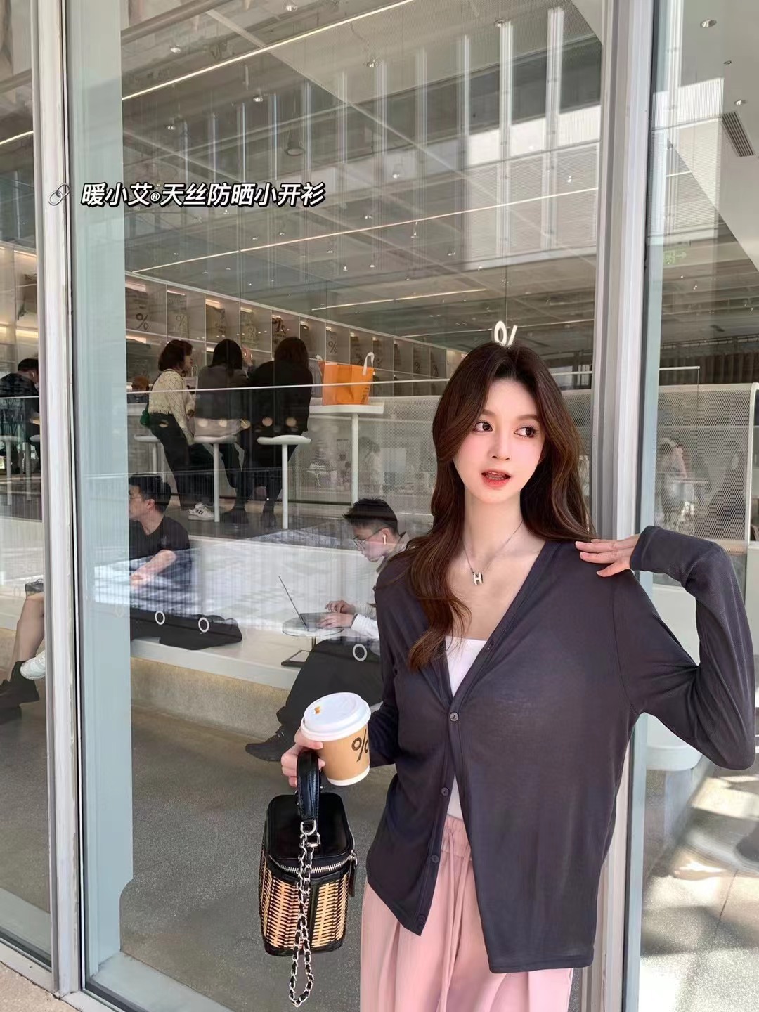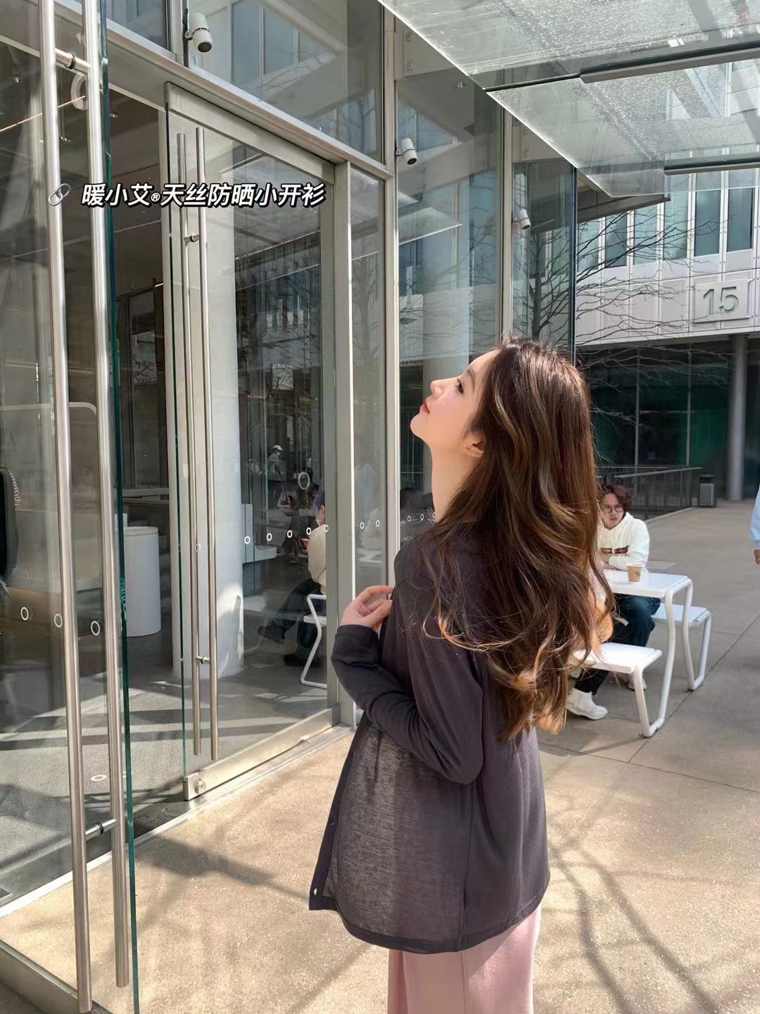 카스티야 ~ 여름 일본 텐셀 카디건 여성용 긴팔 얇은 슬링 아우터 블라우스 V넥 에어컨 셔츠 탑스토어 가기