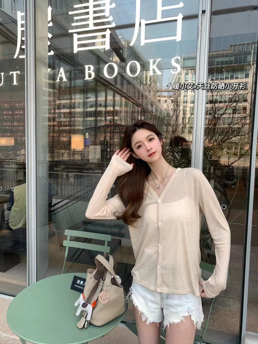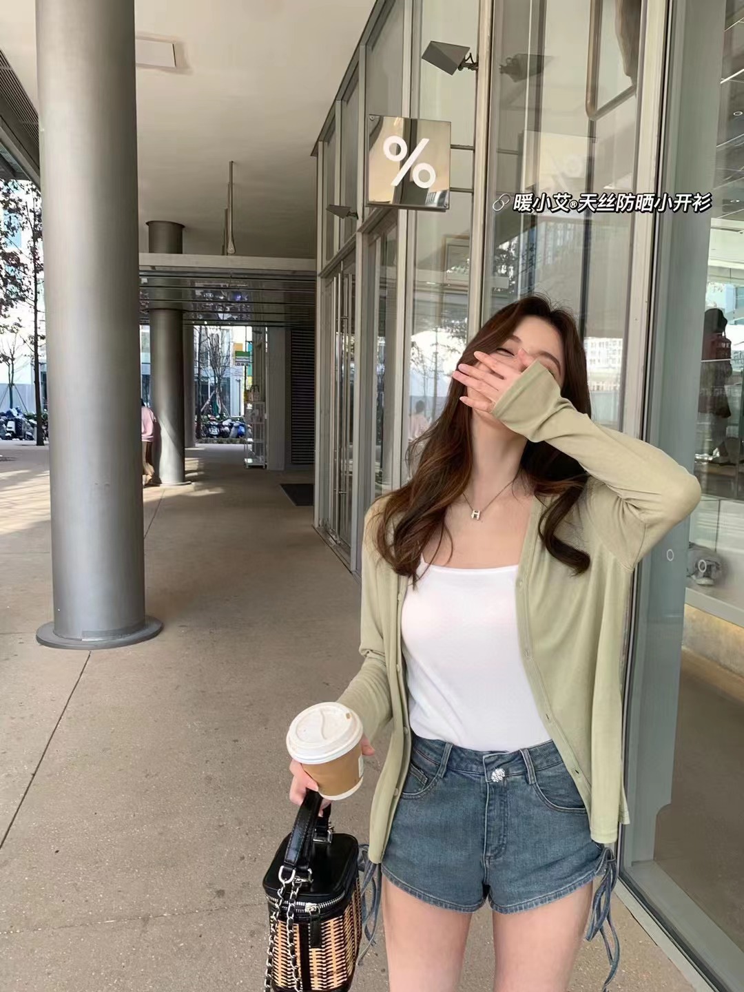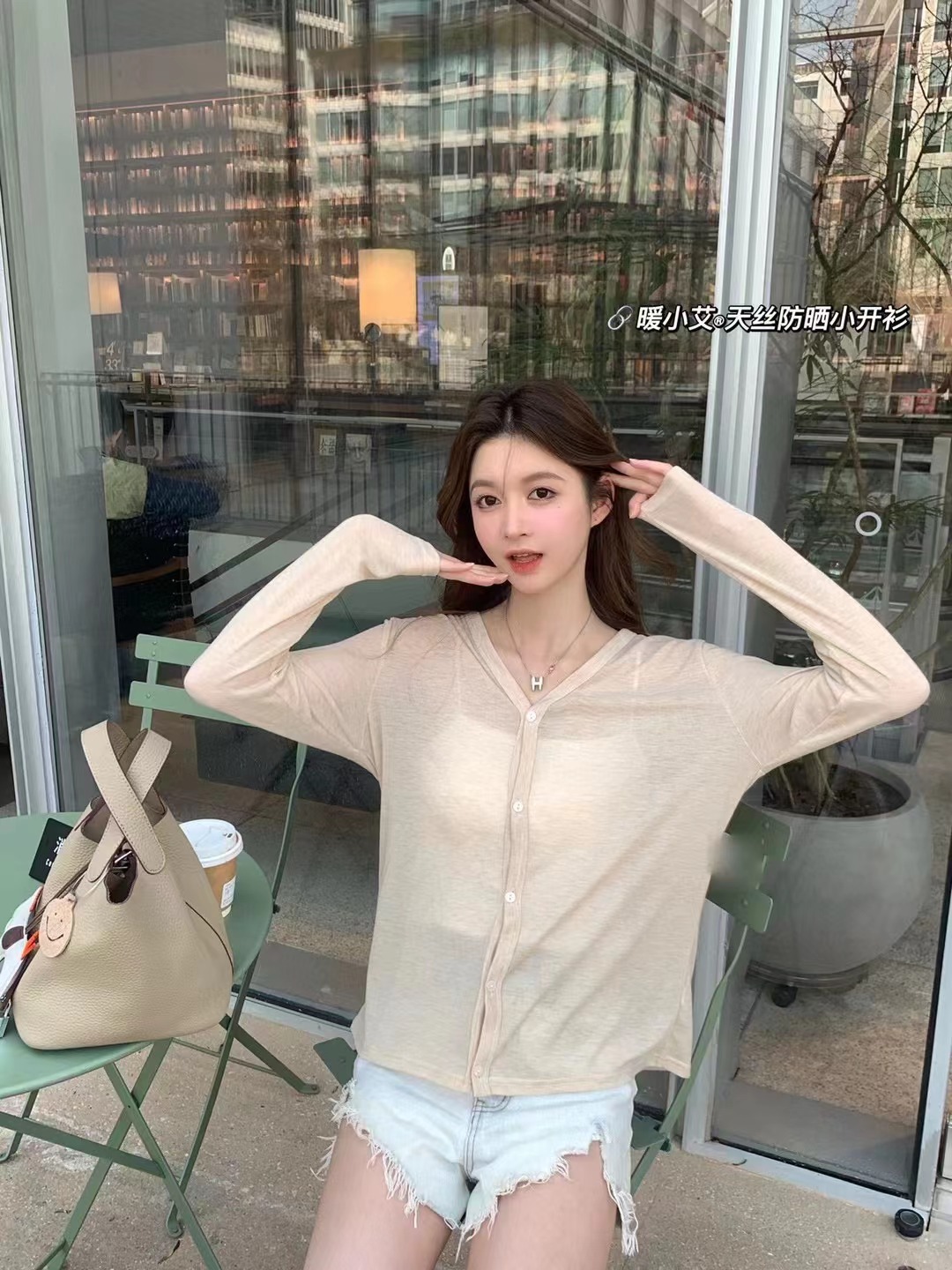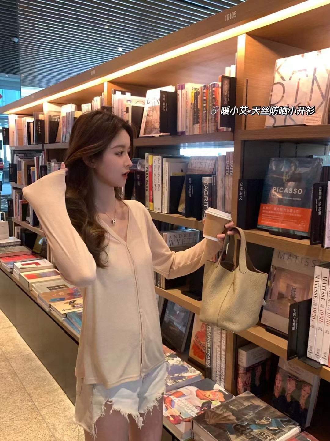 카스티야 ~ 여름 일본 텐셀 카디건 여성용 긴팔 얇은 슬링 아우터 블라우스 V넥 에어컨 셔츠 탑스토어 가기