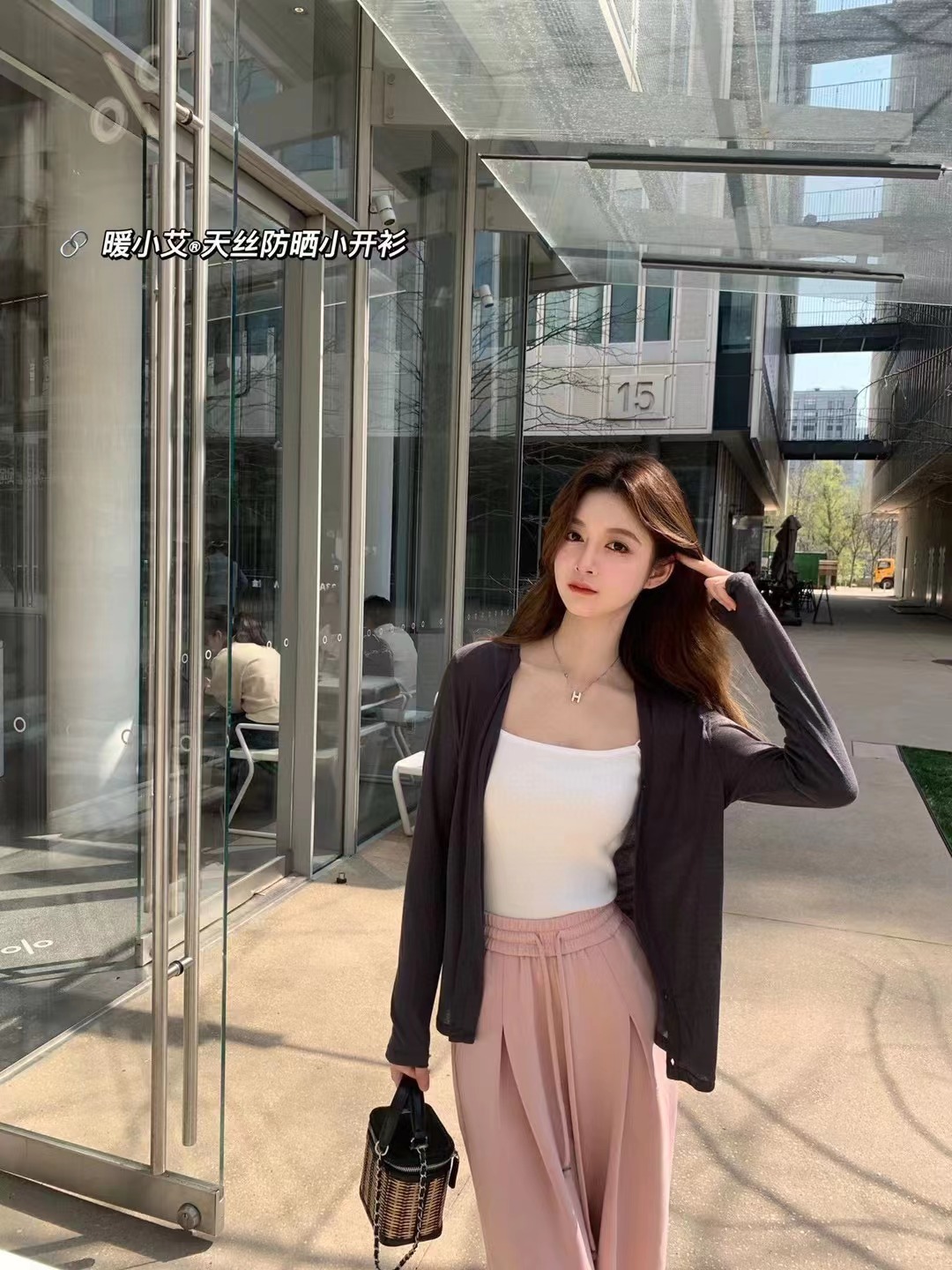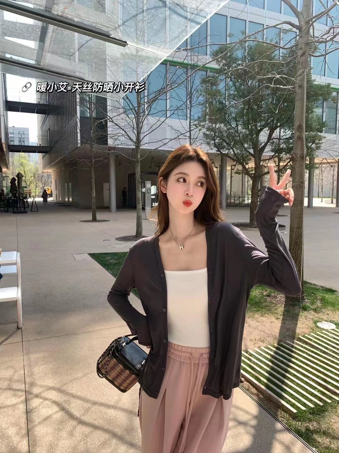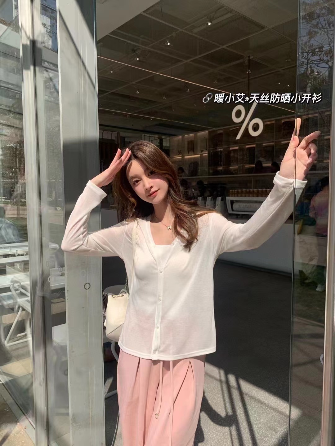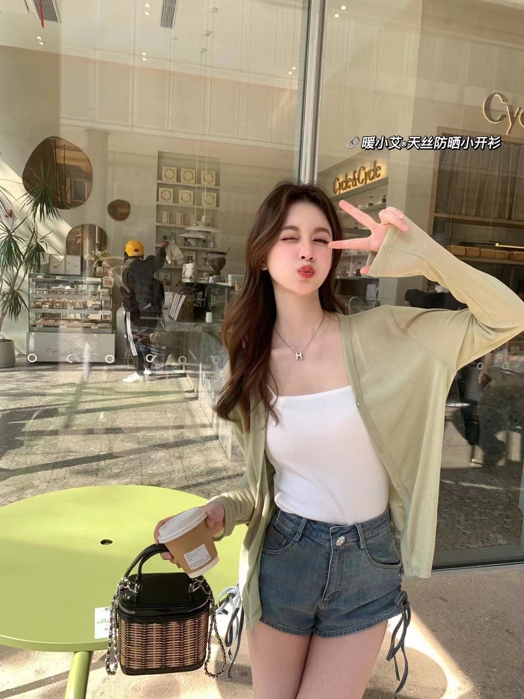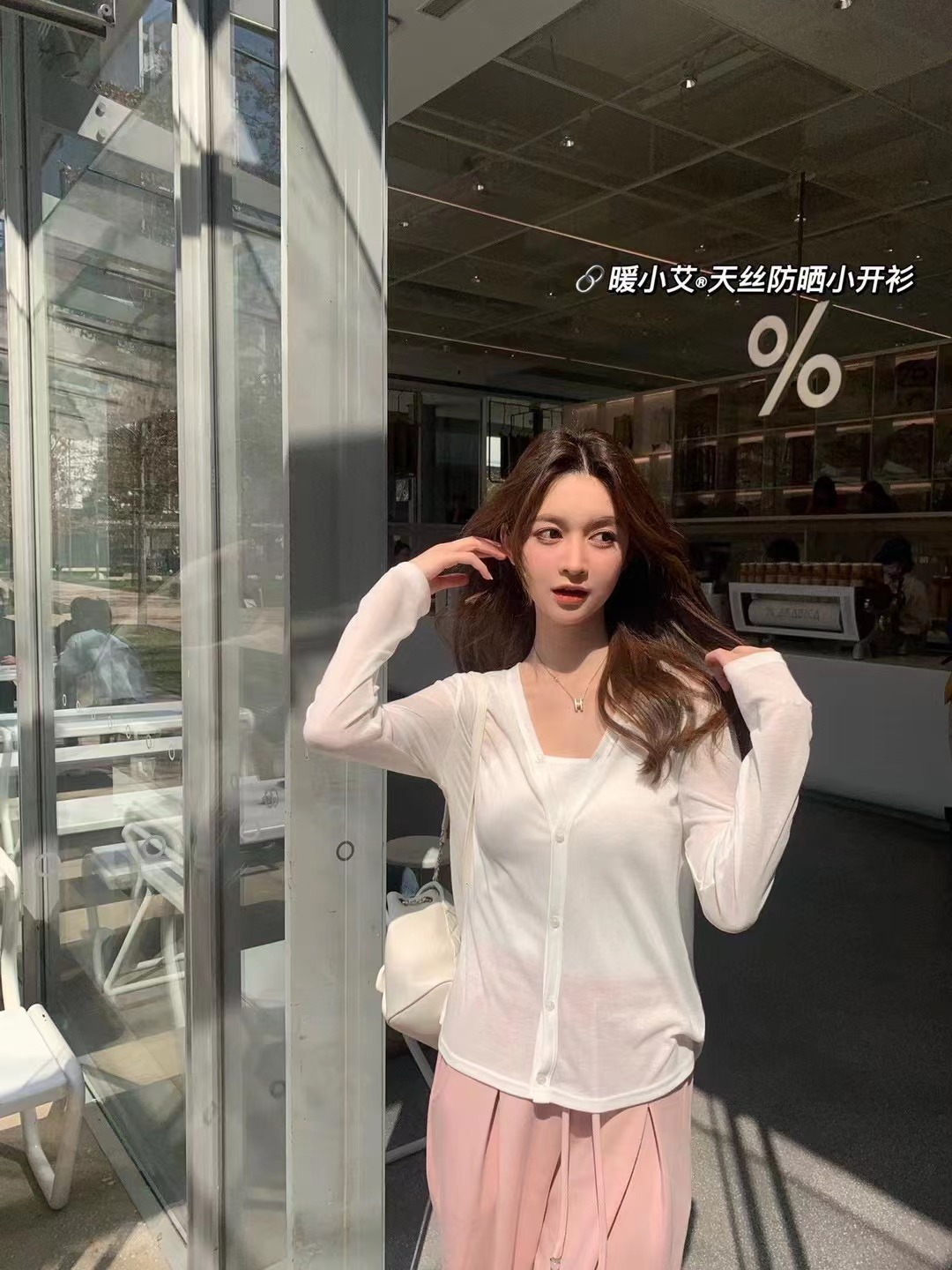 카스티야 ~ 여름 일본 텐셀 카디건 여성용 긴팔 얇은 슬링 아우터 블라우스 V넥 에어컨 셔츠 탑스토어 가기