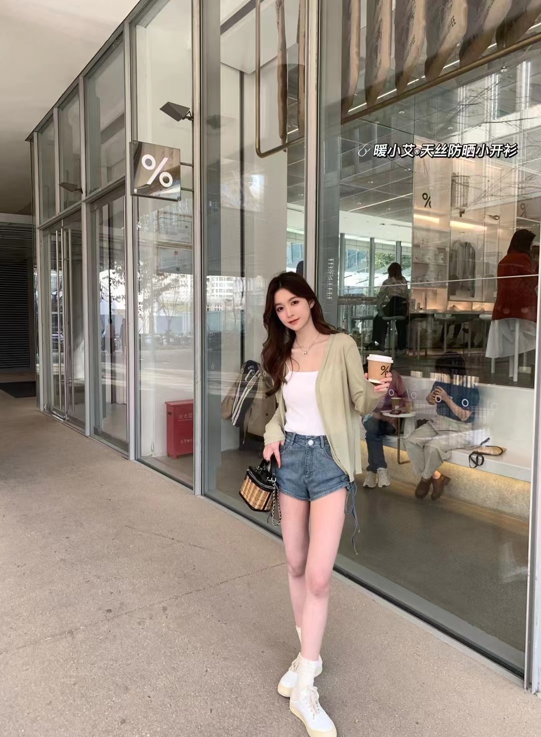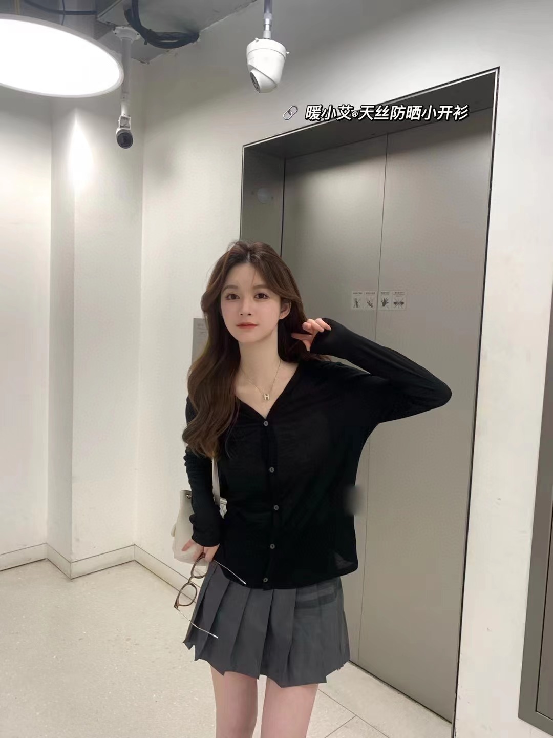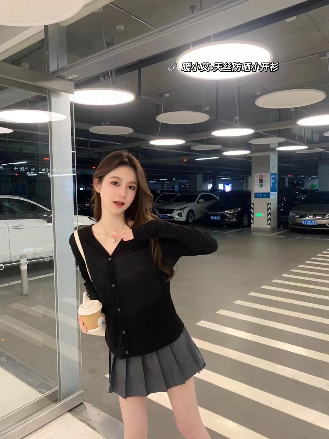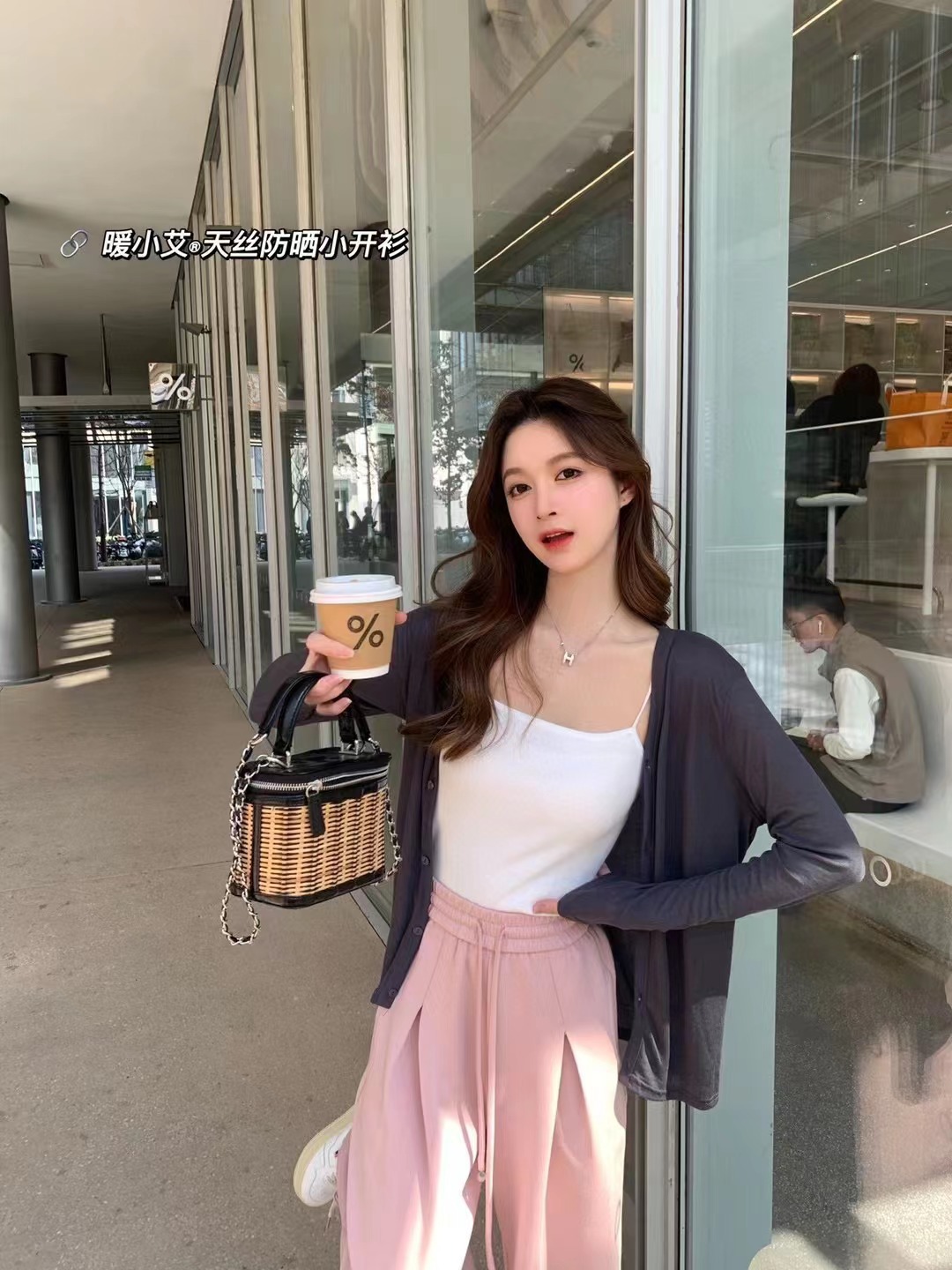 카스티야 ~ 여름 일본 텐셀 카디건 여성용 긴팔 얇은 슬링 아우터 블라우스 V넥 에어컨 셔츠 탑스토어 가기