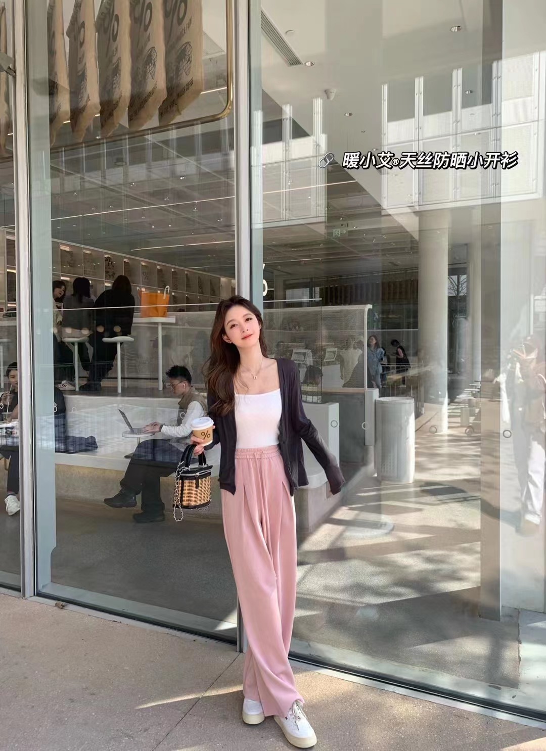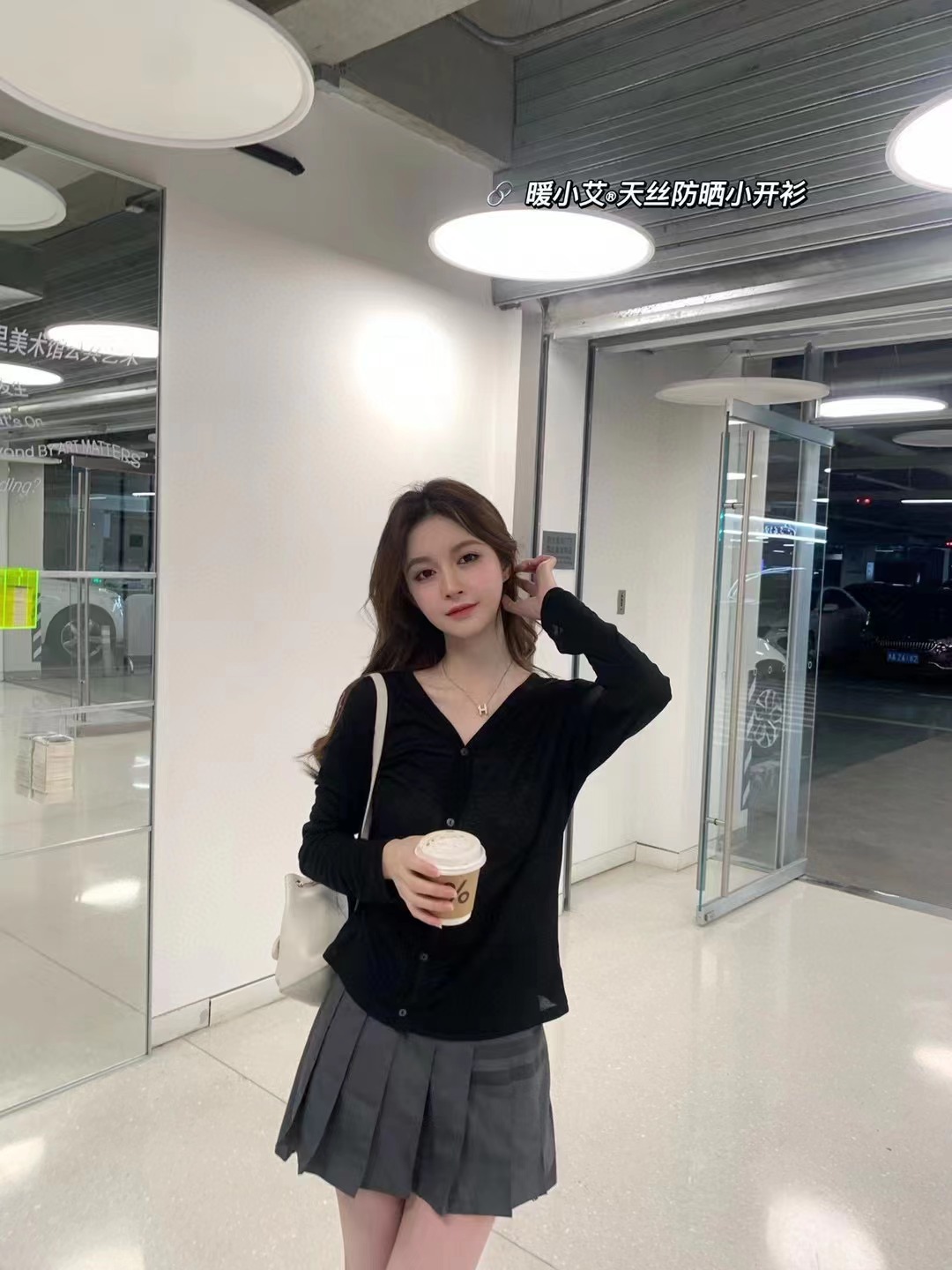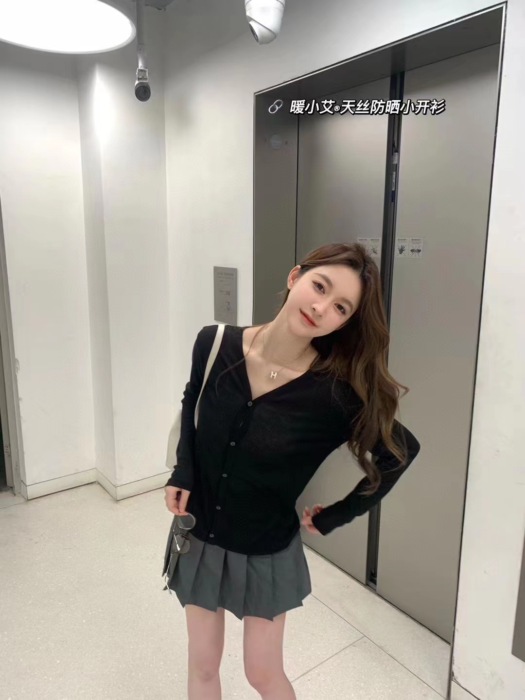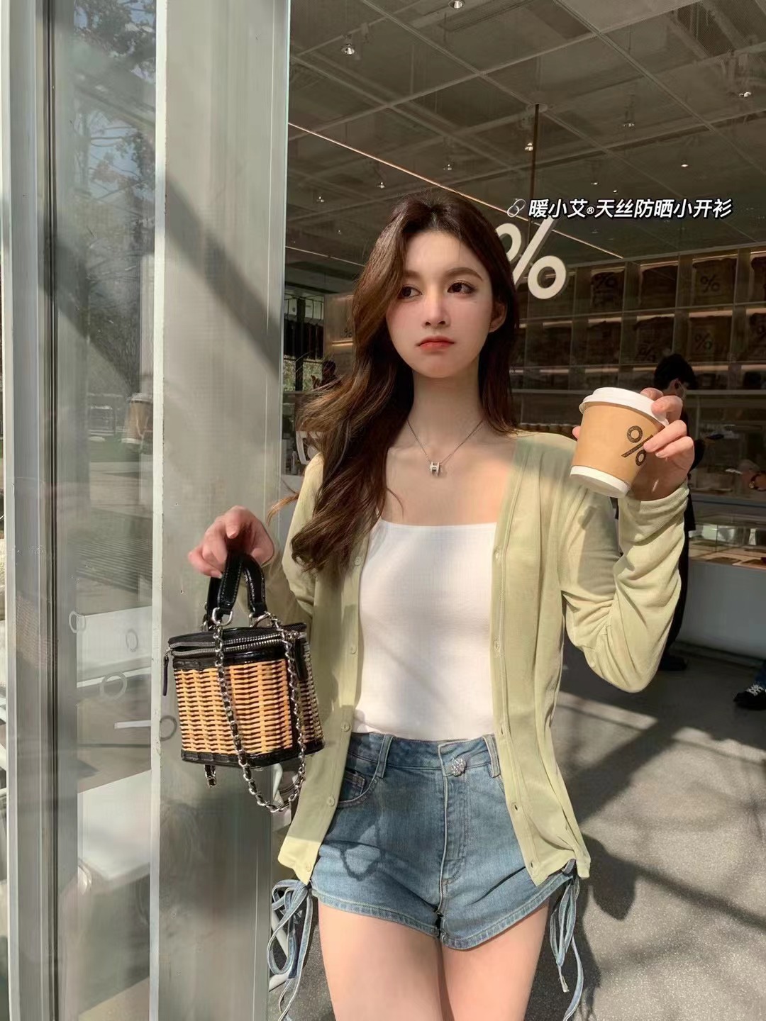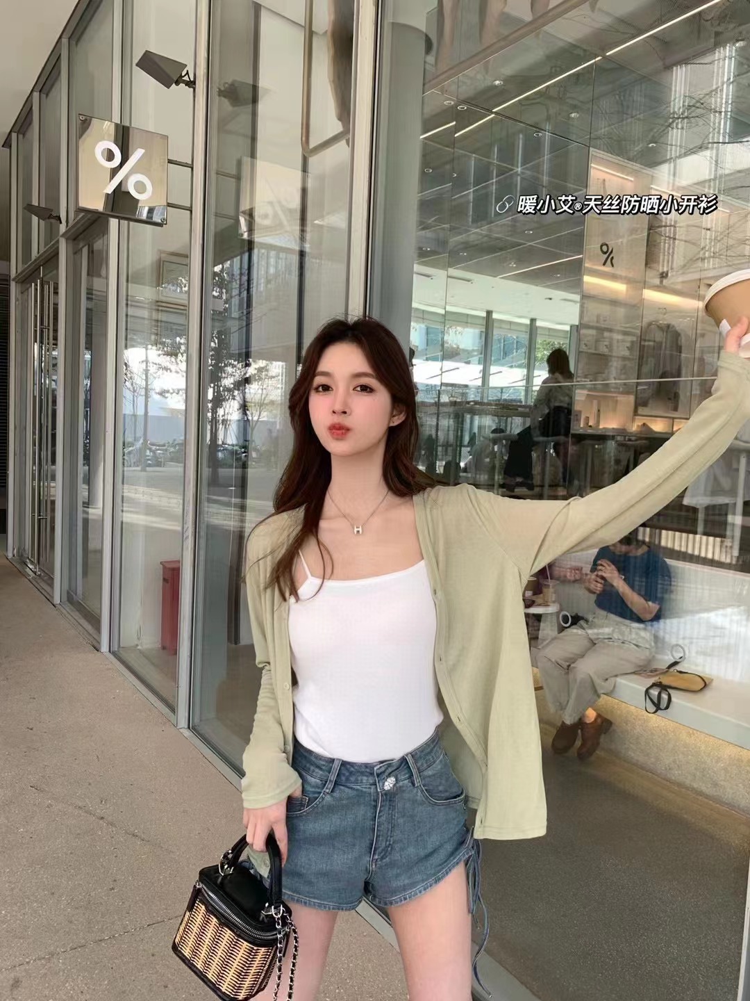 카스티야 ~ 여름 일본 텐셀 카디건 여성용 긴팔 얇은 슬링 아우터 블라우스 V넥 에어컨 셔츠 탑스토어 가기