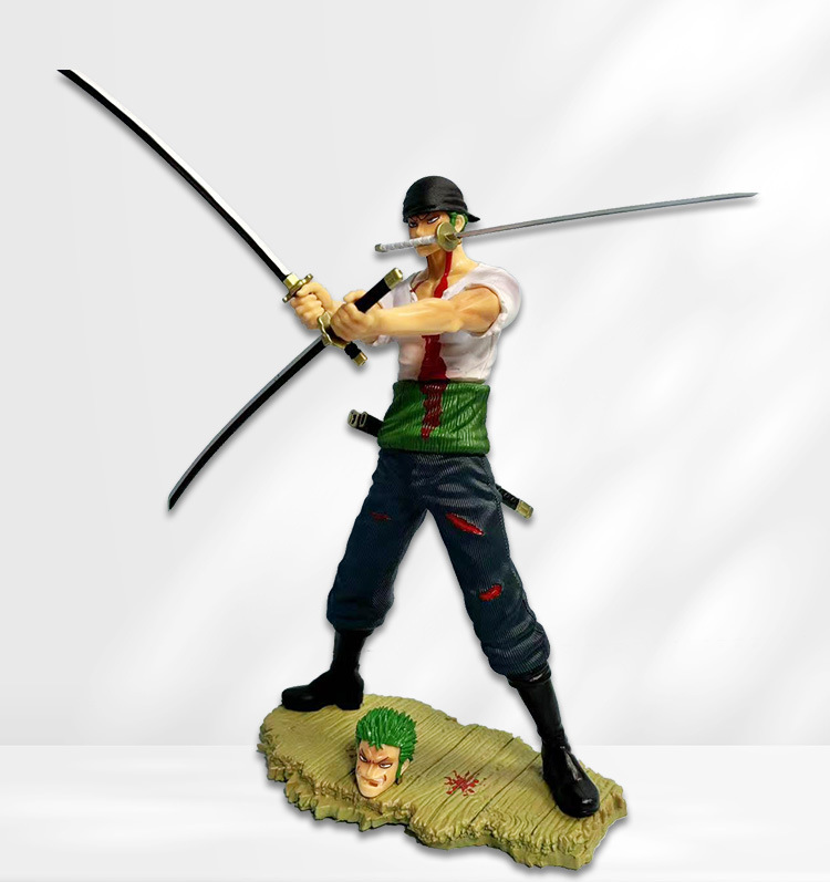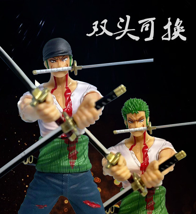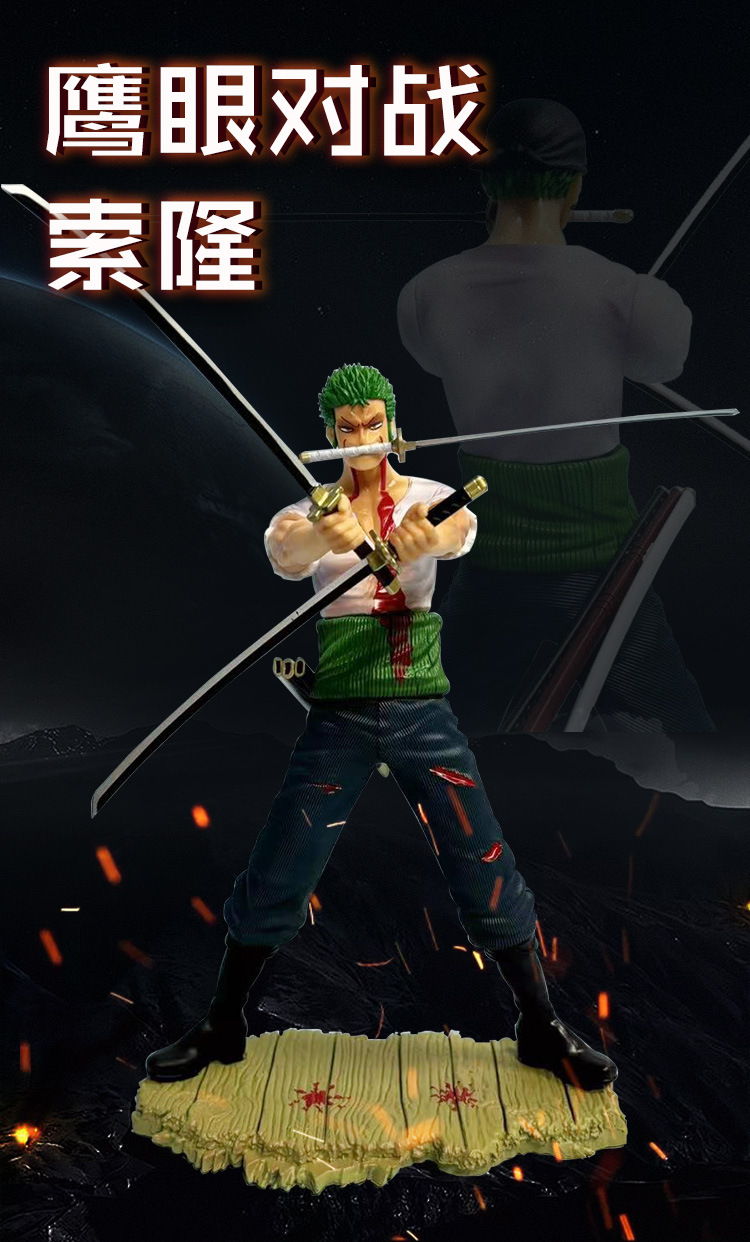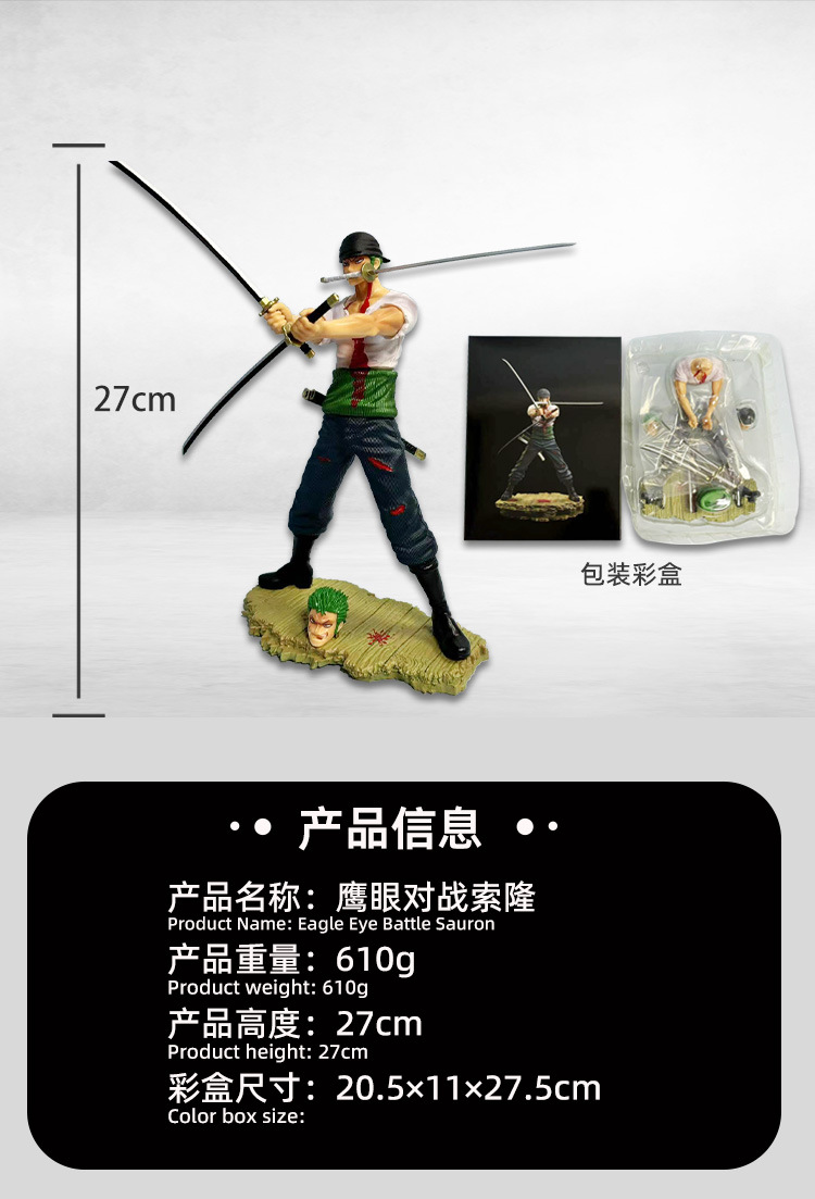원피스 GK 스탠딩 호크 아이 vs. 솔론 더블 헤드 교체 가능한 배틀 장면 박스 동상 모델