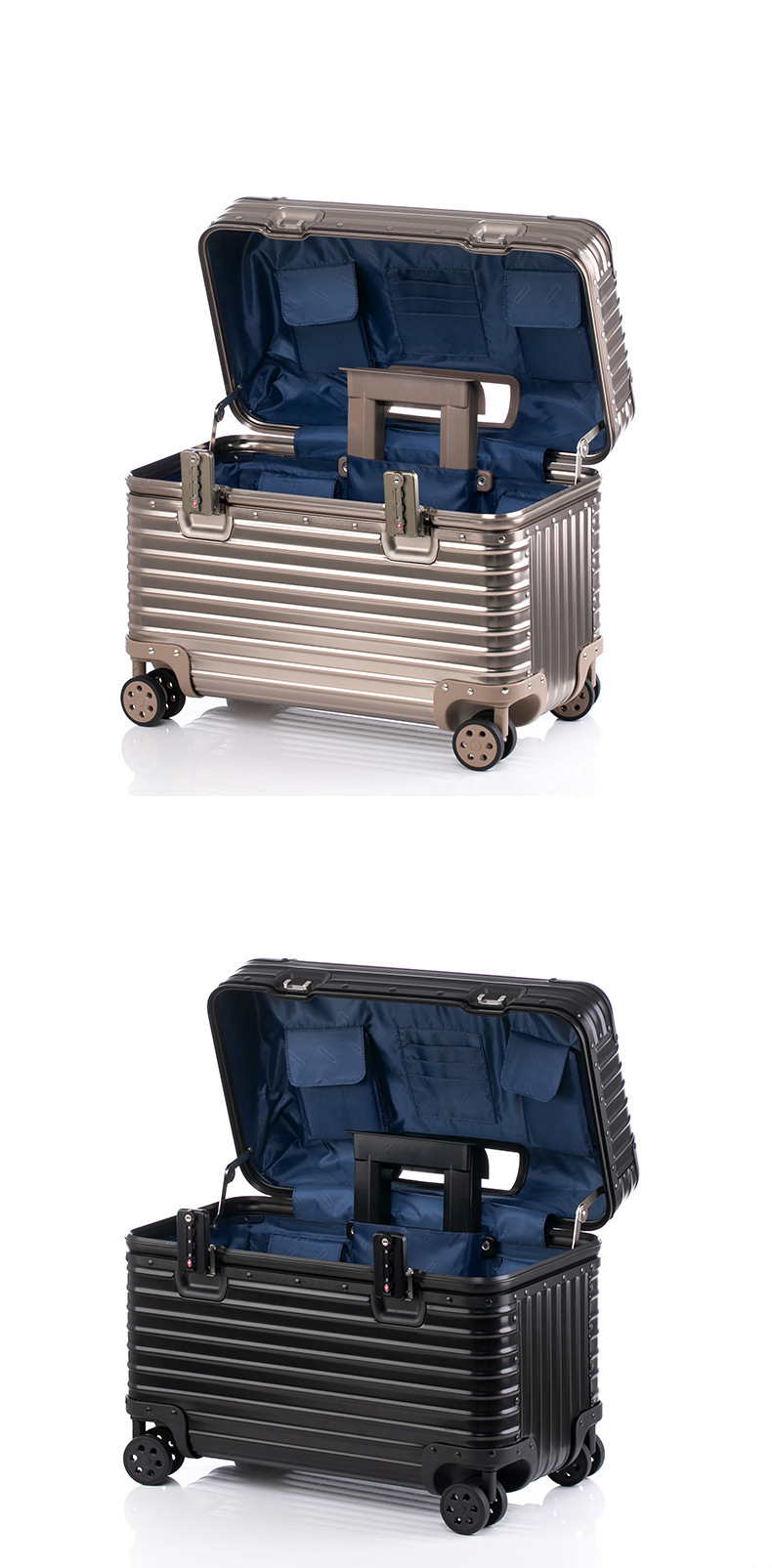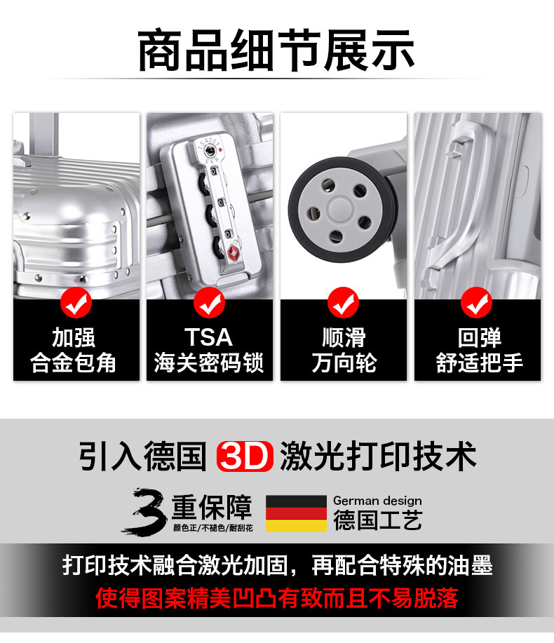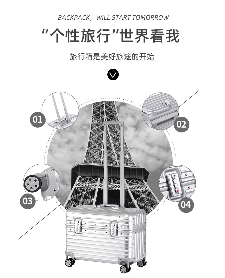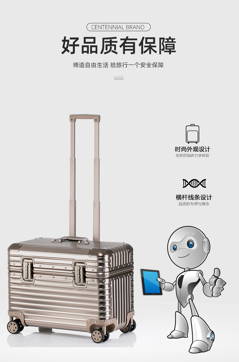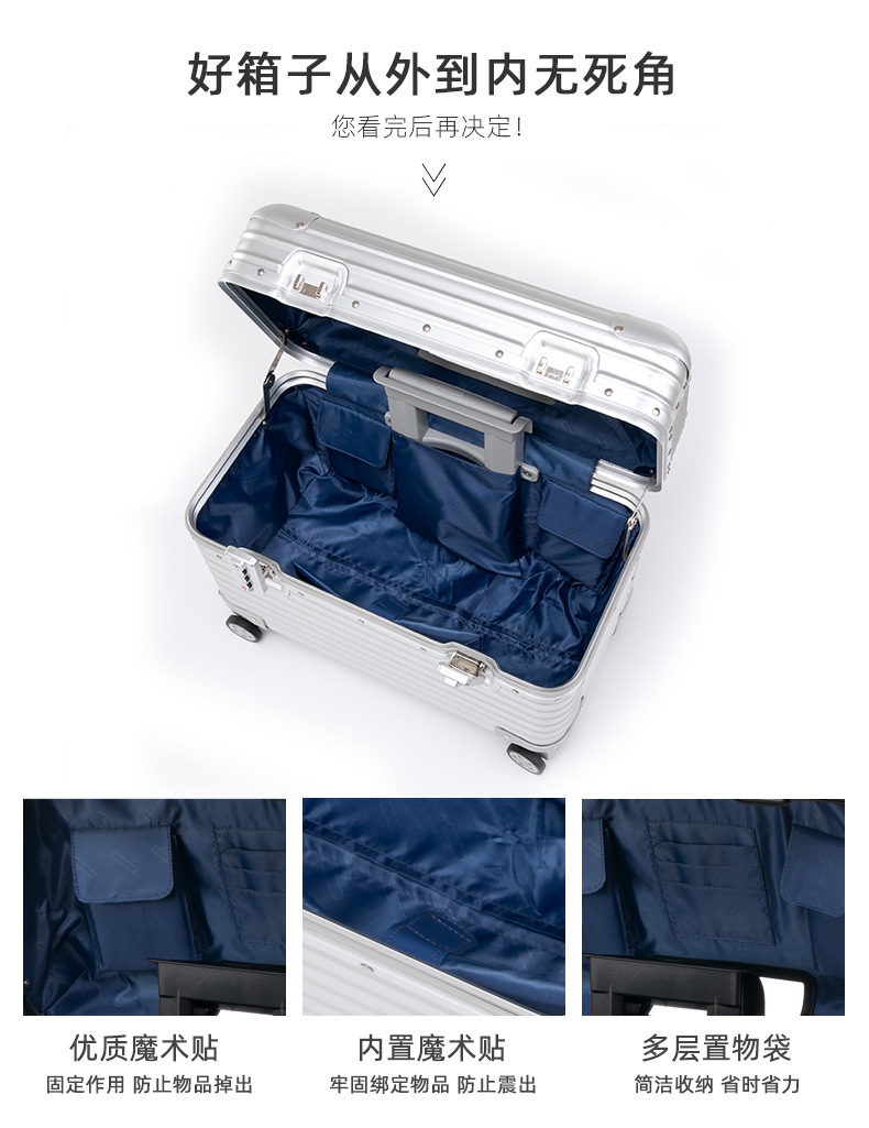 모든 알루미늄 마그네슘 합금 사진 트롤리 케이스 상부 플립 커버 20 인치 카메라 케이스 수평 버전 캡틴 케이스 남성 탑승 수하물