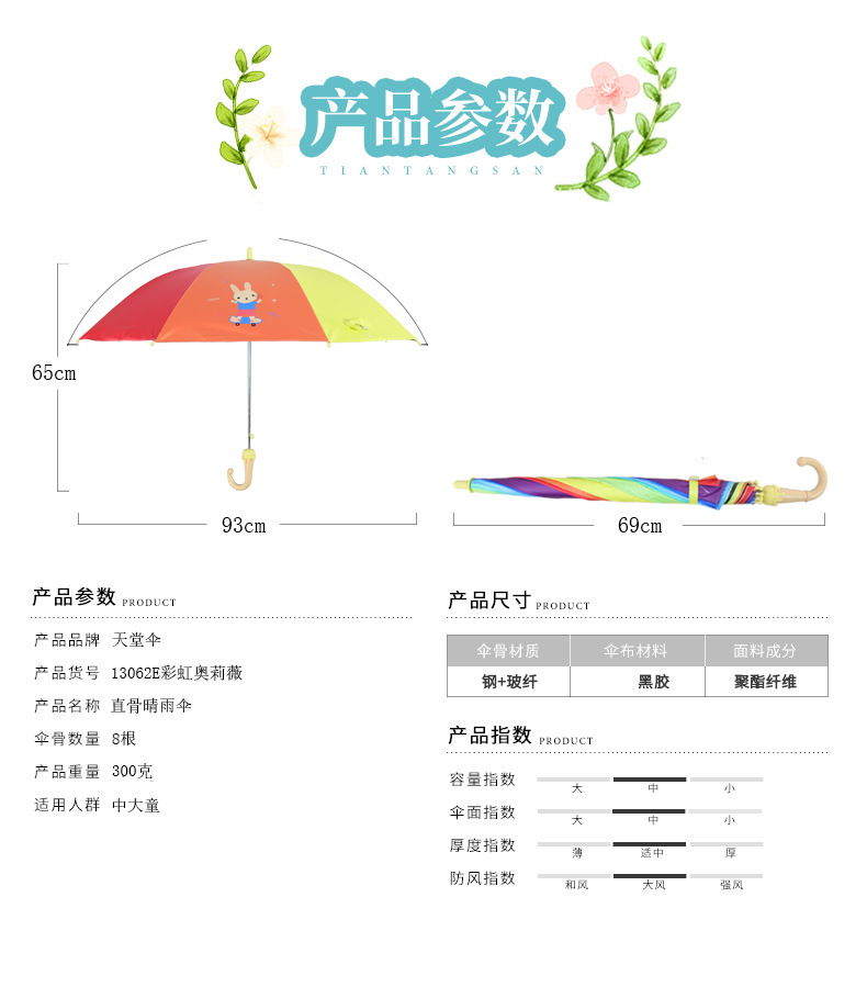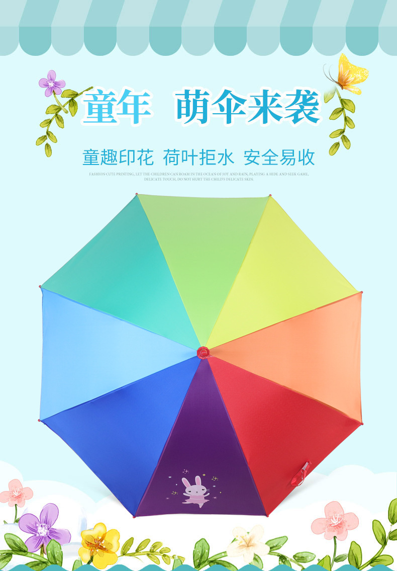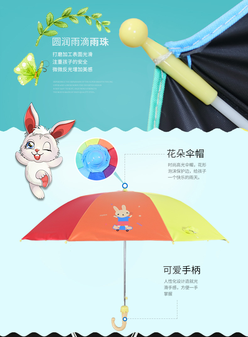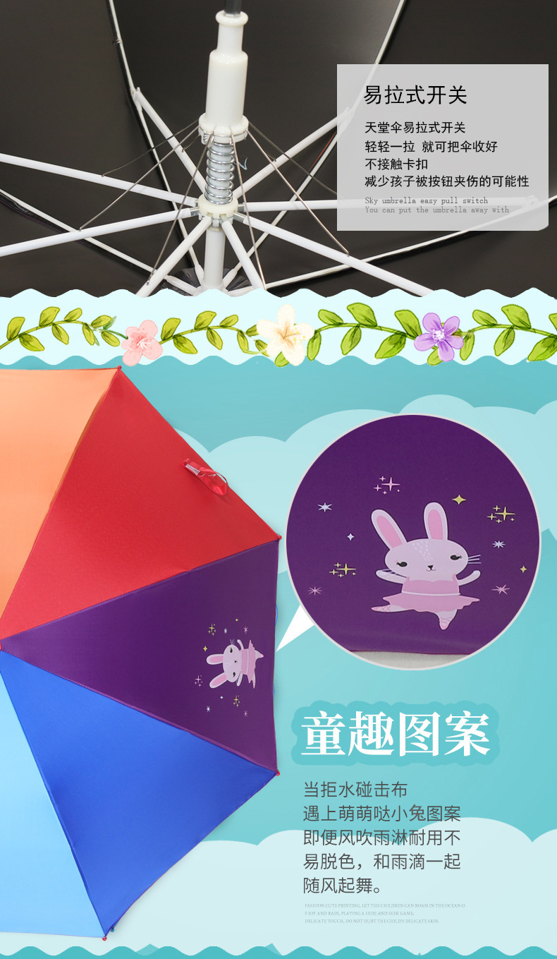 파라다이스 우산 어린이 우산 소년과 소녀 어린이 학생 맑음 우산 아기 긴 손잡이 어린이 우산 검은 접착제 무지개 우산