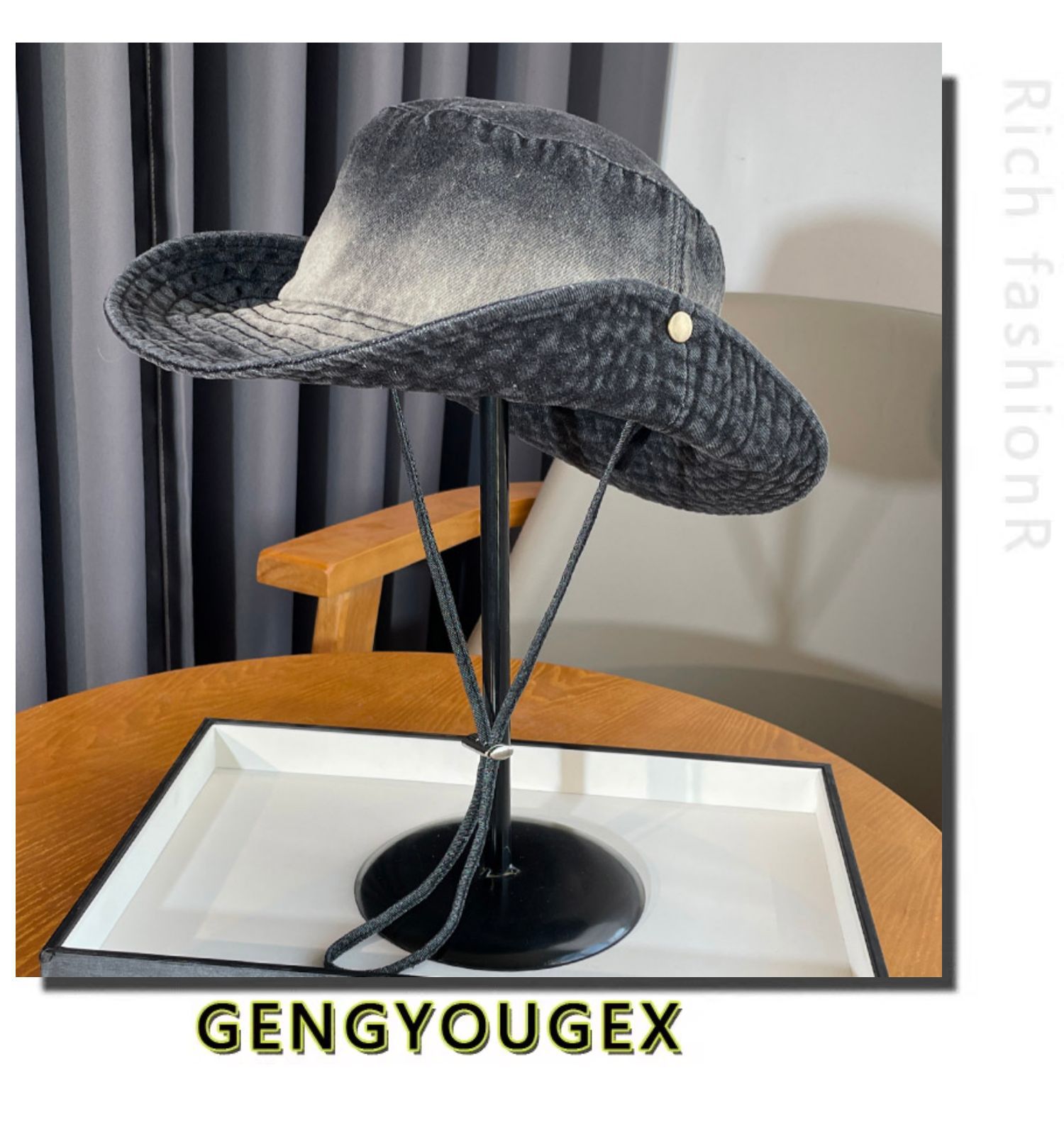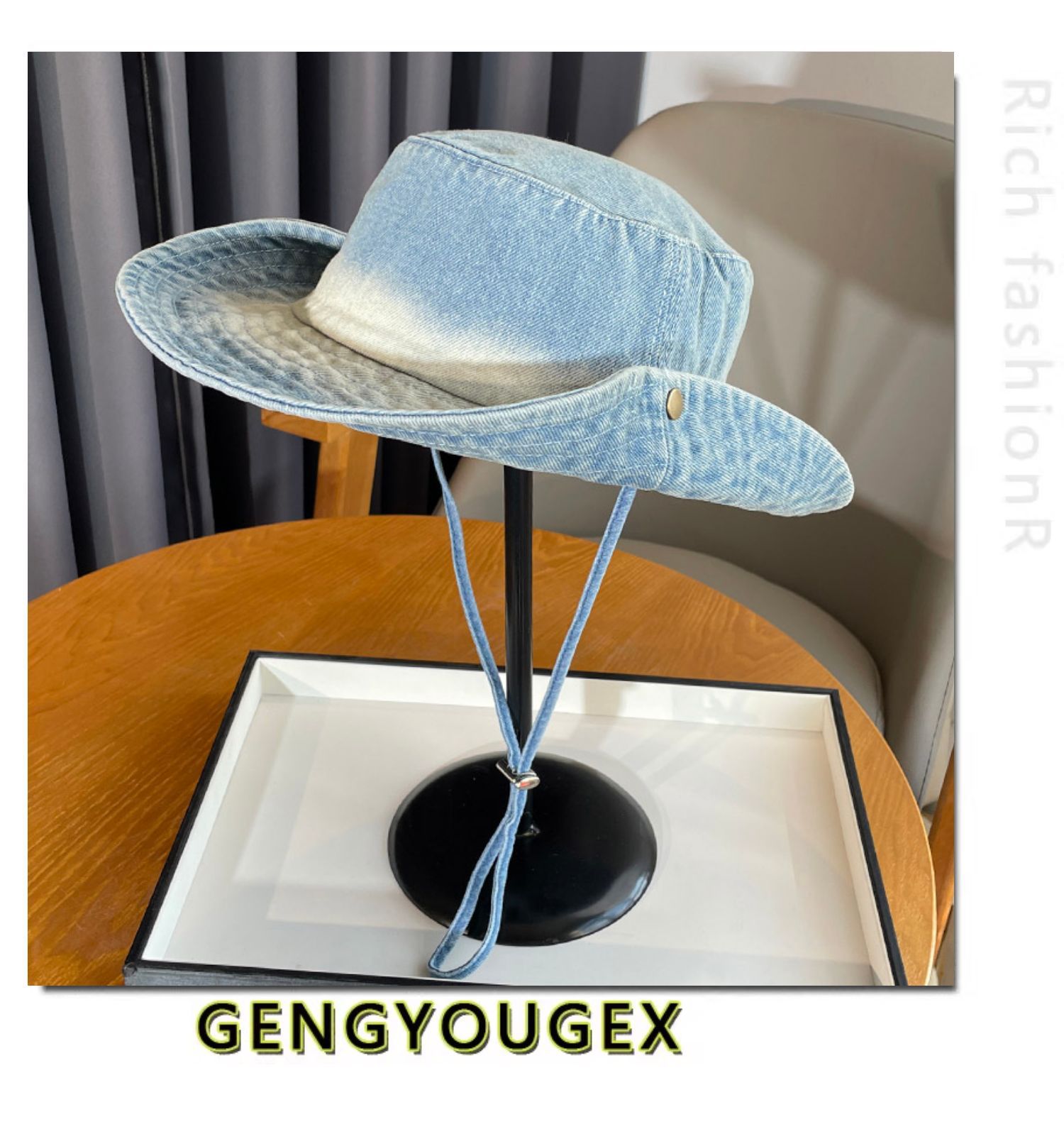 일본식 세탁 카우보이 어부 모자 어린이 봄과 여름 캐주얼 올 매치 분지 모자 일반 얼굴 커버 작은 등산 모자스토어 가기