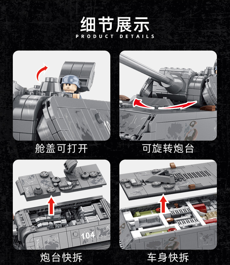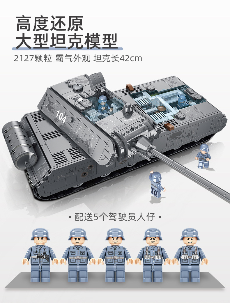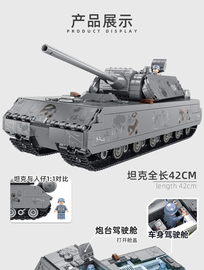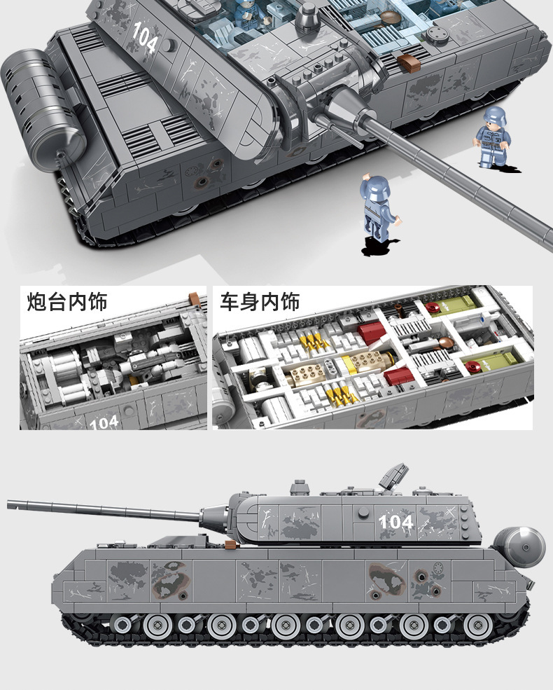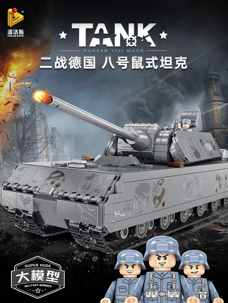 628009 Panlosse 제 2 차 세계 대전 마우스 탱크 군사 소련 SS24 미사일 기차 조립 소년 조립 빌딩 블록스토어 가기