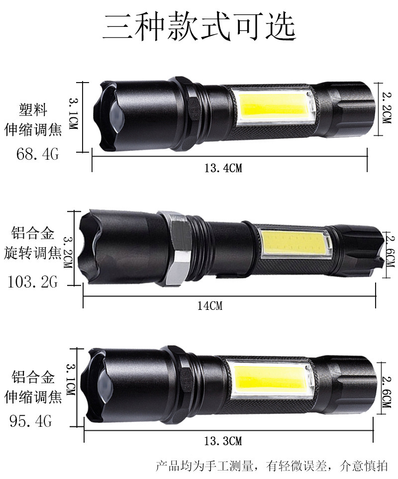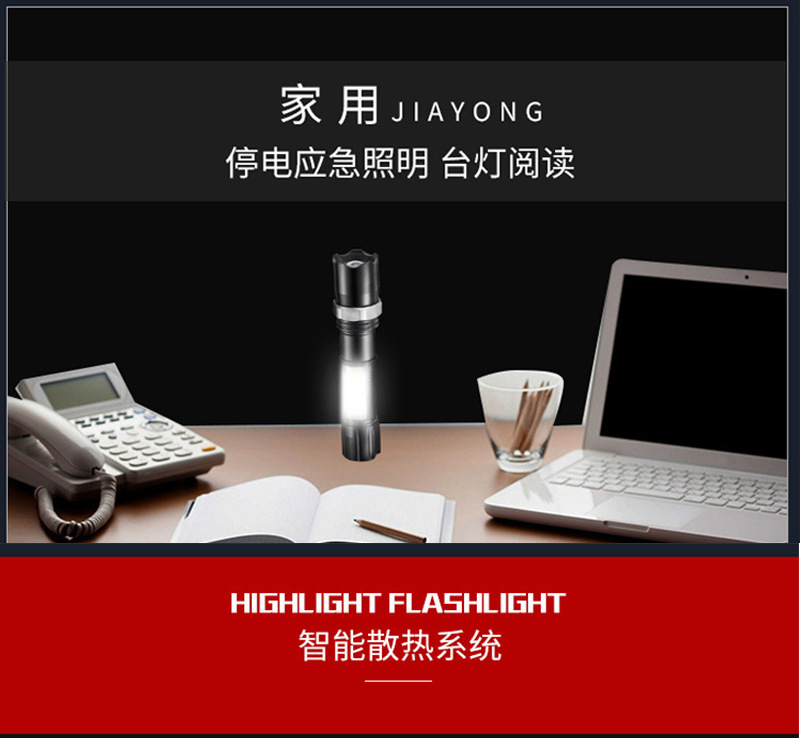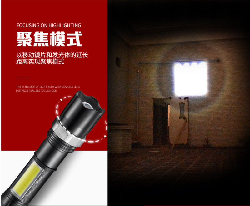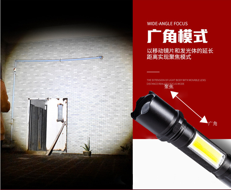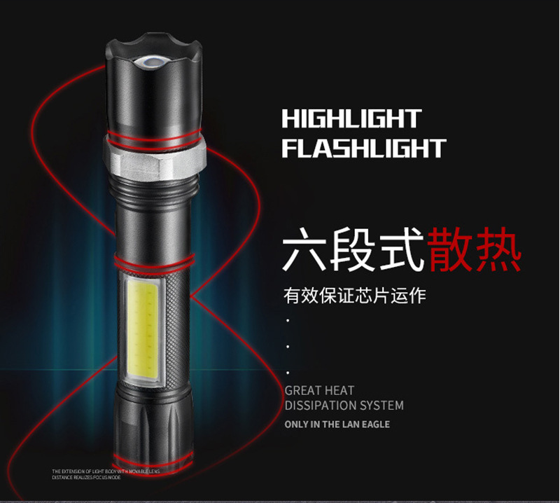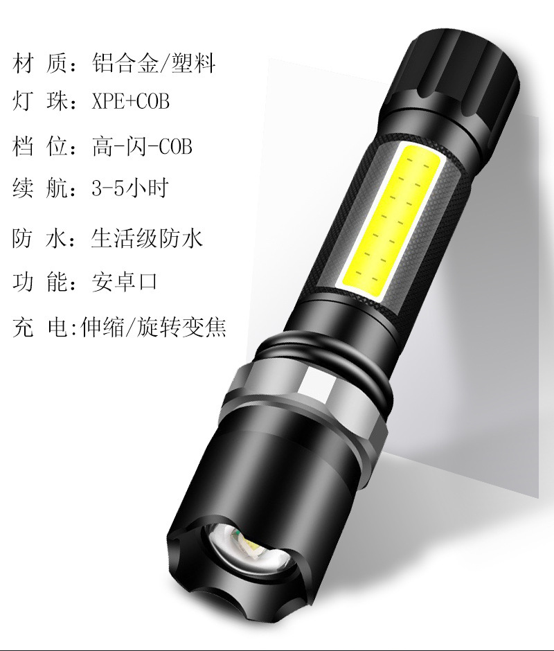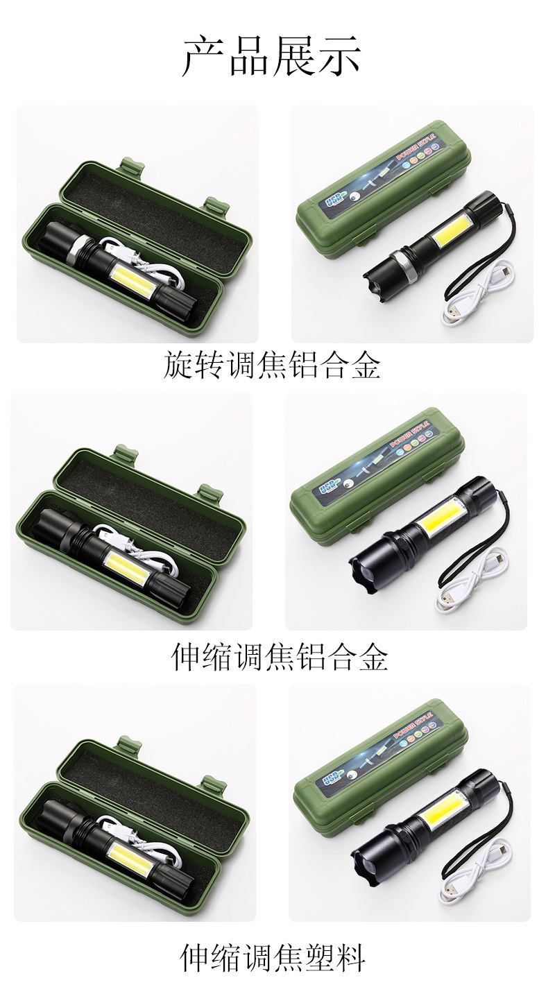 공장 직접 강한 손전등 야외 조명 슈퍼 밝은 COB 측면 조명 비상 휴대용 충전식 손전등스토어 가기