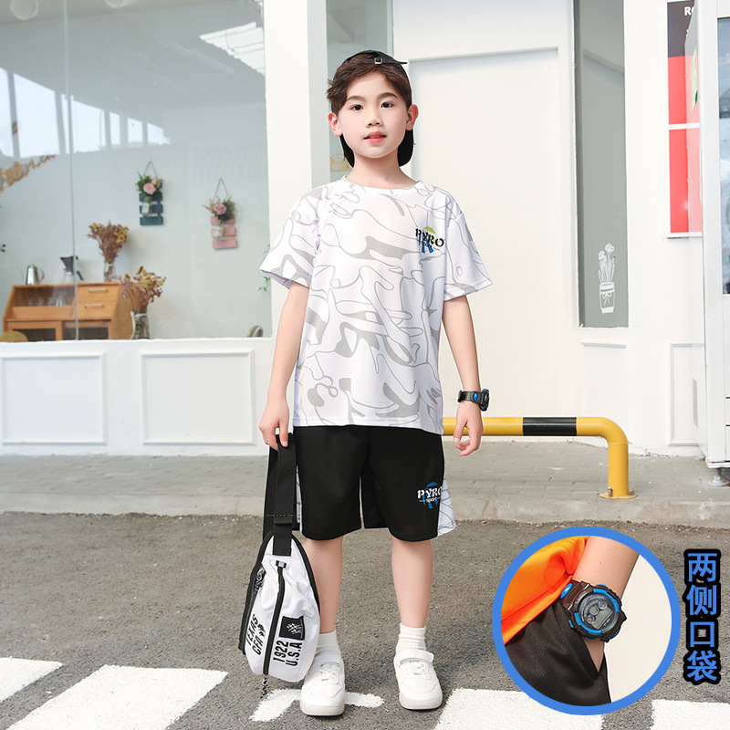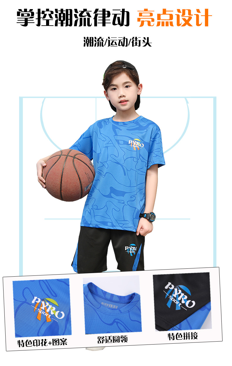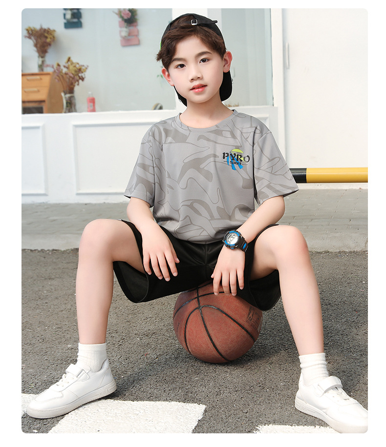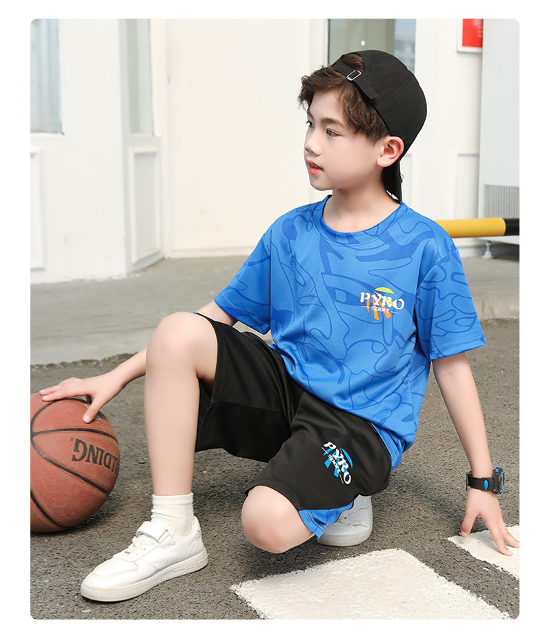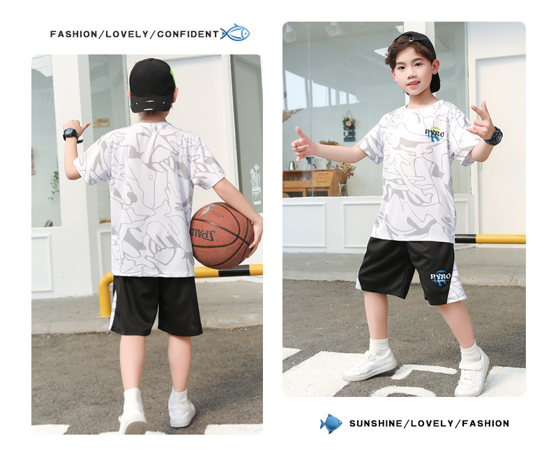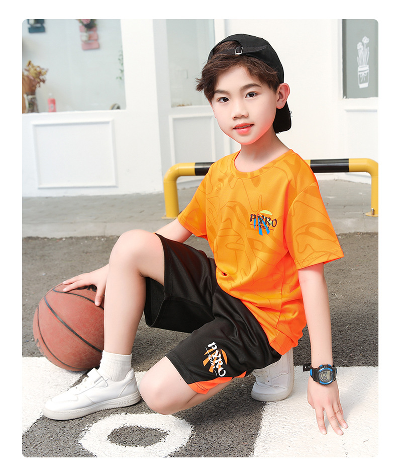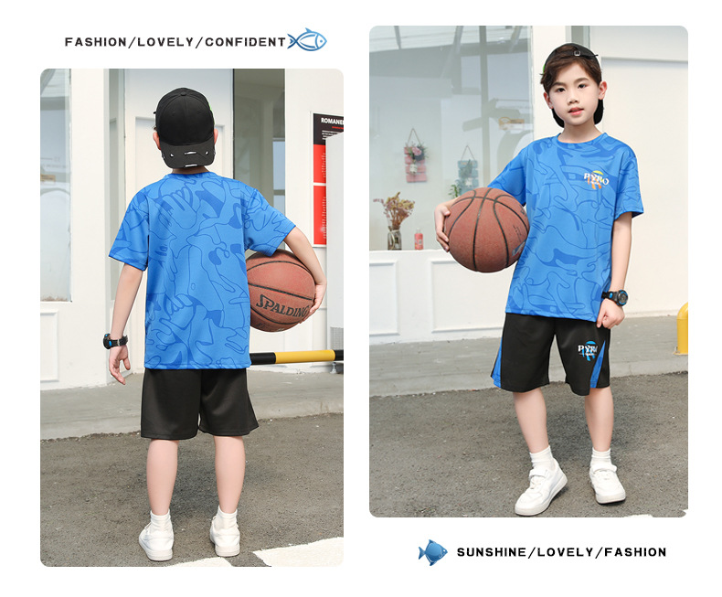 중대형 어린이 여름 통기성 농구복 남녀 어린이 반팔 반바지 스포츠 세트 학교 훈련복