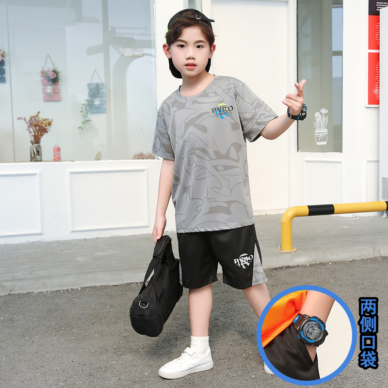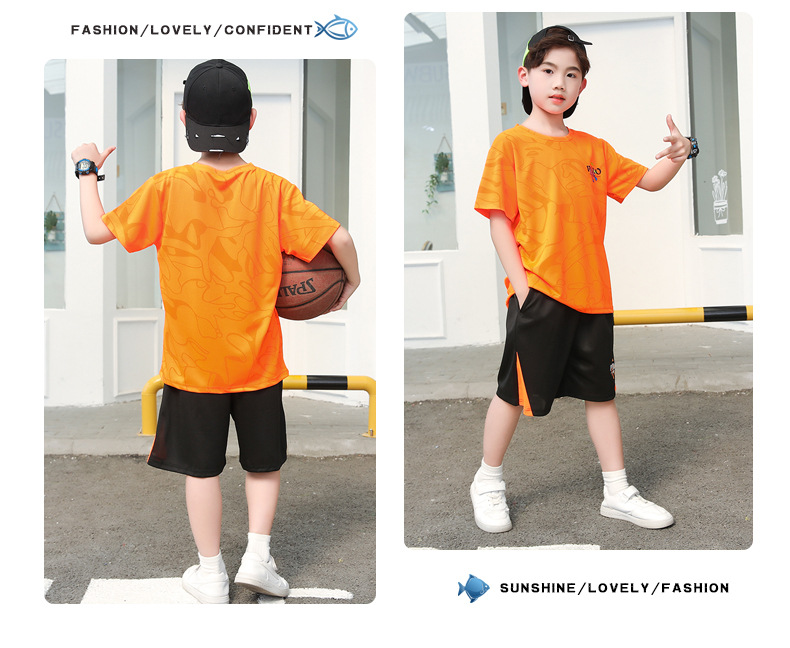 중대형 어린이 여름 통기성 농구복 남녀 어린이 반팔 반바지 스포츠 세트 학교 훈련복스토어 가기