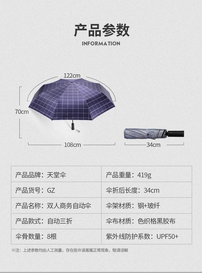 파라다이스 우산 완전 자동 접이식 맑고 비오는 이중 목적 차량 장착 자외선 보호 대형 남성 및 여성 이중 대형 격자스토어 가기