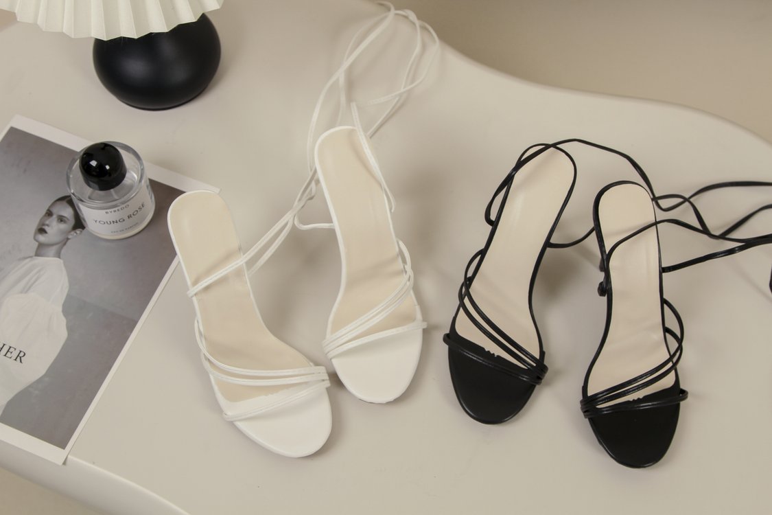 2025 여름 대형 대외 무역 여성 신발 섹시한 라운드 발가락 스트랩 얇은 힐 하이힐 크로스 스트랩 샌들 여성 크로스 보더