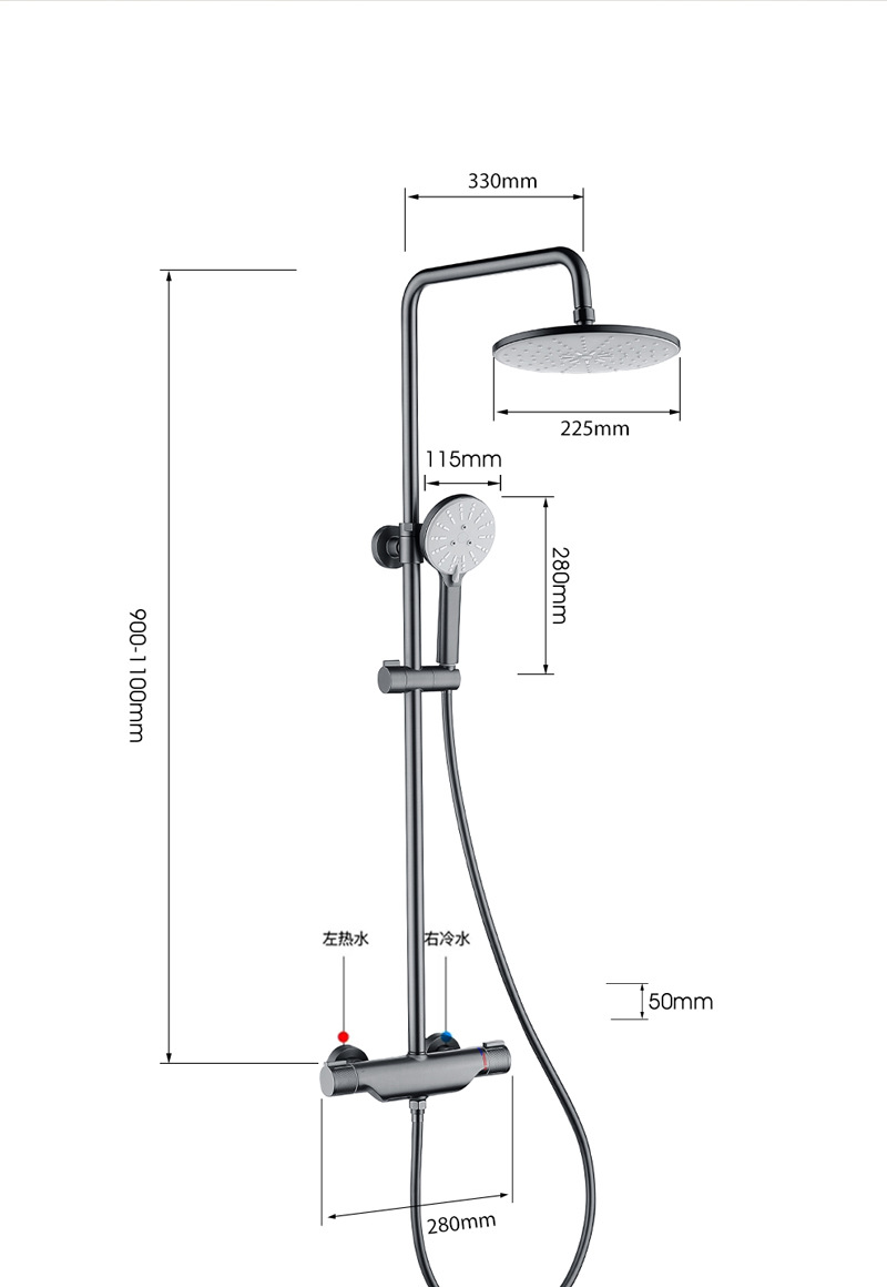 Zhenhao 욕실 간단한 틈새 샤워 샤워 세트 총 회색 샤워 샤워 세트 가정용 온수 및 콜드 샤워 세트