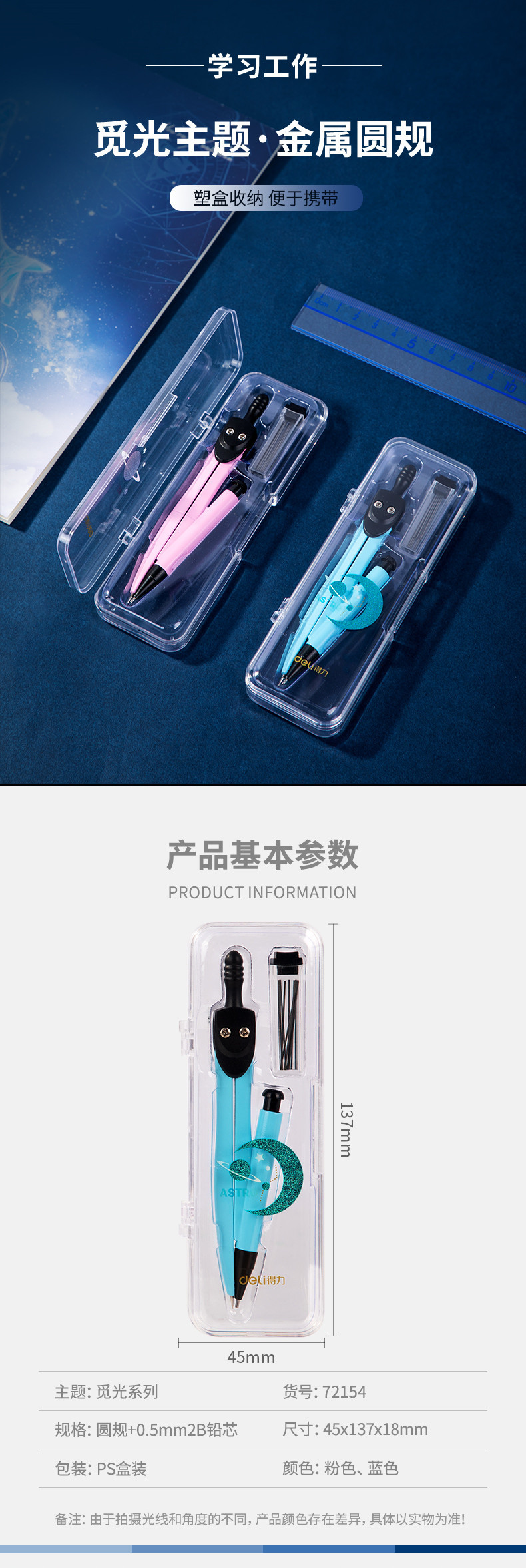 Deli 72154, 금속 나침반 초등 및 중등 학교 학생 시험 학습 수학 기하학 원 그리기 나침반