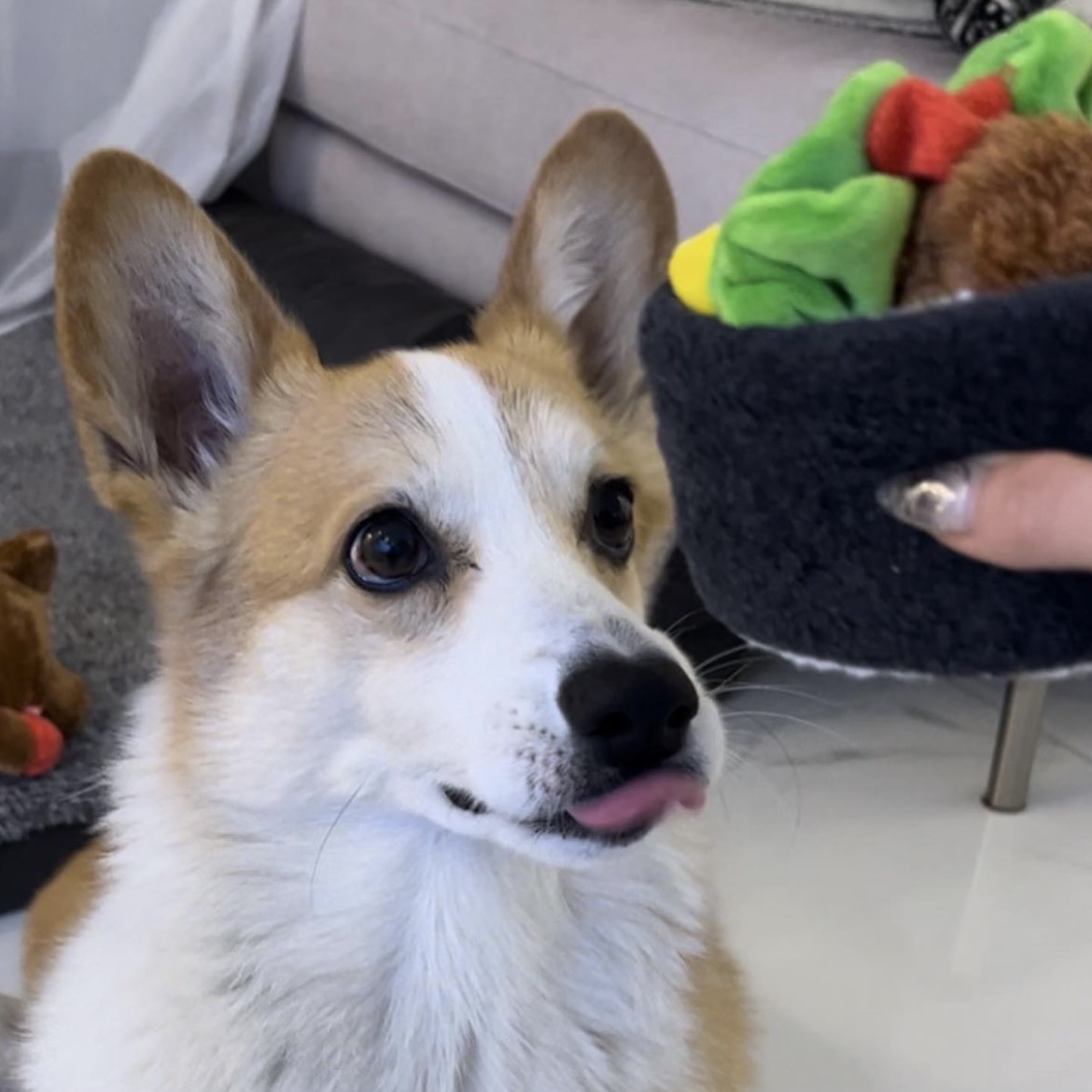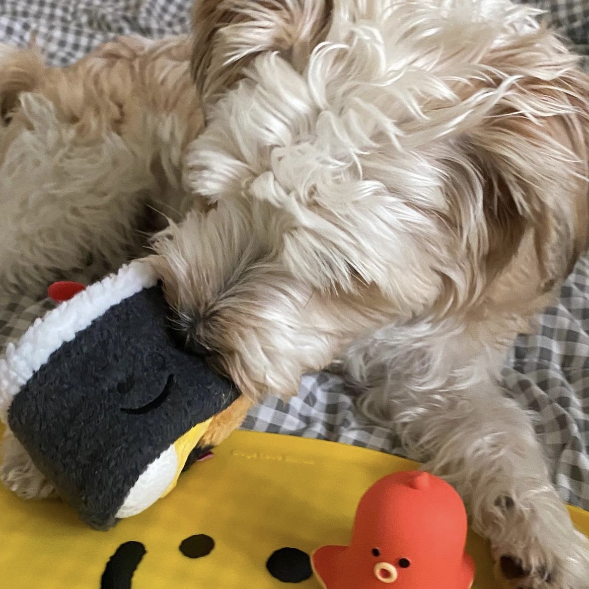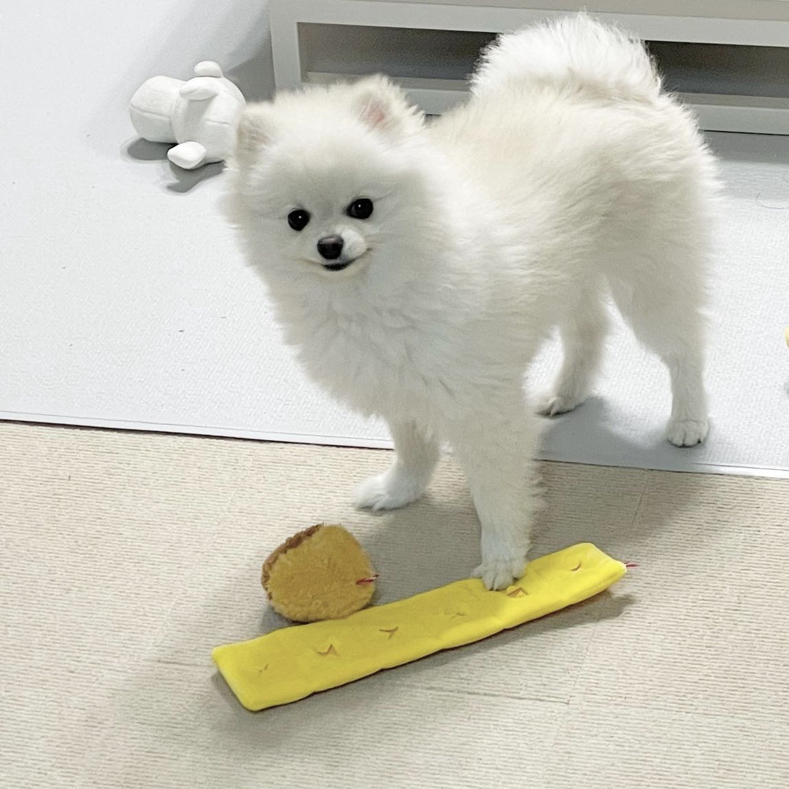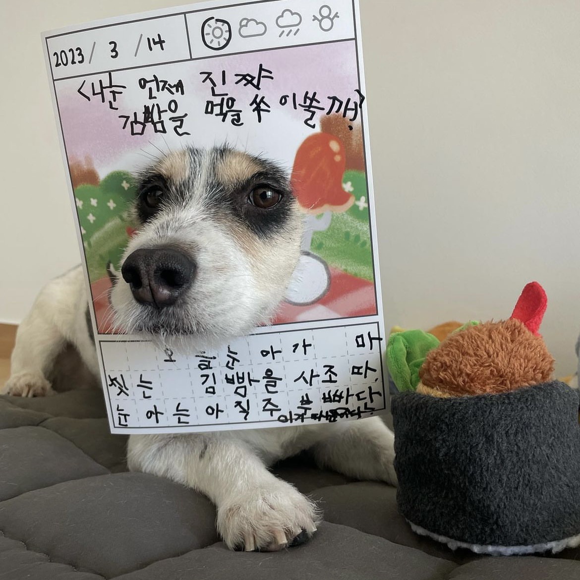 한국, 새로운 애완견 물린 숨겨진 해초 주먹밥 냄새 소리 느린 음식 bb 전화 장난감 도매스토어 가기