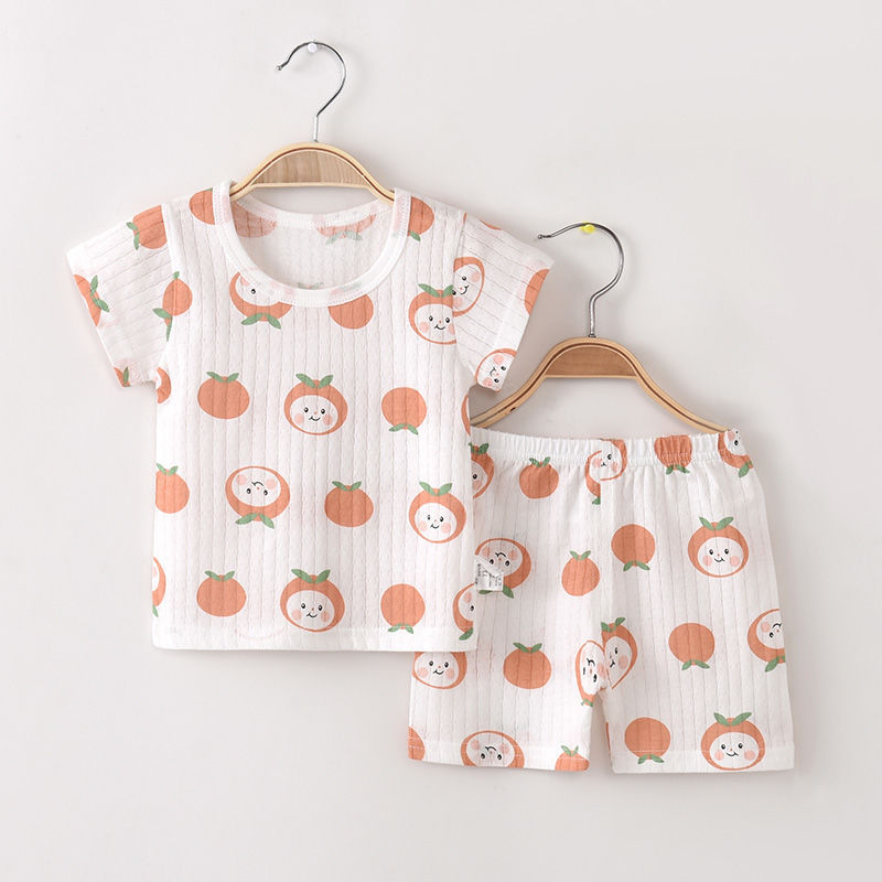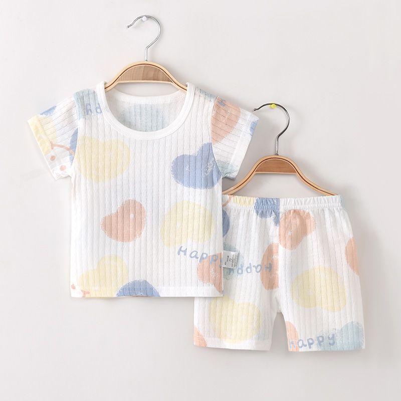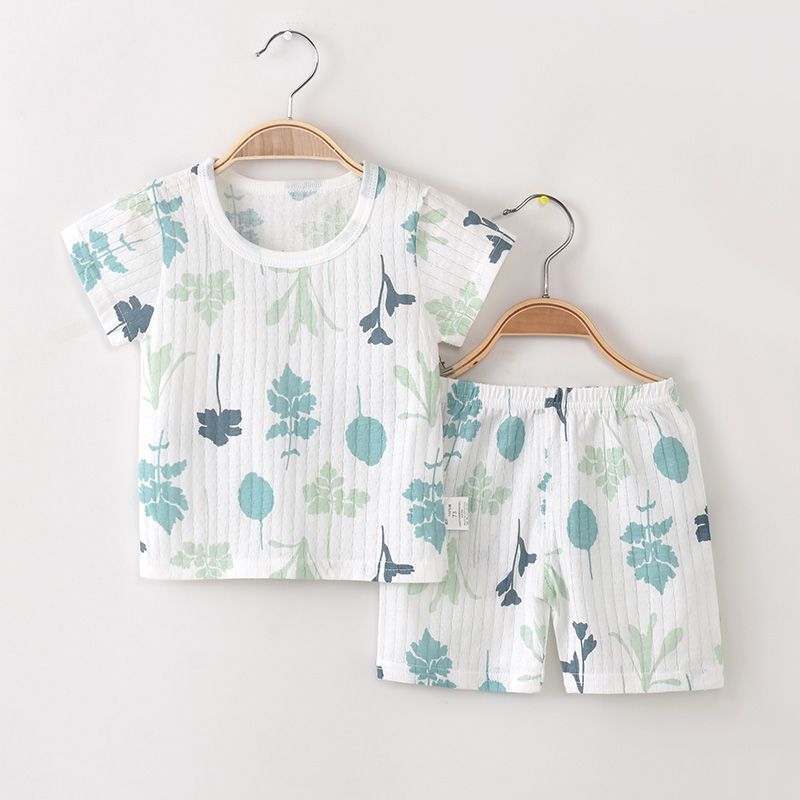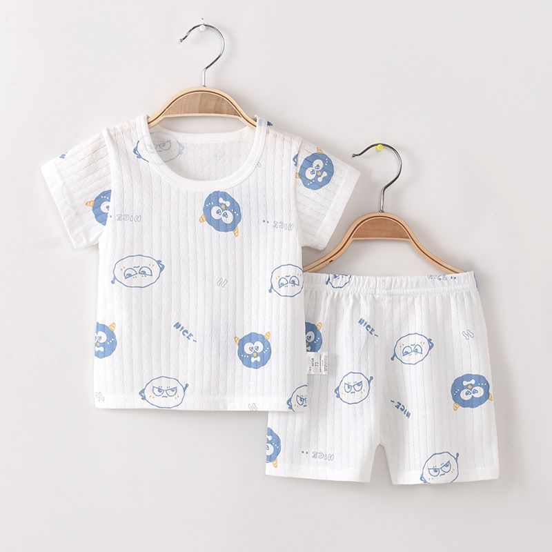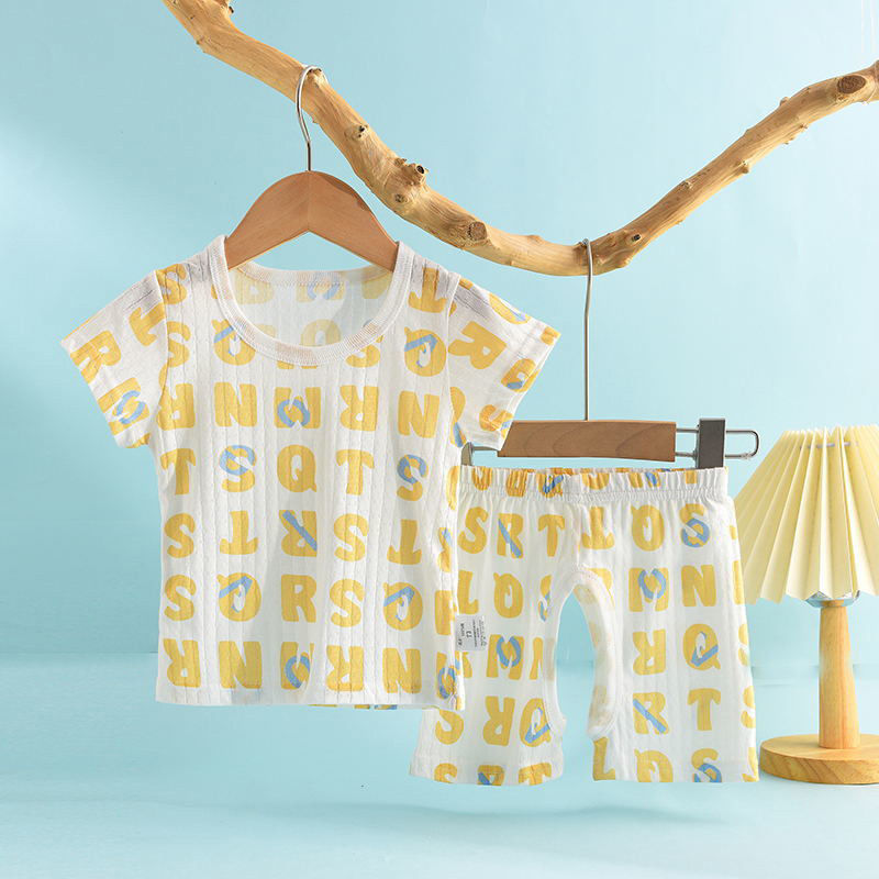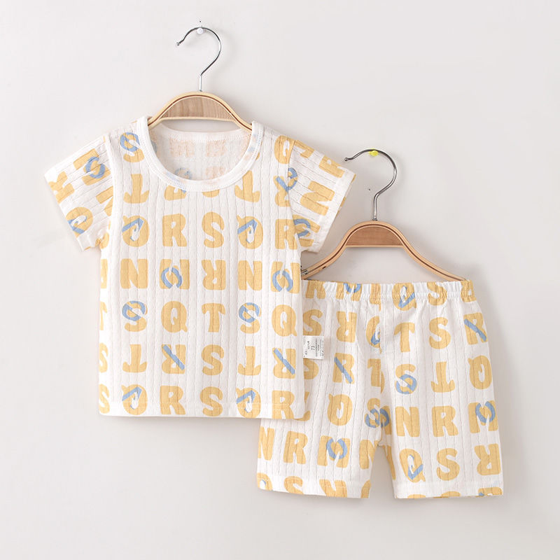 어린이 면화 반팔 세트 여름 경량 아기 홈 의류 남녀 통기성 부드러운 반팔 반바지 세트