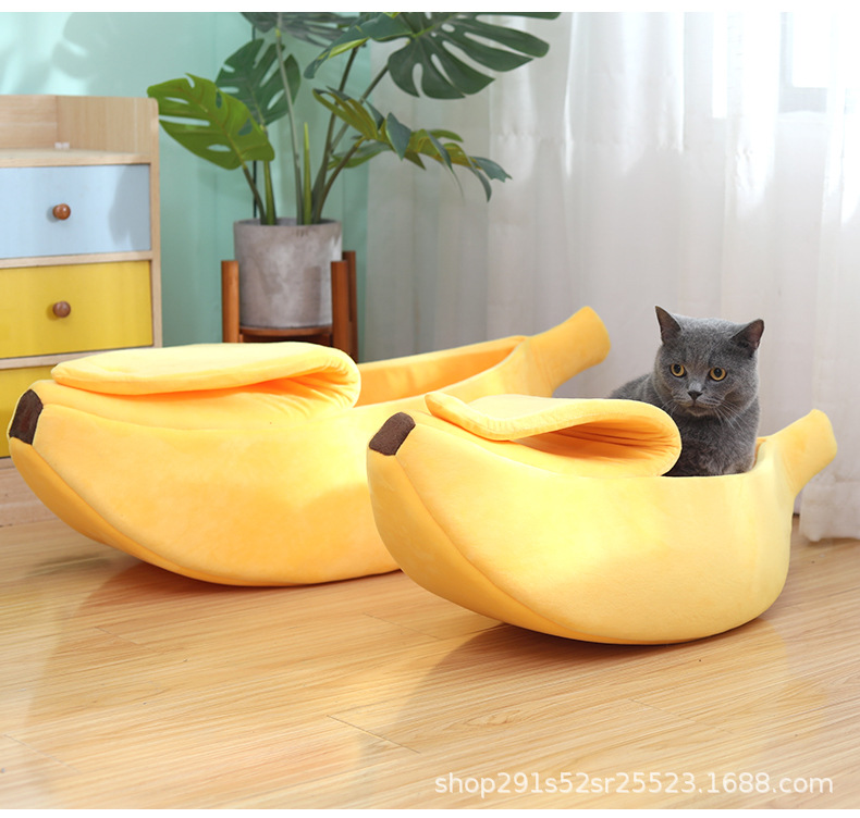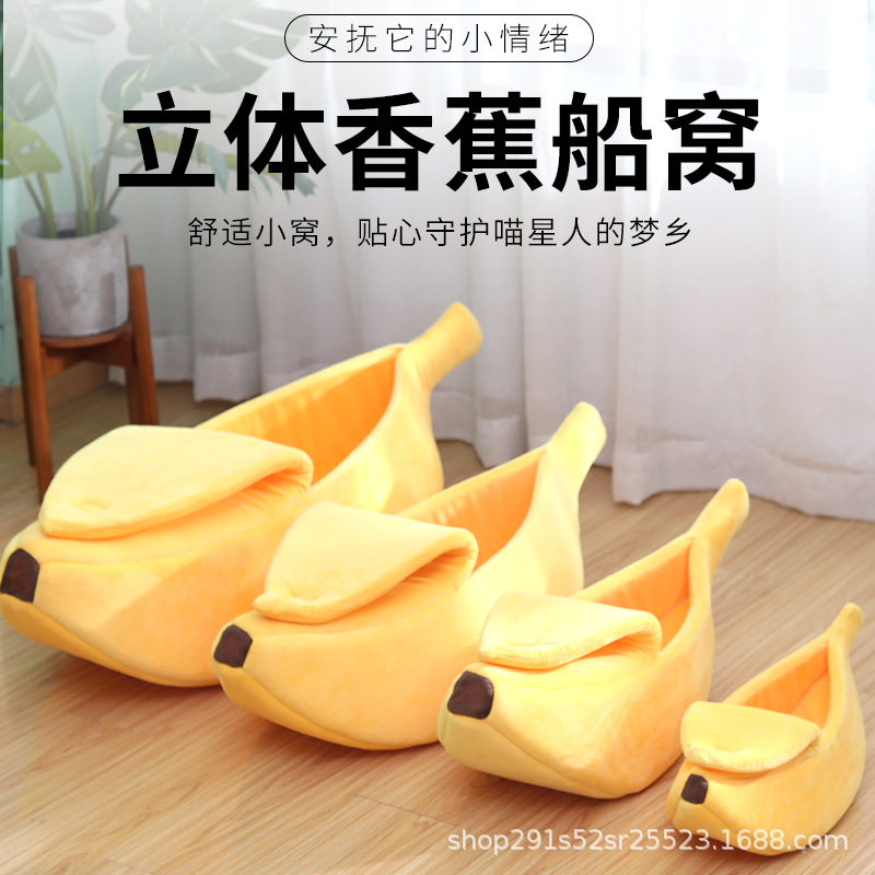 무료 배송 바나나 둥지 뚜껑 반 폐쇄 사계절 애완 동물 둥지 따뜻한 고양이 둥지 작은 개 사육장 햄스터 둥지 애완 동물 침대스토어 가기