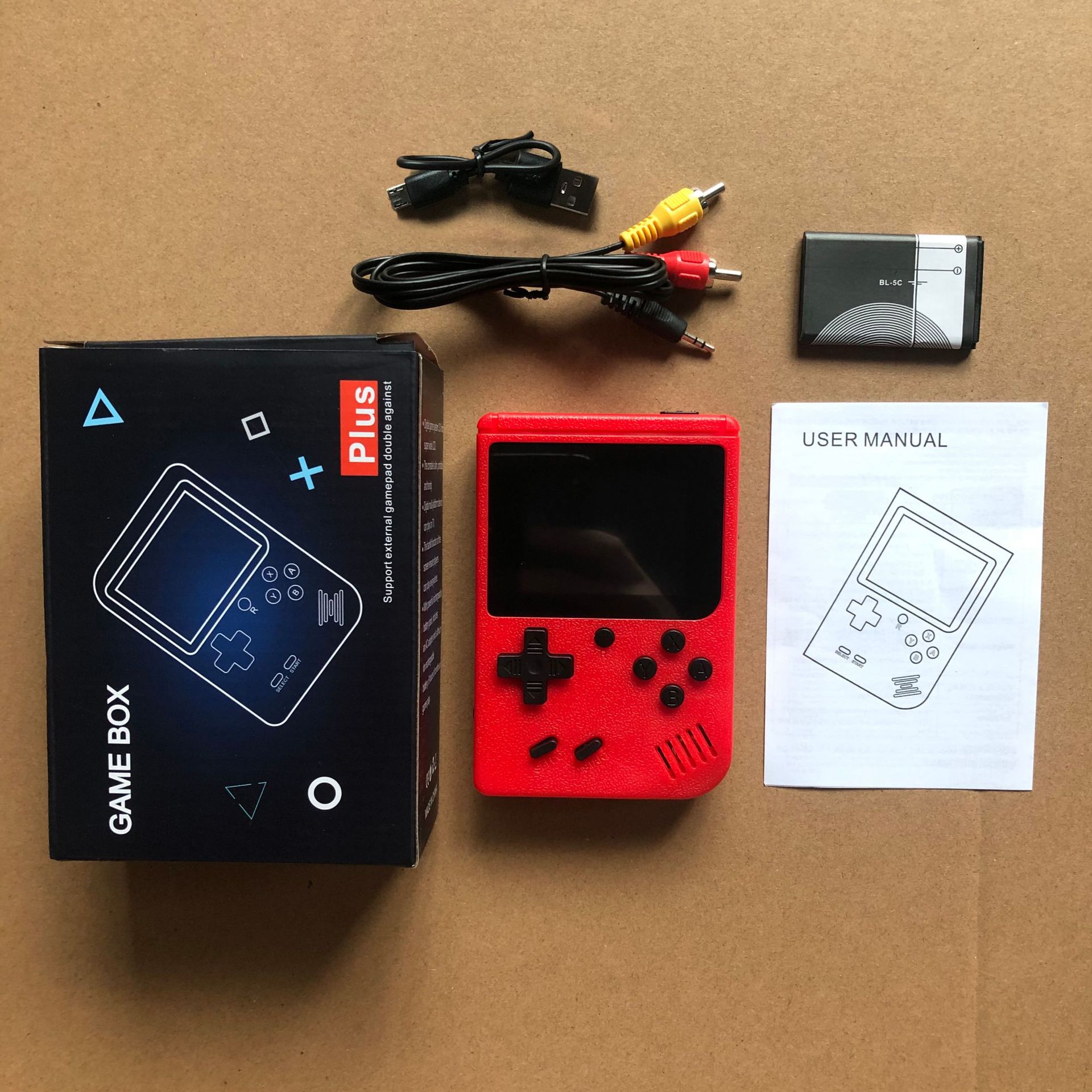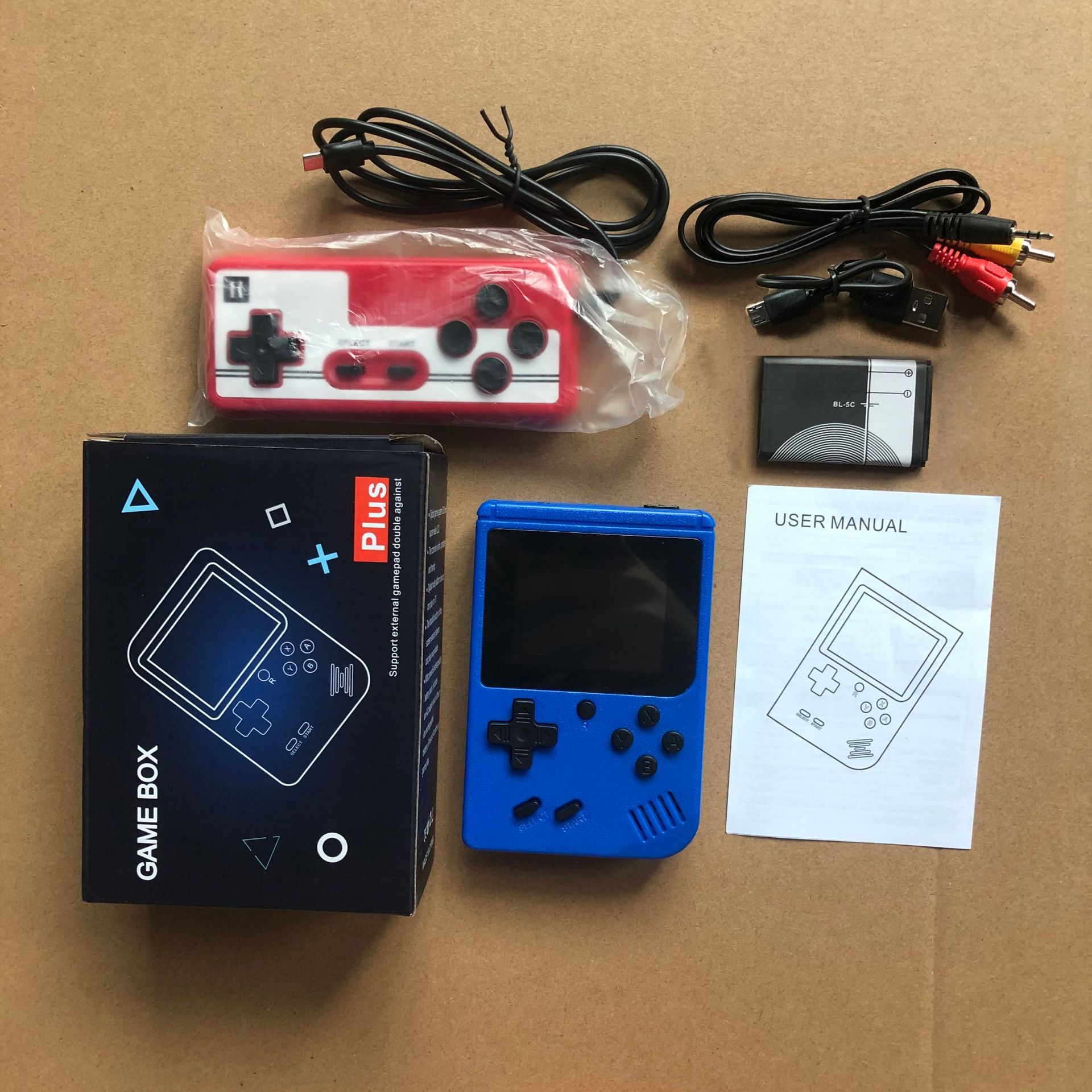 Product configuration: Package + manual + host + battery + charging cable +AV cable (double with one handle)