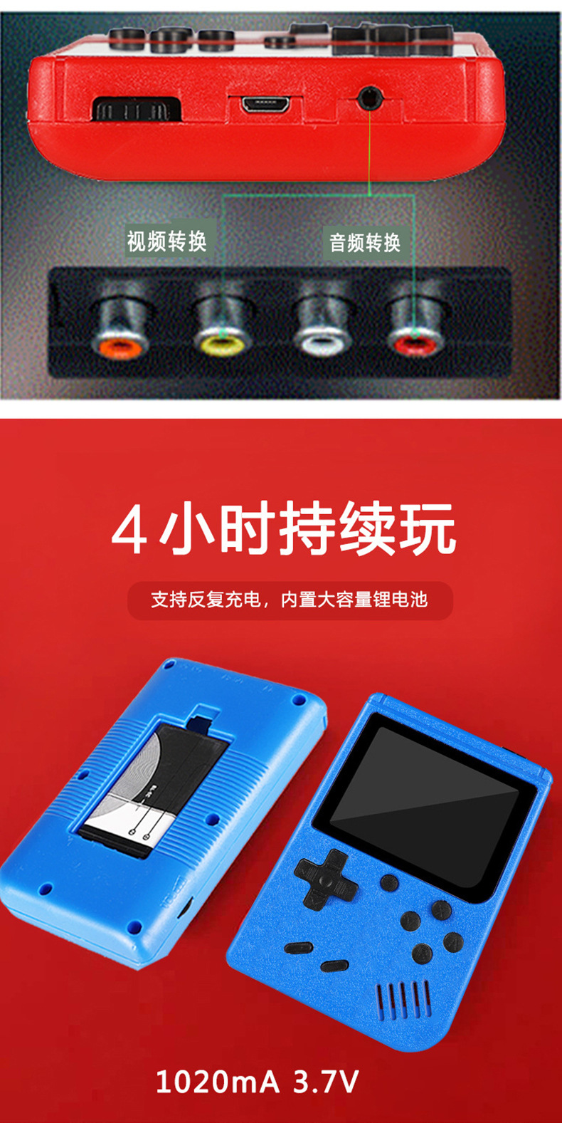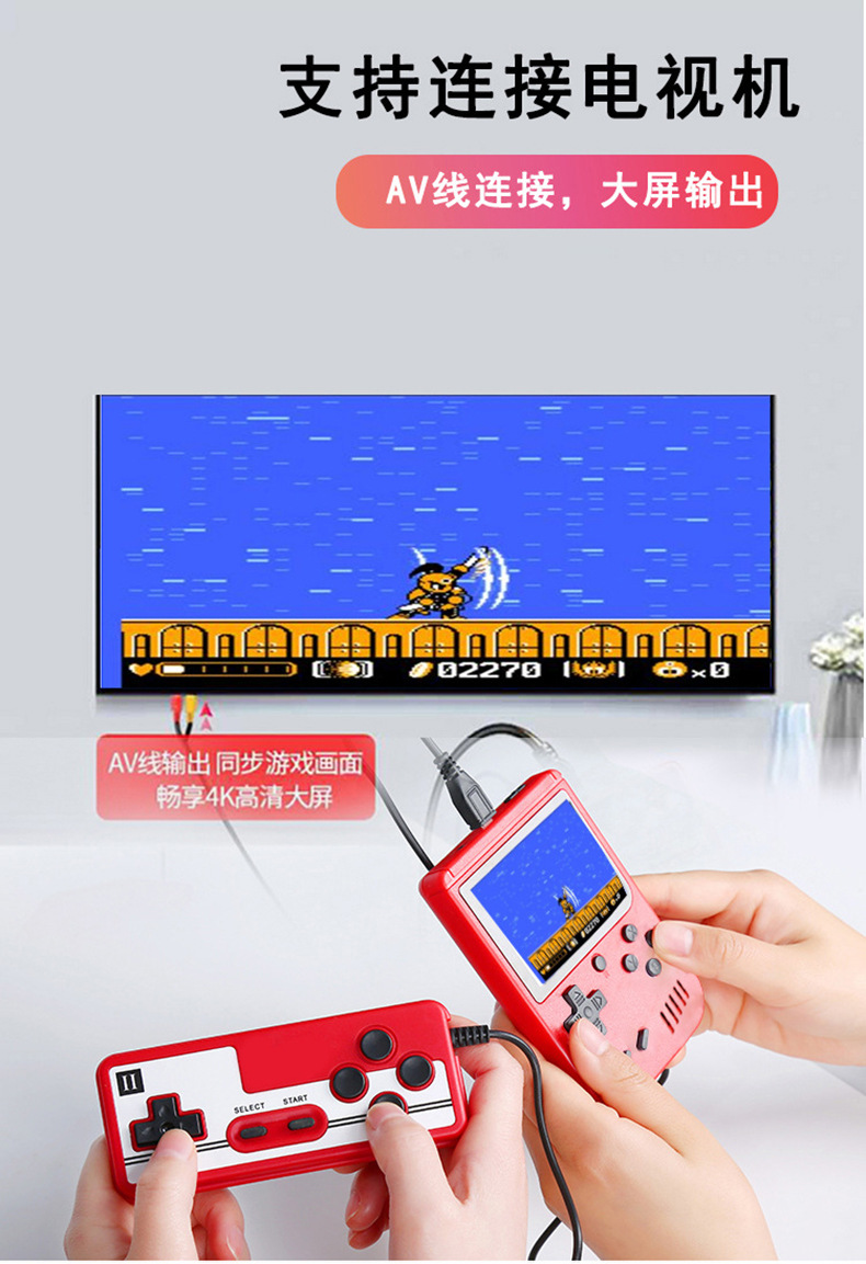 产品配置:包装+说明书+主机+电池+充电线+AV线(双人配一个手柄)