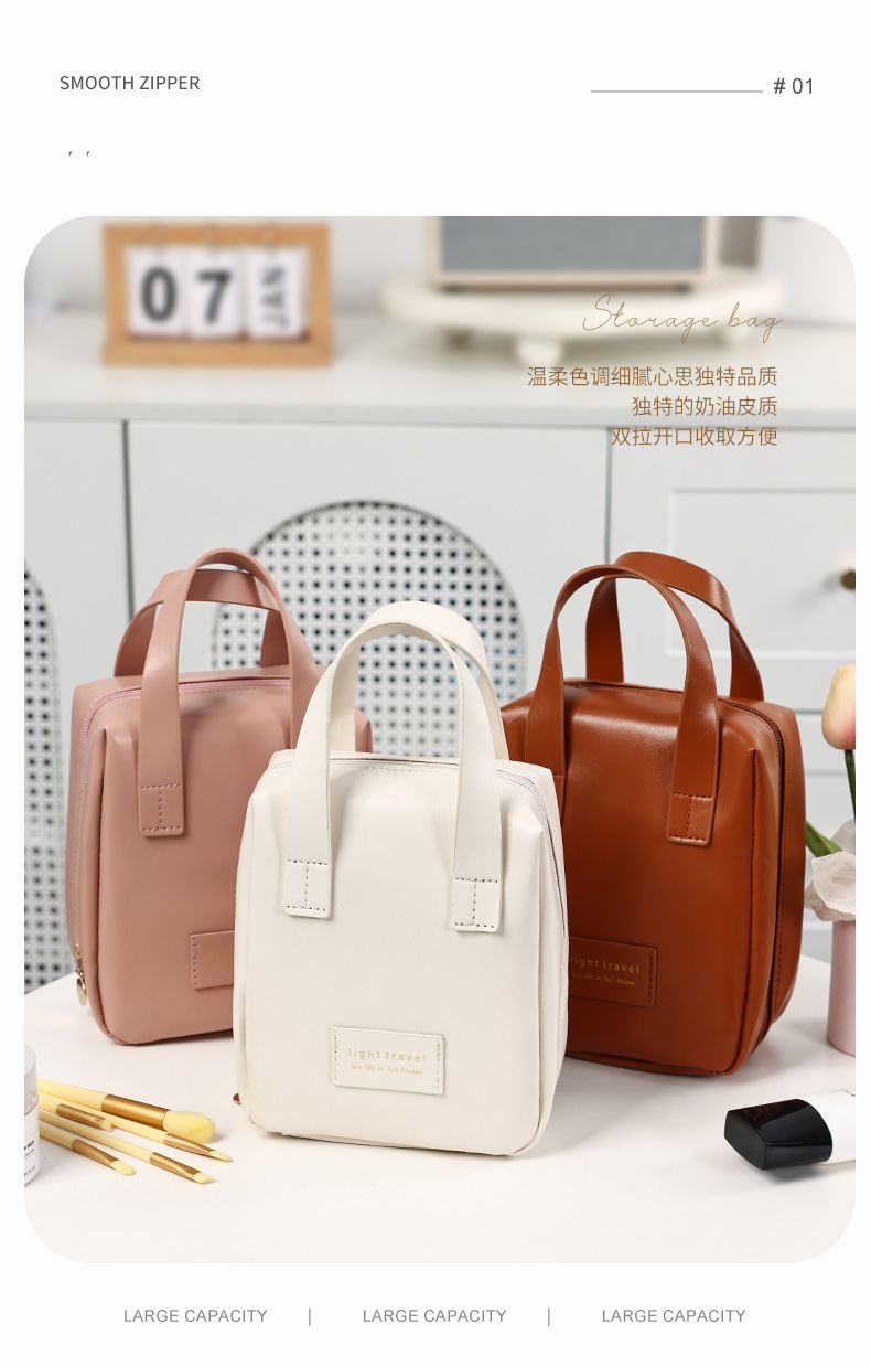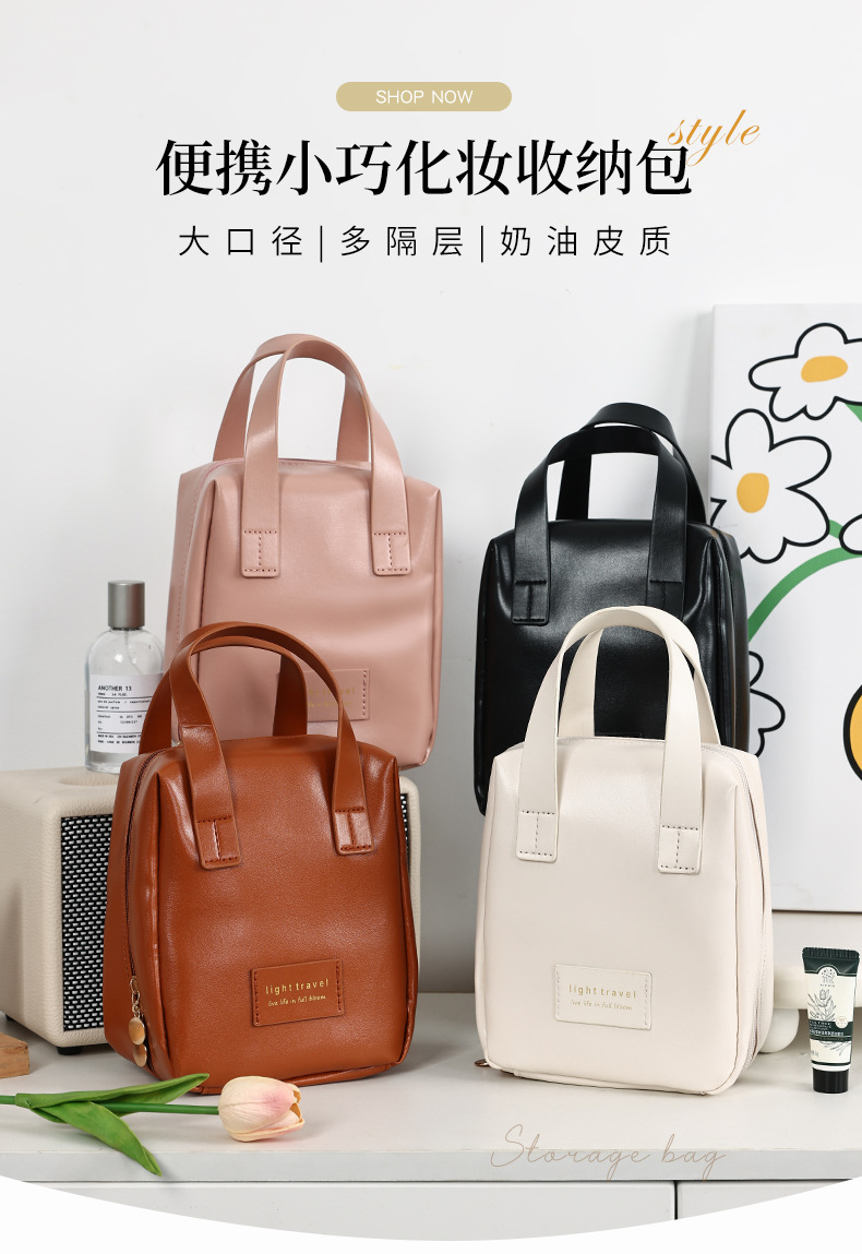 인기있는 스타일 쉘 휴대용 화장품 가방 Ins 스타일 여행 화장품 가방 높은 아름다움 가치 휴대용 PU 대용량 저장 가방