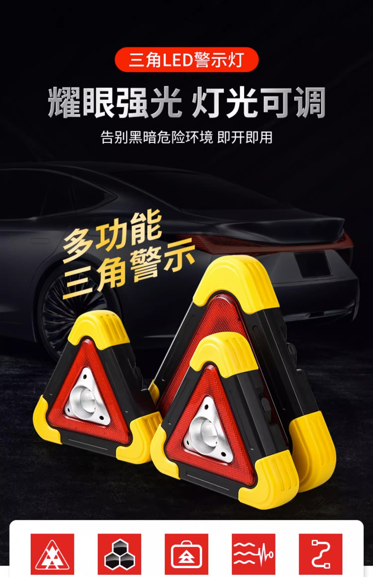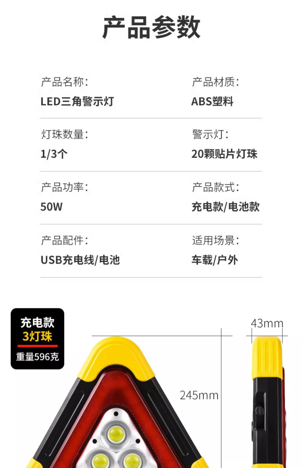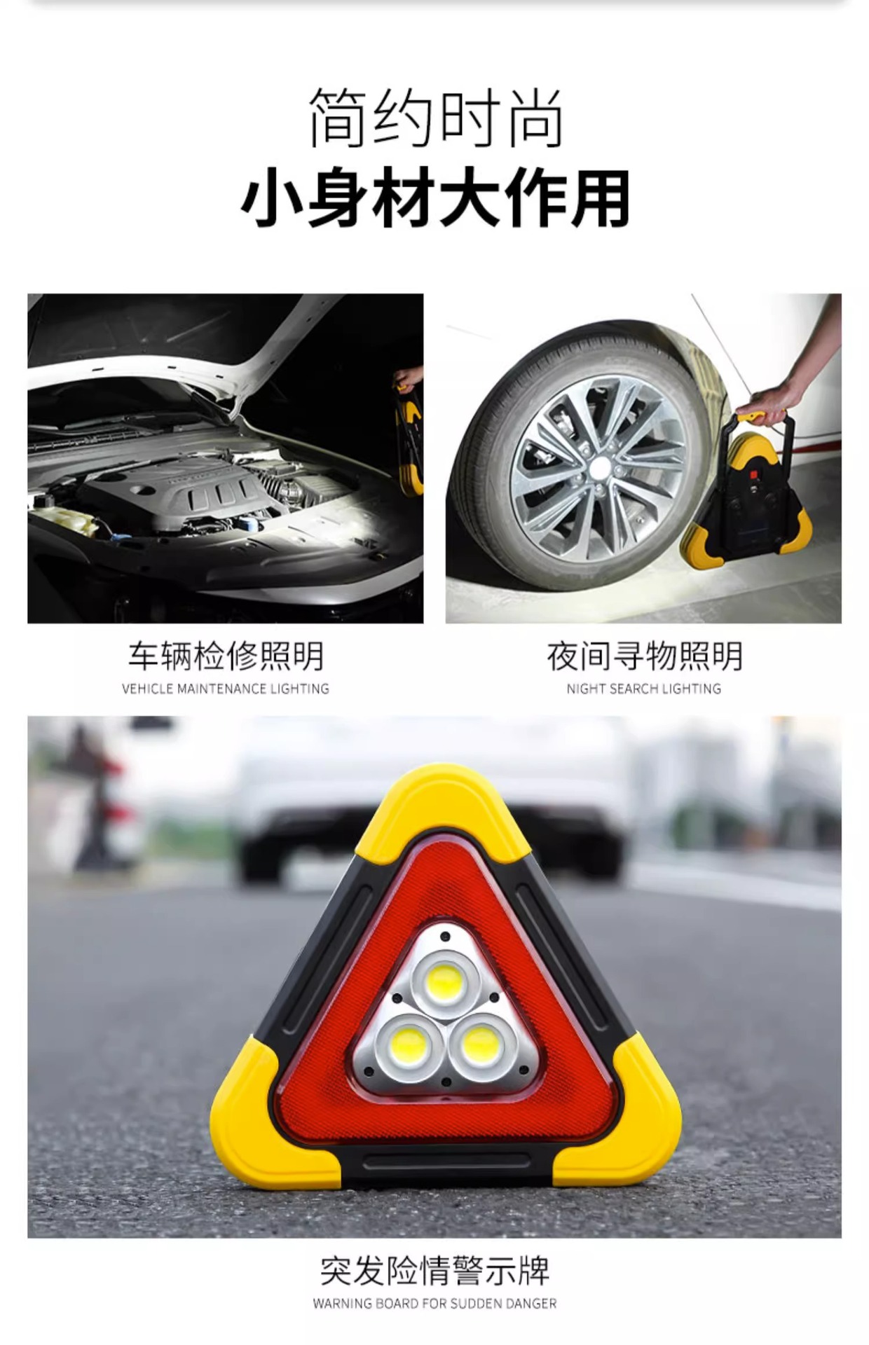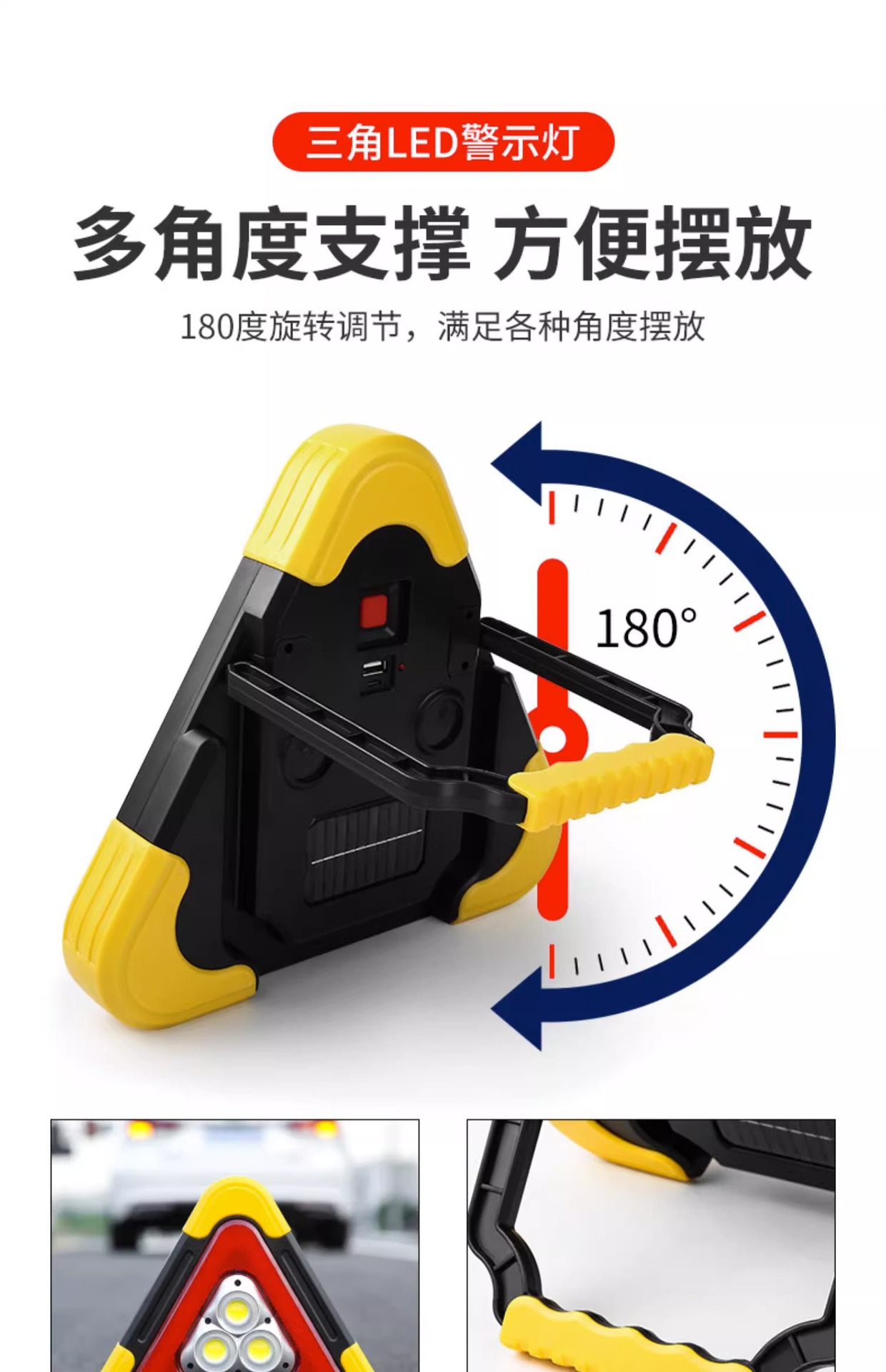 삼각대 경고등 LED 다기능 자동차 비상 조명 태양 자동차 공급 경고 표시 충전 플래시스토어 가기