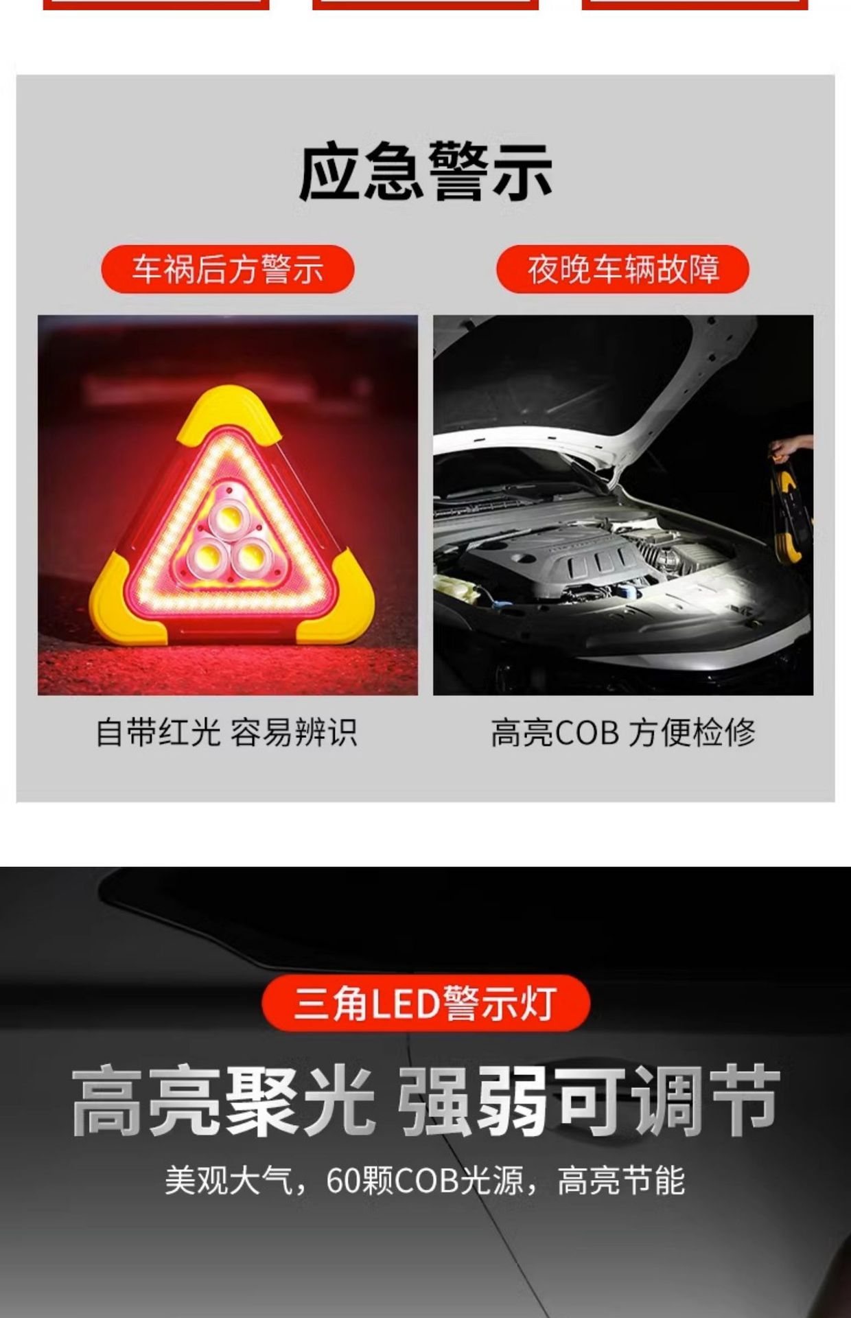 삼각대 경고등 LED 다기능 자동차 비상 조명 태양 자동차 공급 경고 표시 충전 플래시