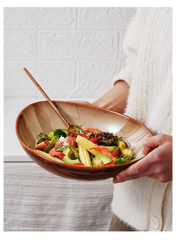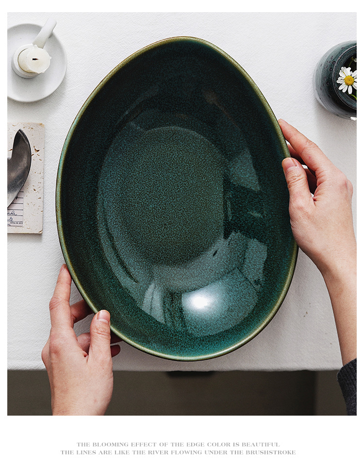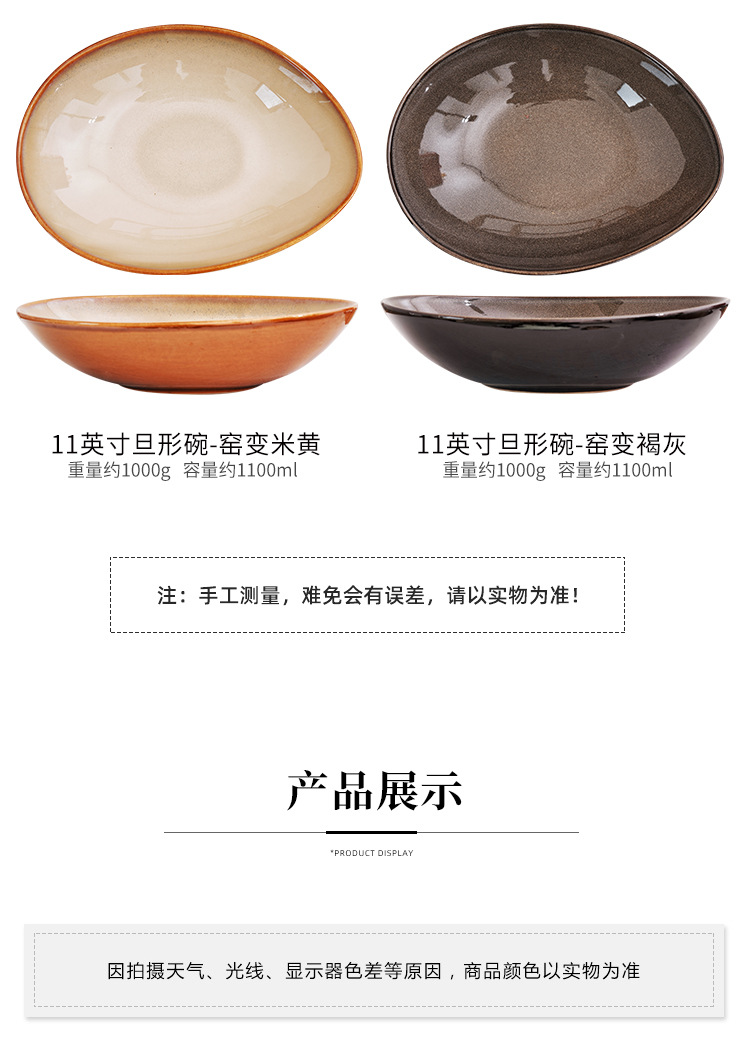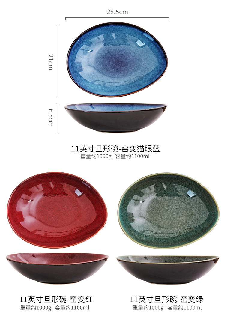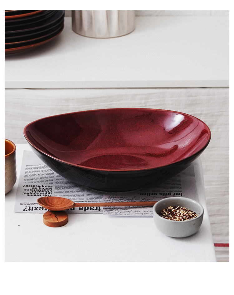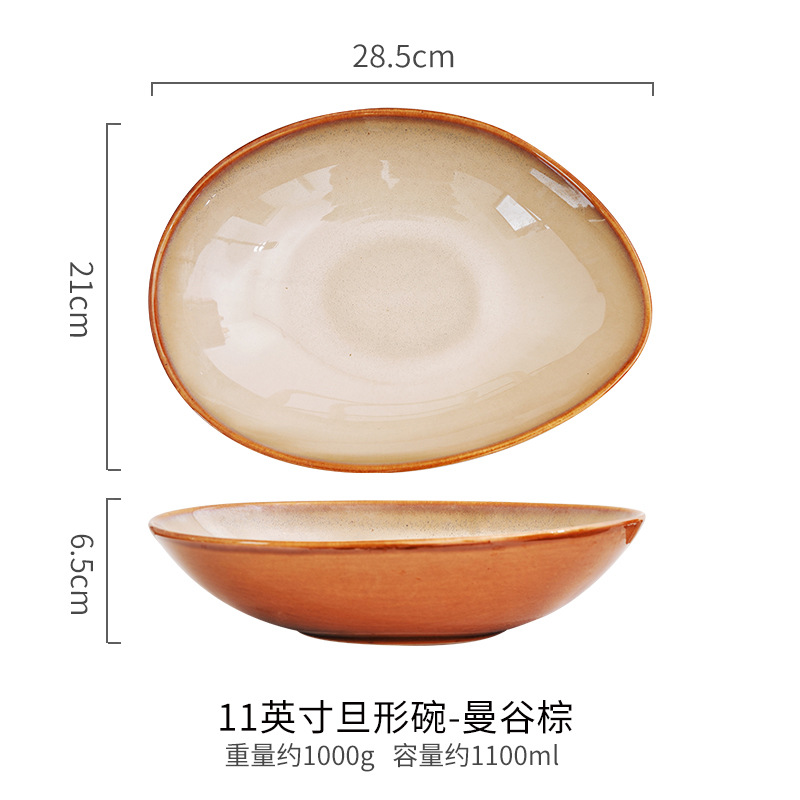 창조적 인 세라믹 불규칙한 그릇 Kiln Glaze 빈티지 레스토랑 파스타 그릇 가정용 대형 수프 그릇 램 그릇 샐러드 그릇