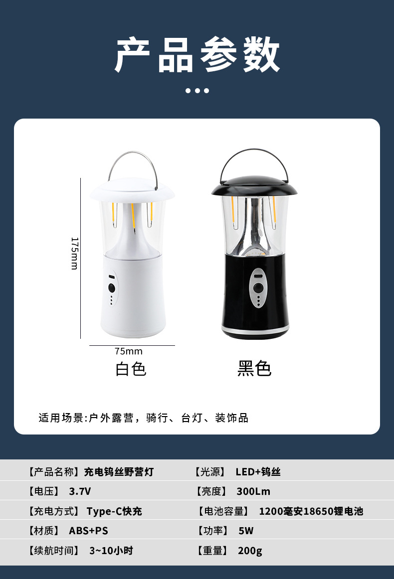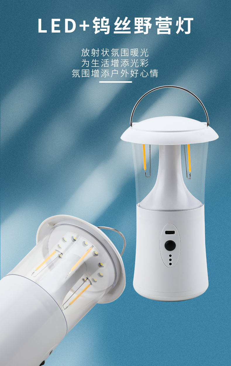 새로운 휴대용 야생 산 캠핑 아티팩트 텅스텐 램프 충전식 조명 텐트 램프 야외 캠핑 말 램프