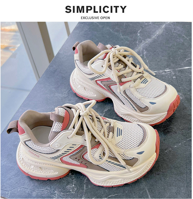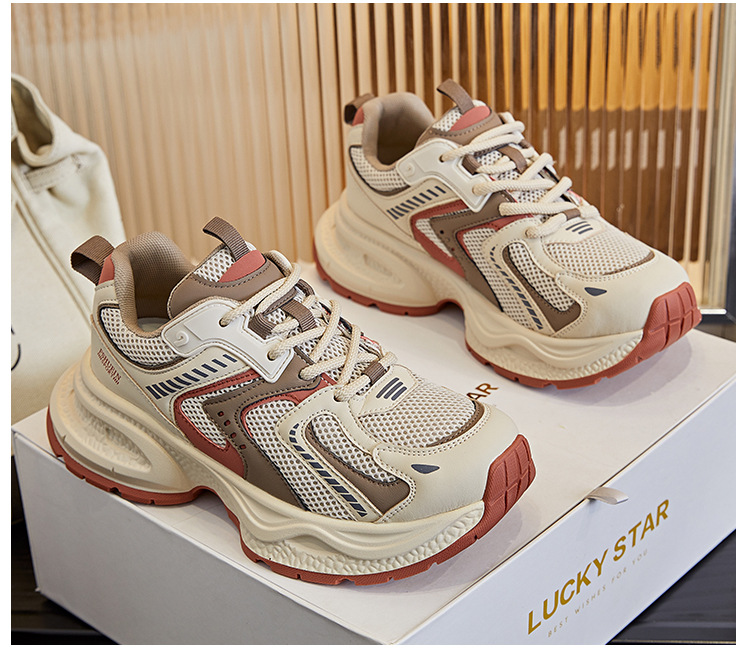 흡착 필름 바닥 아빠 신발 여성용 2025 봄 신상 두꺼운 밑창 통기성 운동화 여성 캐주얼 패션 다용도 신발 여성용
