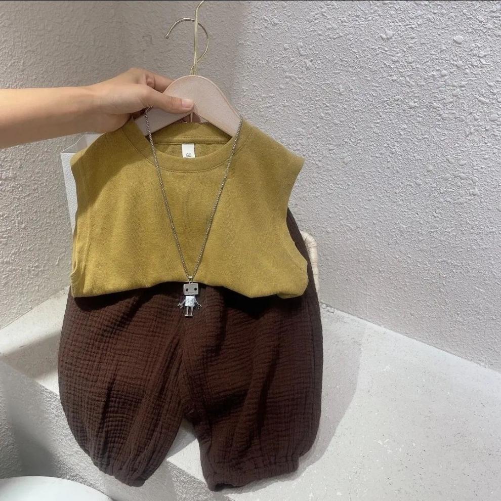 아기 민소매 조끼 세트 여름 2024 새로운 스타일 소년 여름 투피스 어린이 여름 옷 아동복 조수스토어 가기