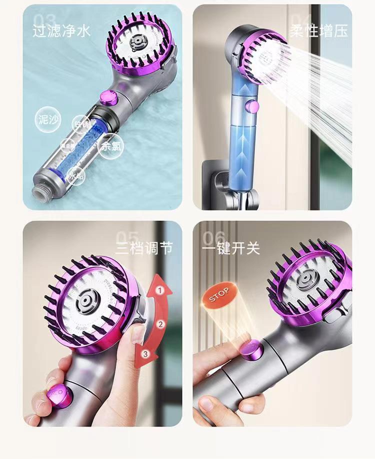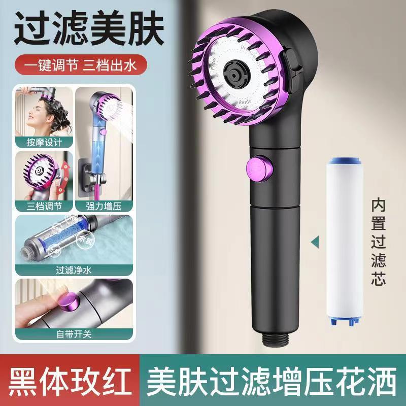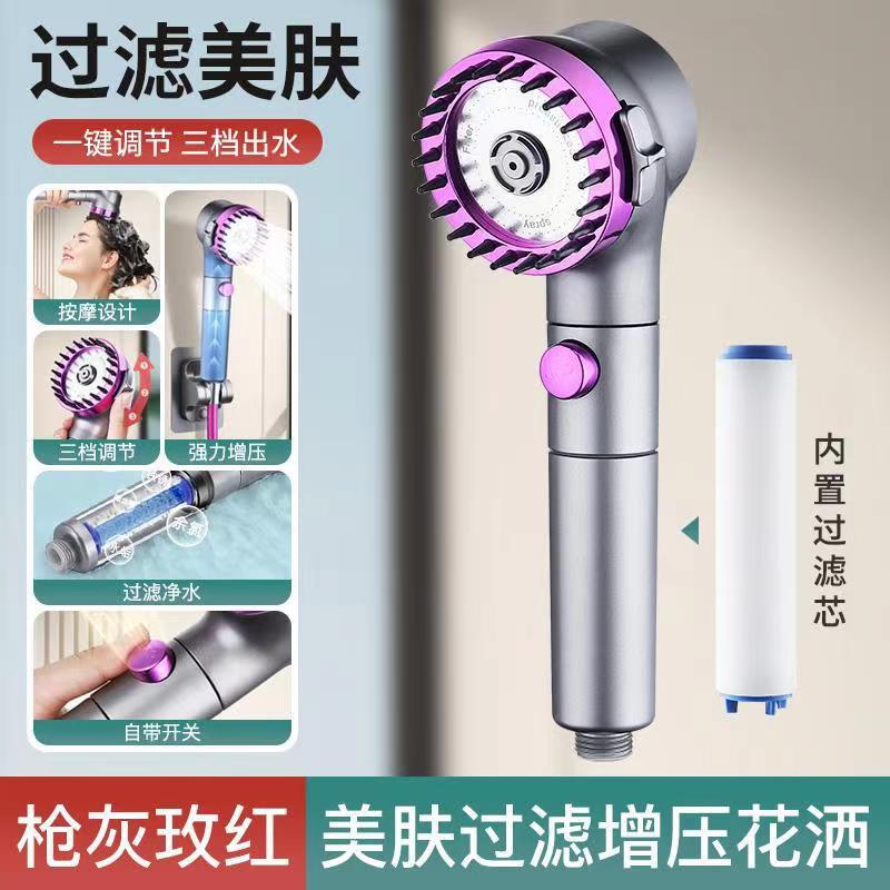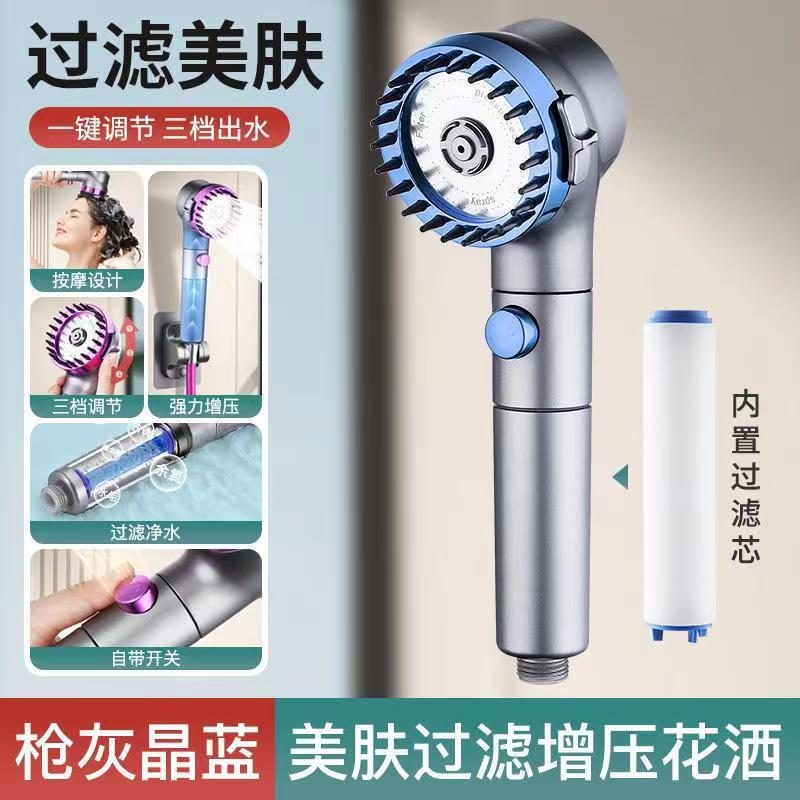 욕실 필터 3 기어 가압 목욕 샤워 헤드 강화 가압 샤워 가정용 샤워 헤드 샤워 헤드
