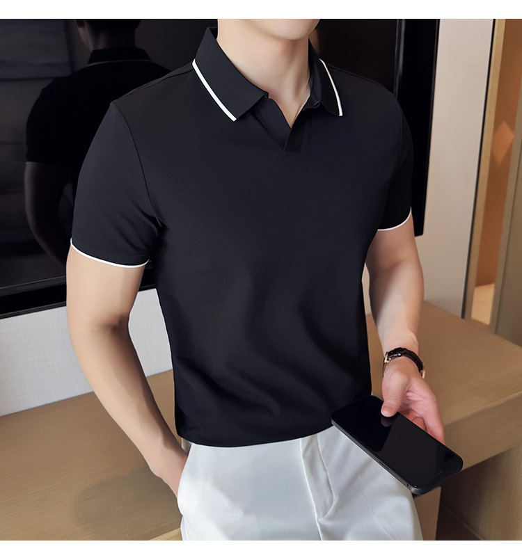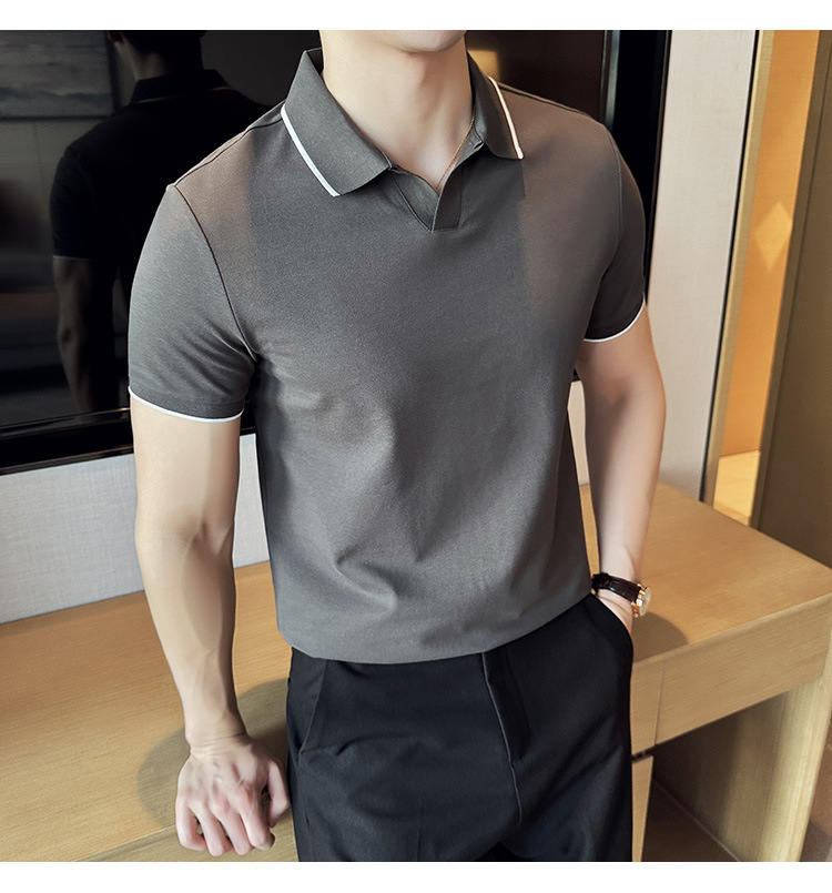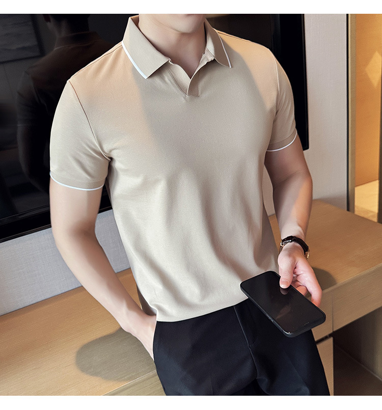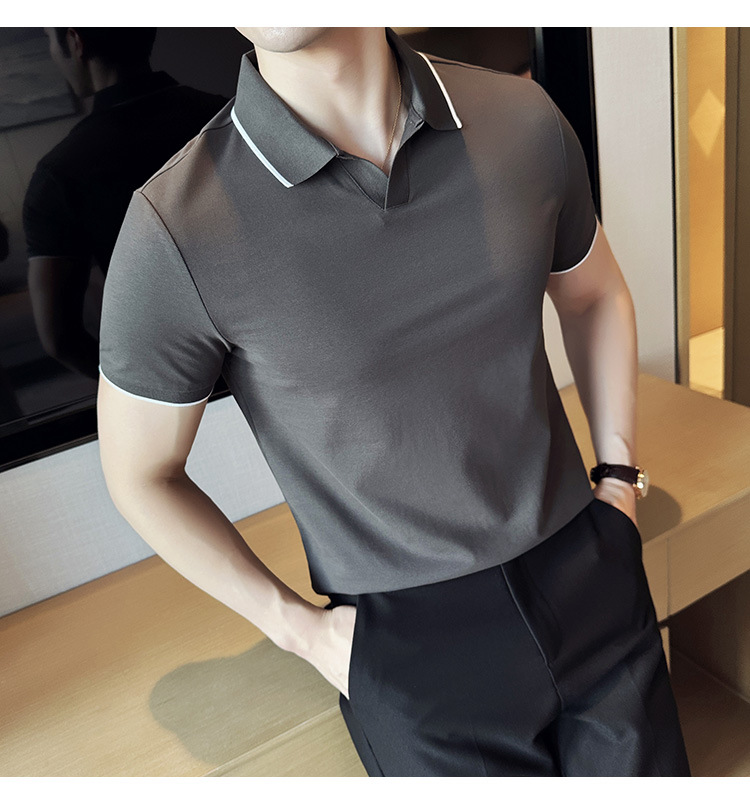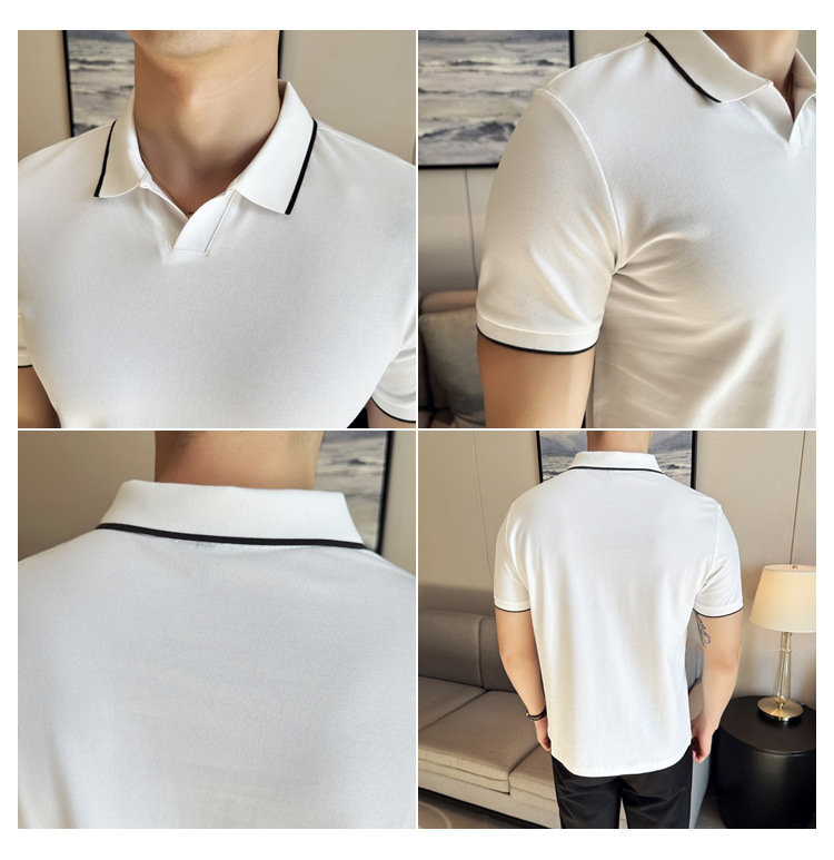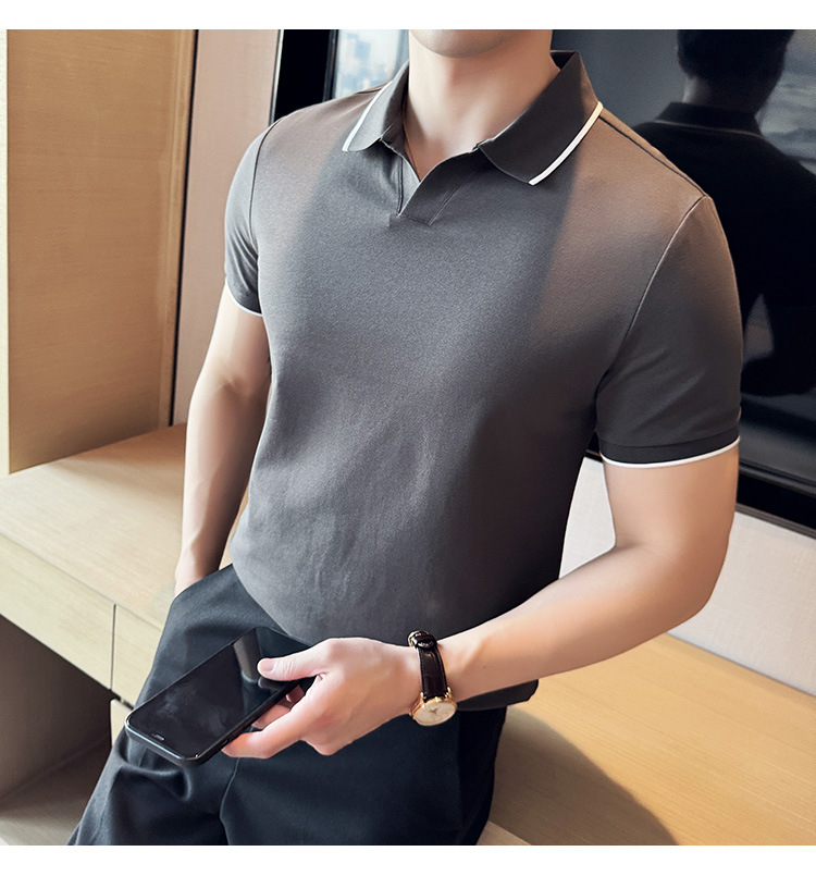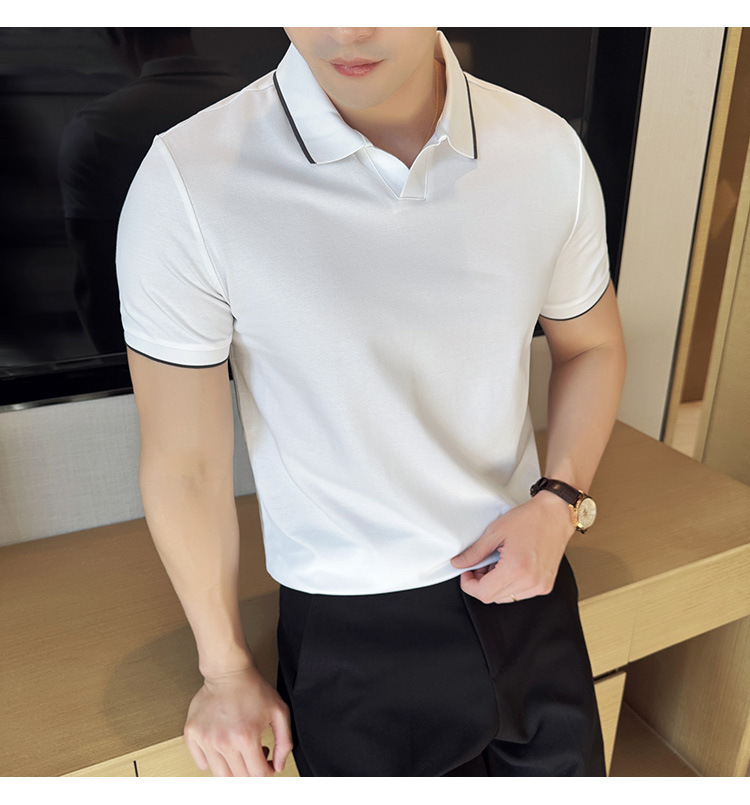 여름 머서라이즈 피케 코튼 라펠 반팔 폴로 셔츠 남성 비즈니스 라이트 럭셔리 솔리드 컬러 캐주얼 탑 v 넥 티셔츠 트렌디스토어 가기