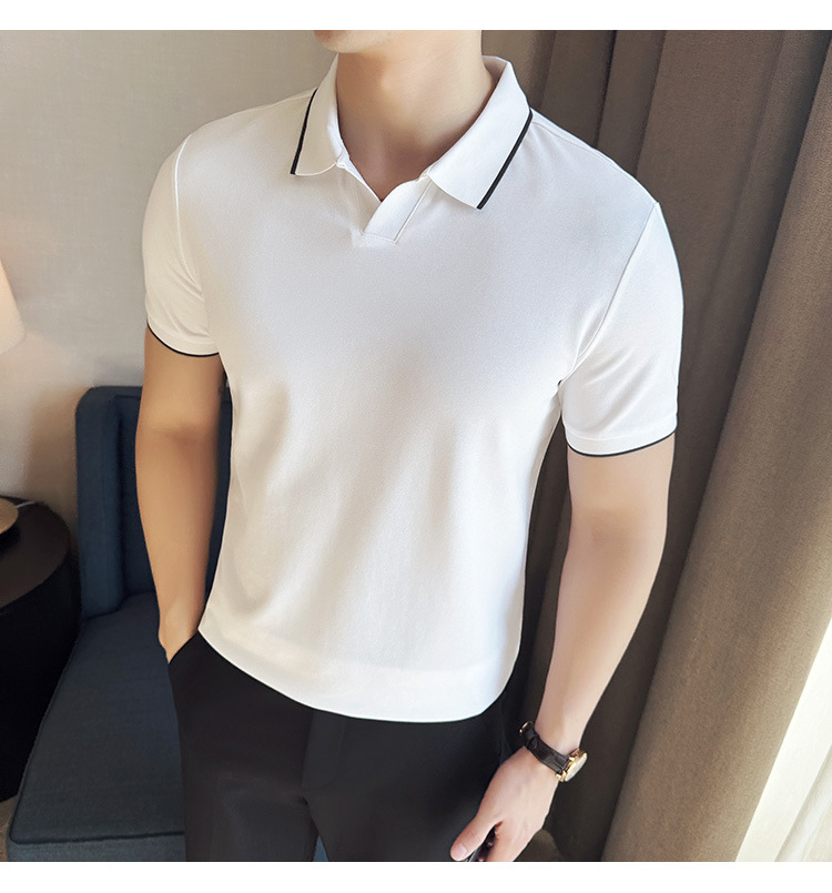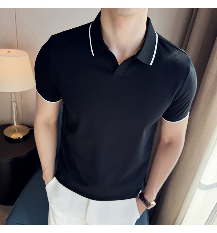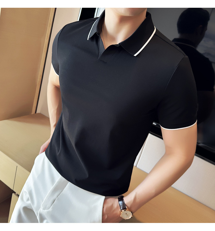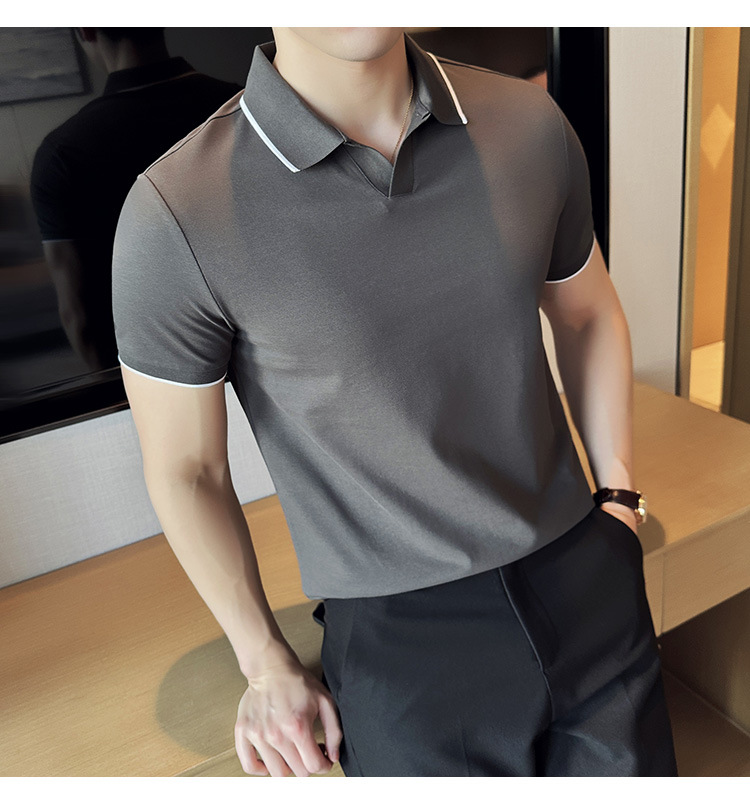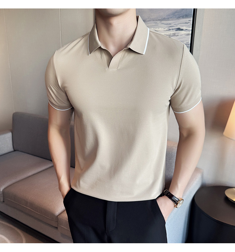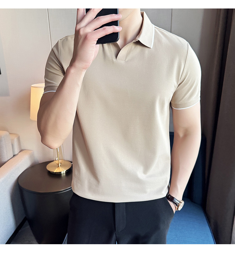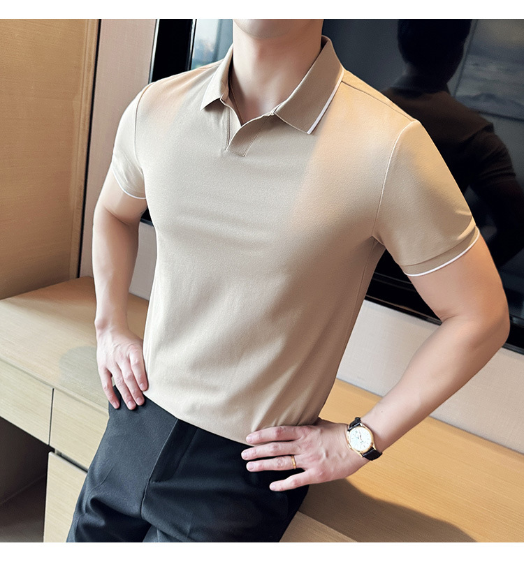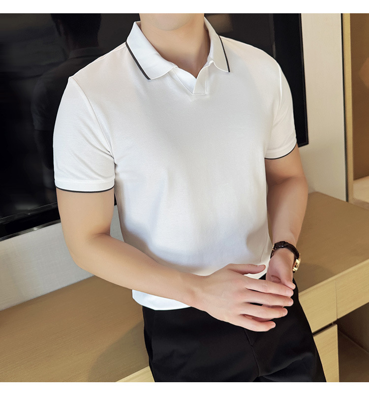 여름 머서라이즈 피케 코튼 라펠 반팔 폴로 셔츠 남성 비즈니스 라이트 럭셔리 솔리드 컬러 캐주얼 탑 v 넥 티셔츠 트렌디스토어 가기