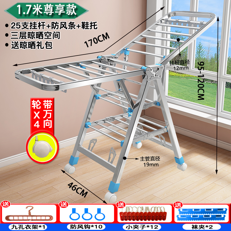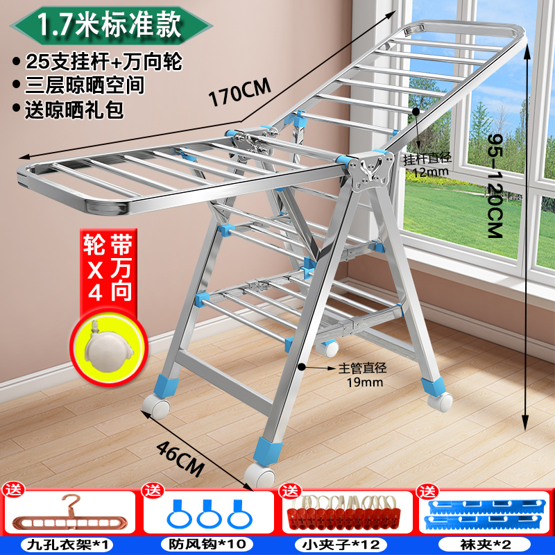건조 랙 바닥 접이식 침실 스테인레스 스틸 가정용 발코니 멋진 옷 랙 로드 아기 건조 퀼트 Beiqin스토어 가기