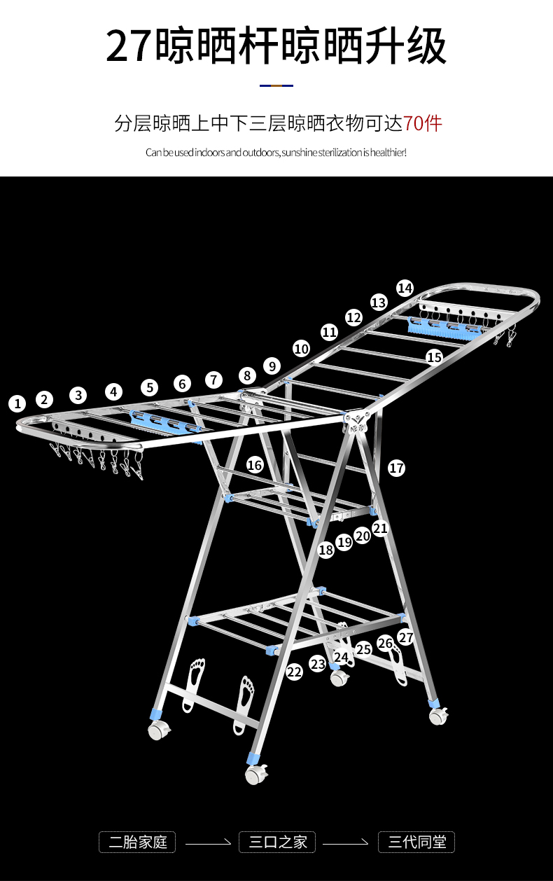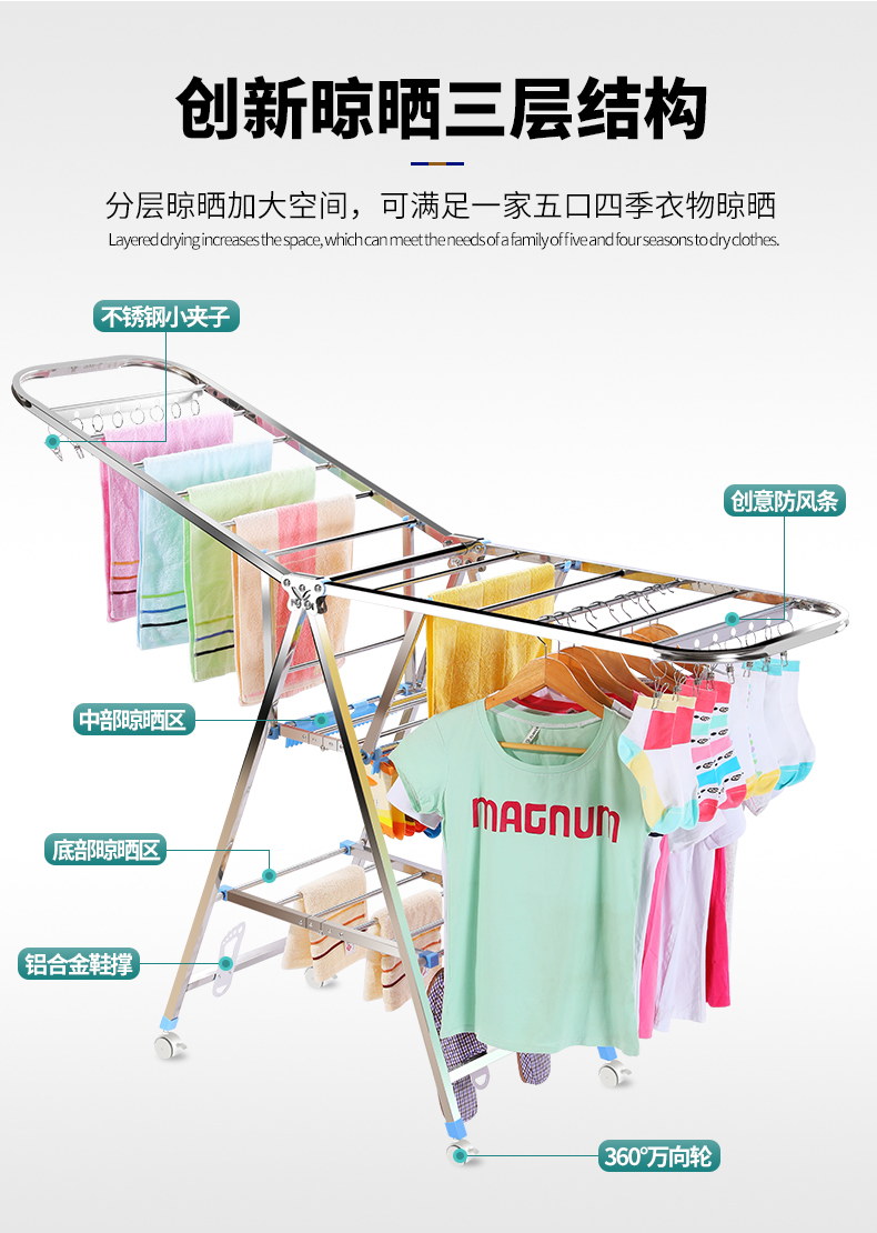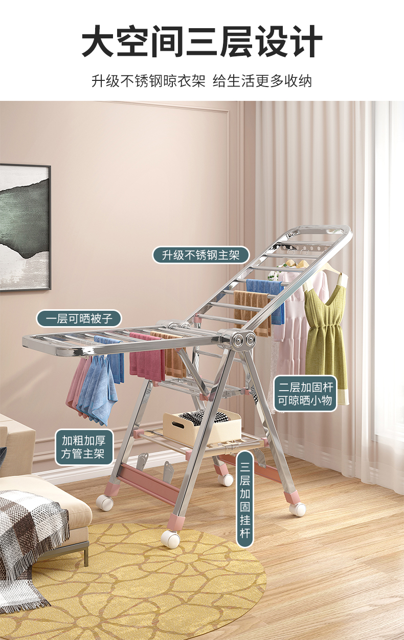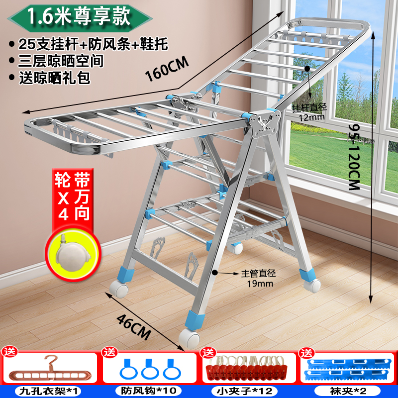 건조 랙 바닥 접이식 침실 스테인레스 스틸 가정용 발코니 멋진 옷 랙 로드 아기 건조 퀼트 Beiqin