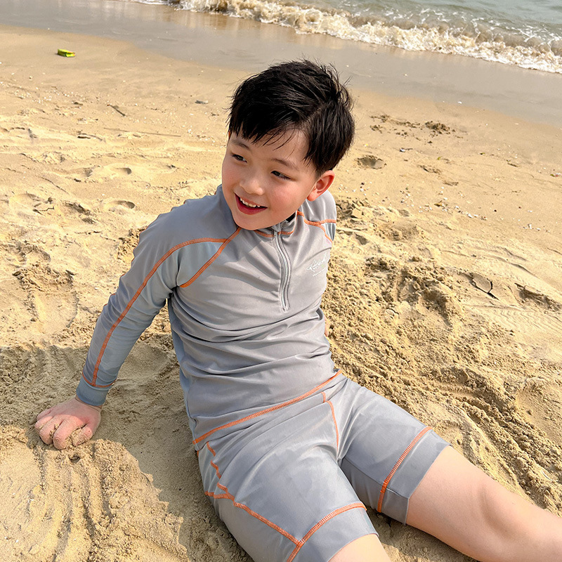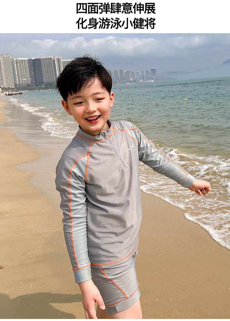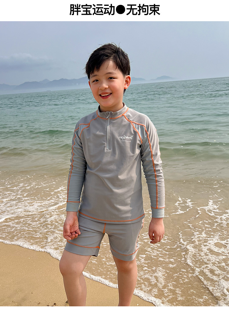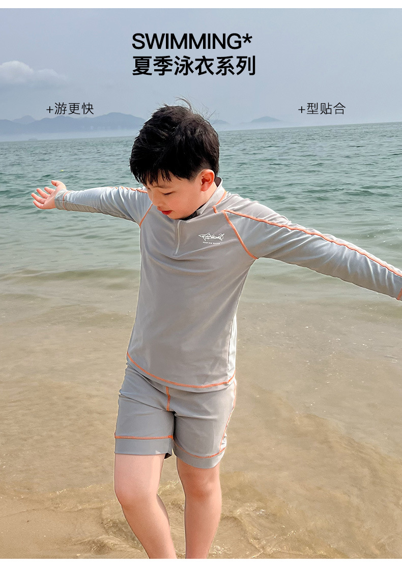 새로운 여름 수영복 남성용 십대 스플릿 수영복 바지 세트 긴팔 비치 패셔너블 수영복스토어 가기