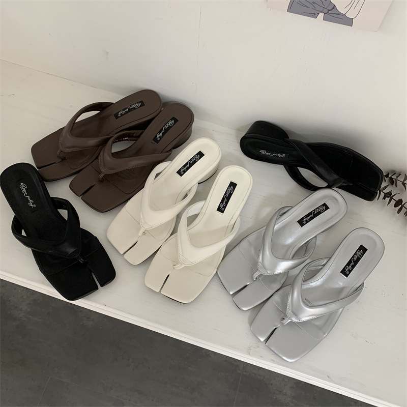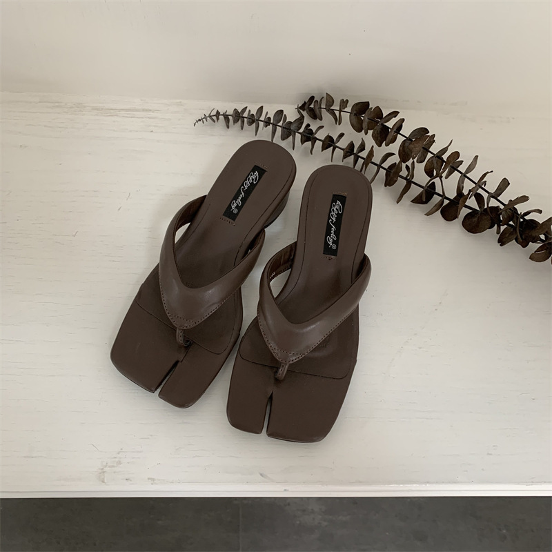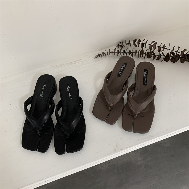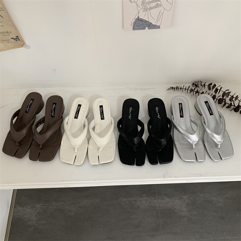 2024 새로운 샌들 슬리퍼 여성 여름 의상 디자인 틈새 복고풍 돼지 발가락 신발 여성용 플립 플롭스토어 가기