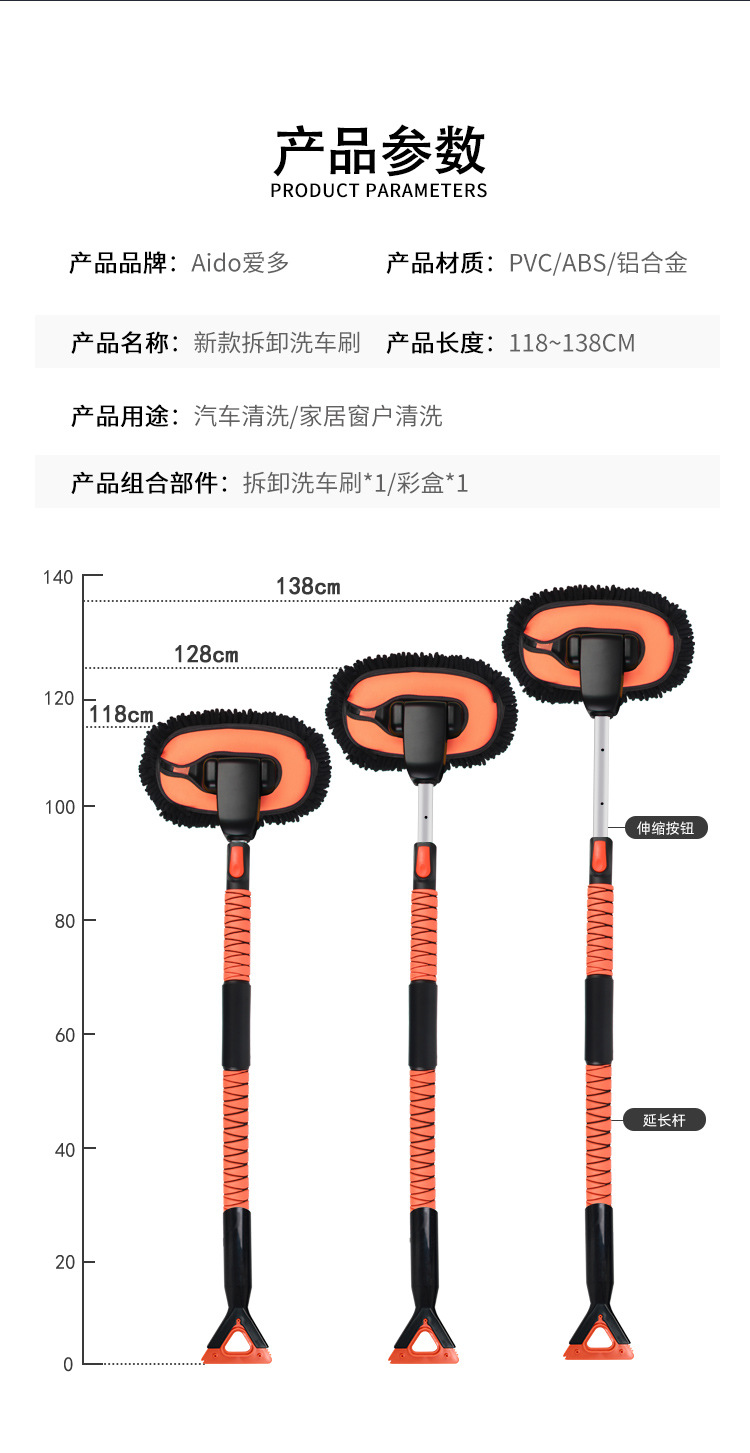 공장 직접 판매 자동차 용품 개폐식 얼음 삽 타입 분해 셔닐 세차 브러시 얼음 제거 및 제설스토어 가기