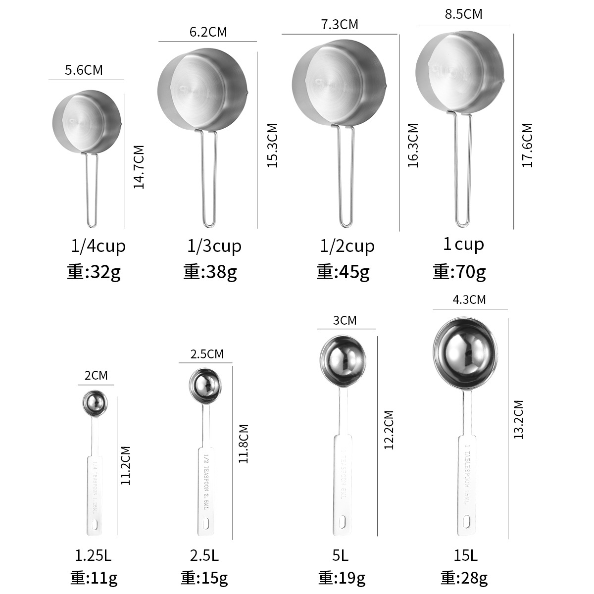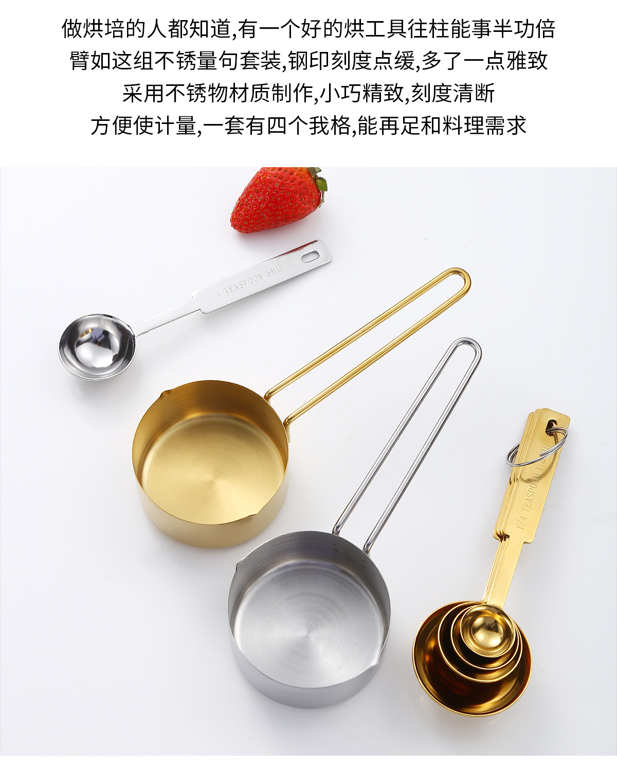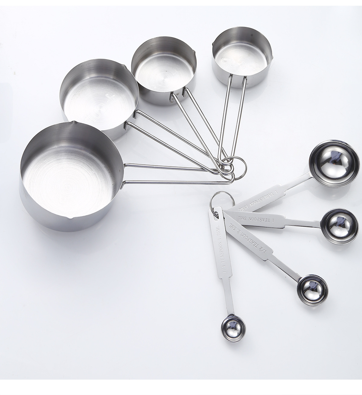 스테인레스 스틸 측정 컵 측정 스푼 세트 조미료 가정용 주방 호텔 베이킹 가제트 라인 핸들 측정 스푼 세트
