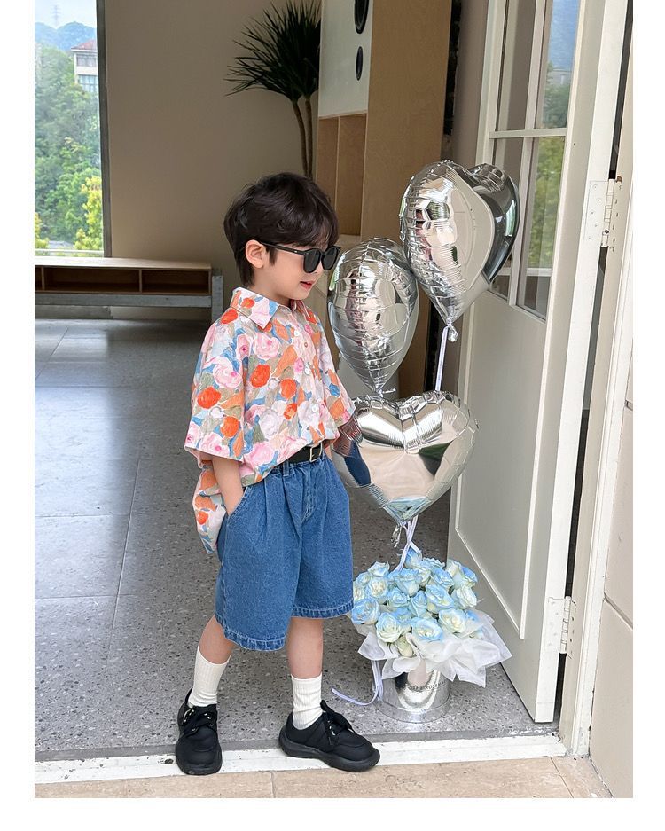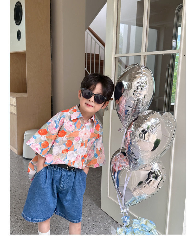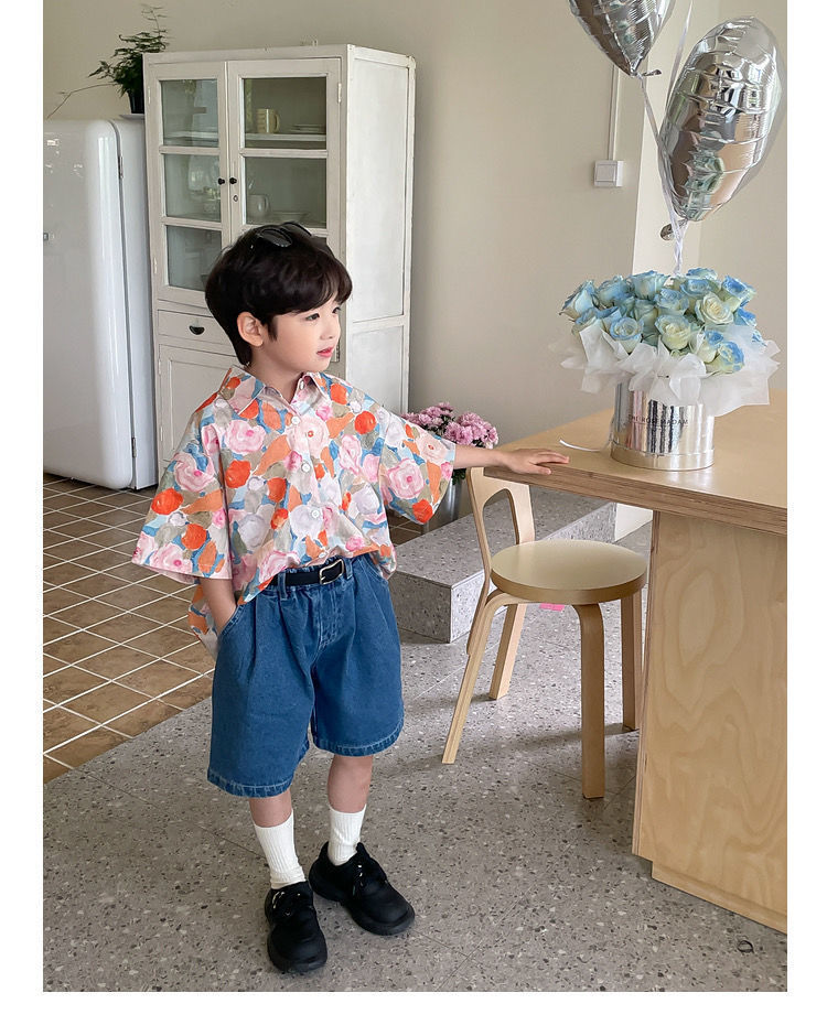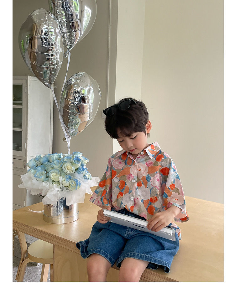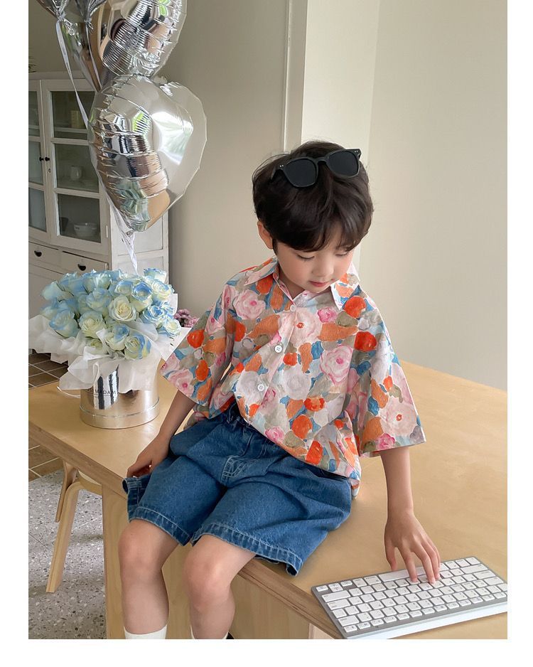 여름 어린이 꽃 셔츠 얇은 느슨한 레트로 캐주얼 셔츠 얇은 최고 유행 디자인 감각 틈새스토어 가기