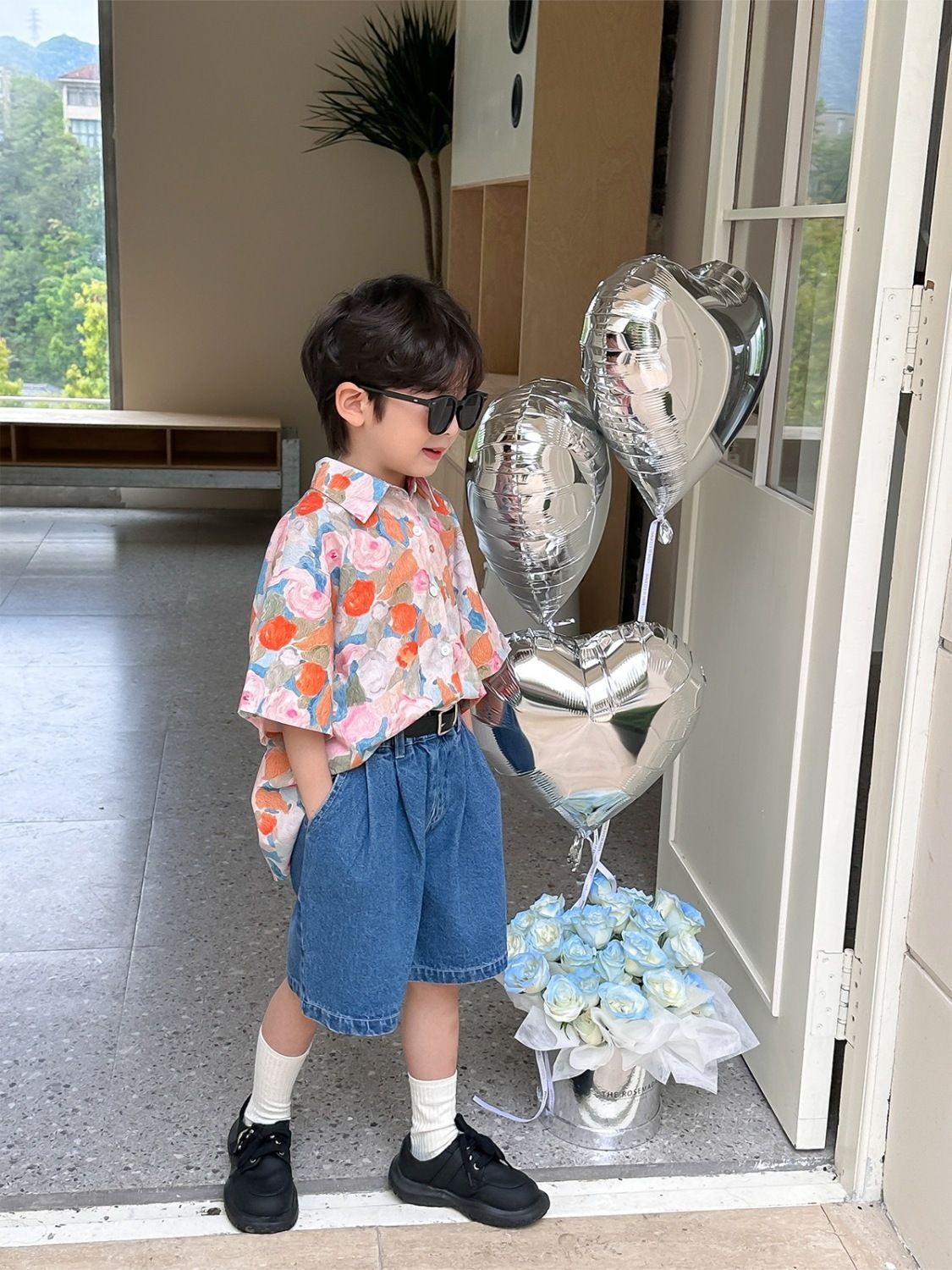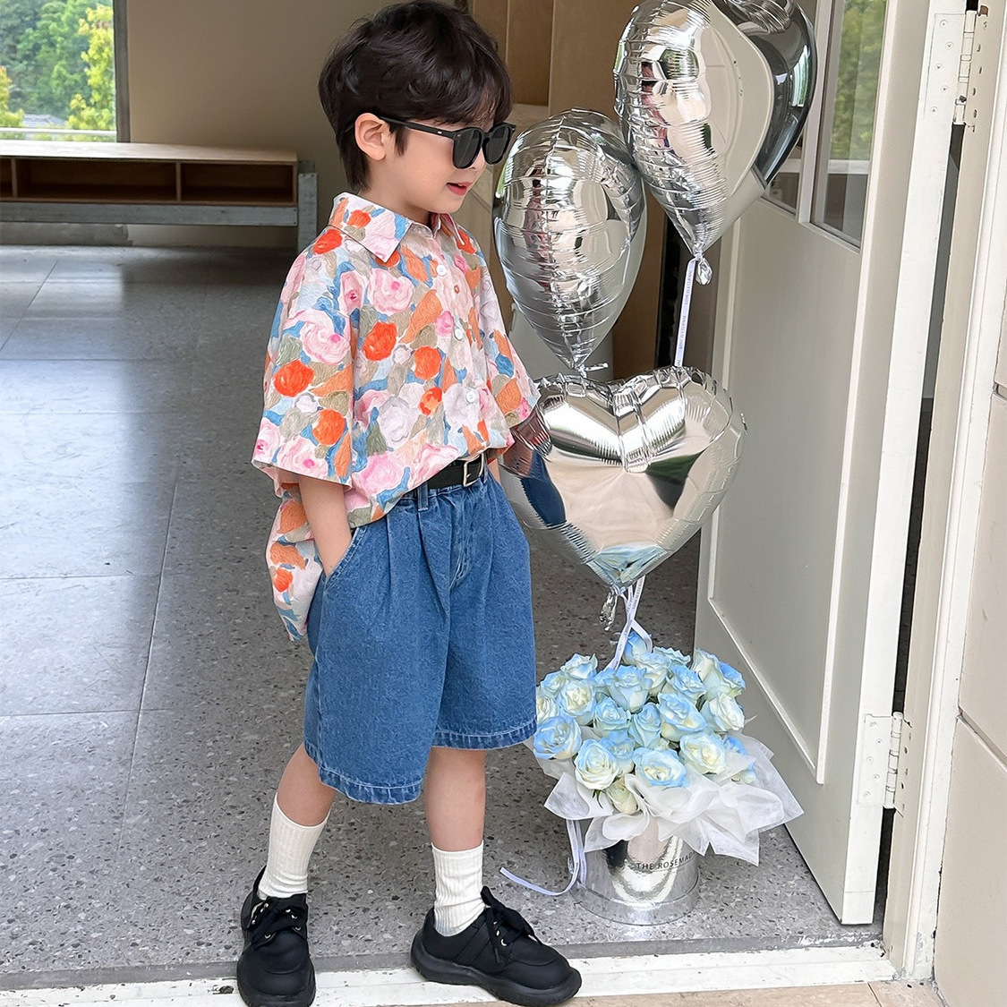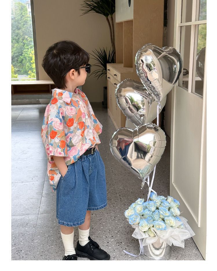 여름 어린이 꽃 셔츠 얇은 느슨한 레트로 캐주얼 셔츠 얇은 최고 유행 디자인 감각 틈새스토어 가기
