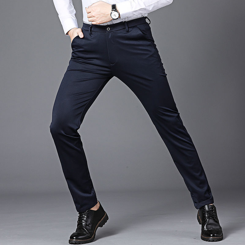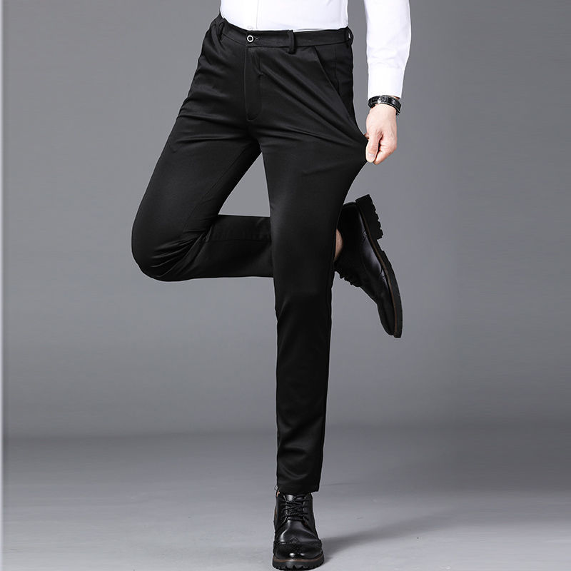 여름 얇은 스트레치 슬림 핏 캐주얼 바지 남자 한국식 서양식 바지 남자 주름 방지 비 다림질 올 매치 블랙 바지 남자 바지스토어 가기
