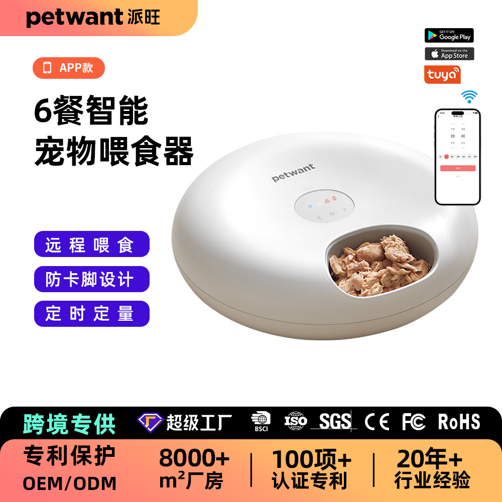 파이왕 6식 자동 애완동물 급식기 앱 원격 WIFI 타이머 설정 고양이 급식기 스마트 급식기