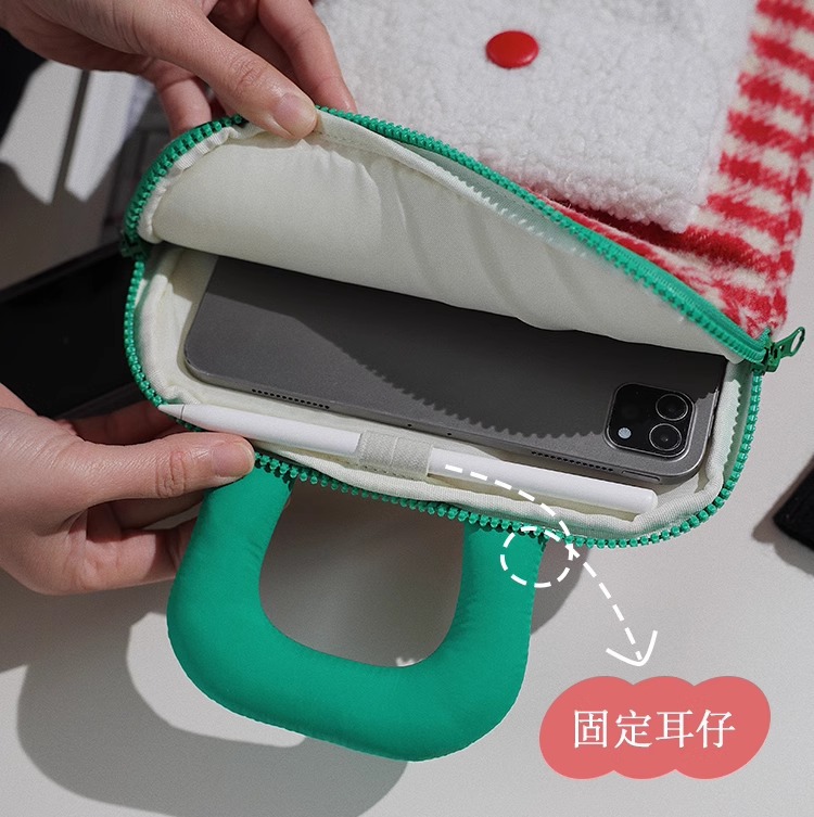 한국 스타일의 트렌디한 새로운 모직 아이패드 수납 가방, 부드럽고 푹신한 휴대용 충격 방지 및 낙하 방지 11inch 태블릿 컴퓨터 가방스토어 가기