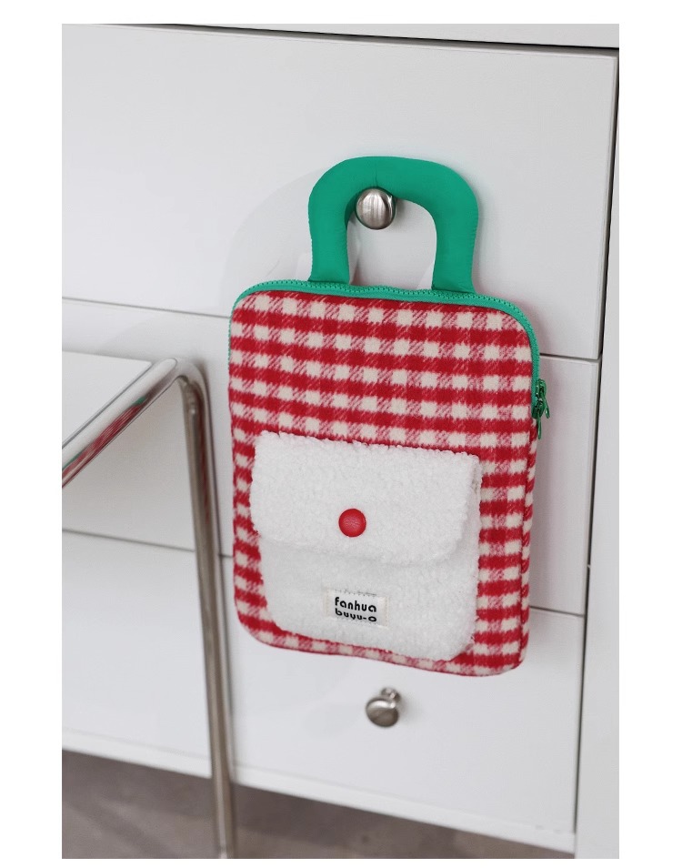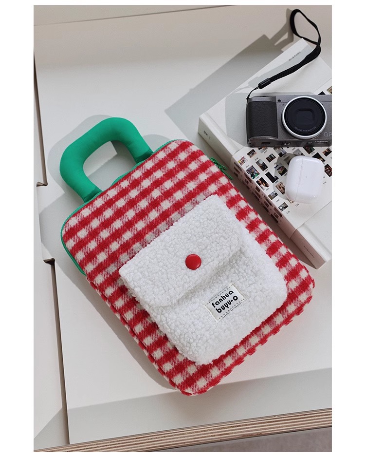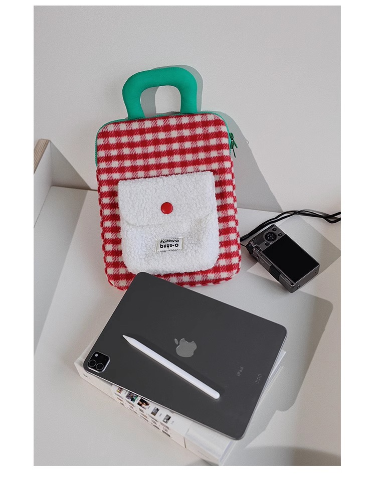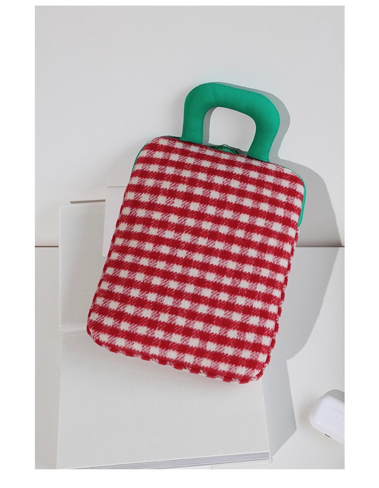 한국 스타일의 트렌디한 새로운 모직 아이패드 수납 가방, 부드럽고 푹신한 휴대용 충격 방지 및 낙하 방지 11inch 태블릿 컴퓨터 가방