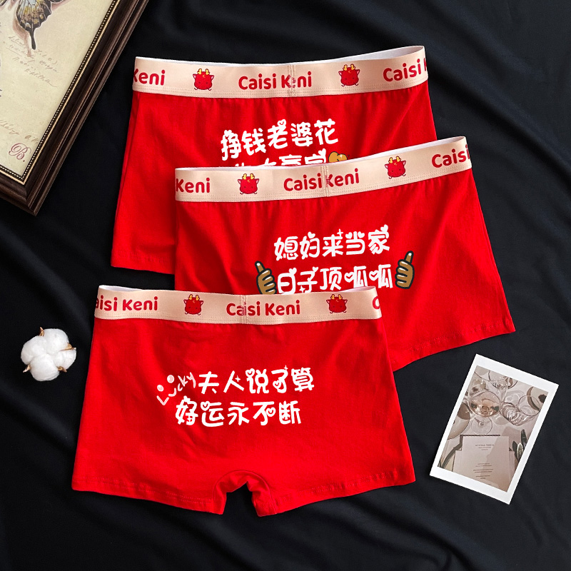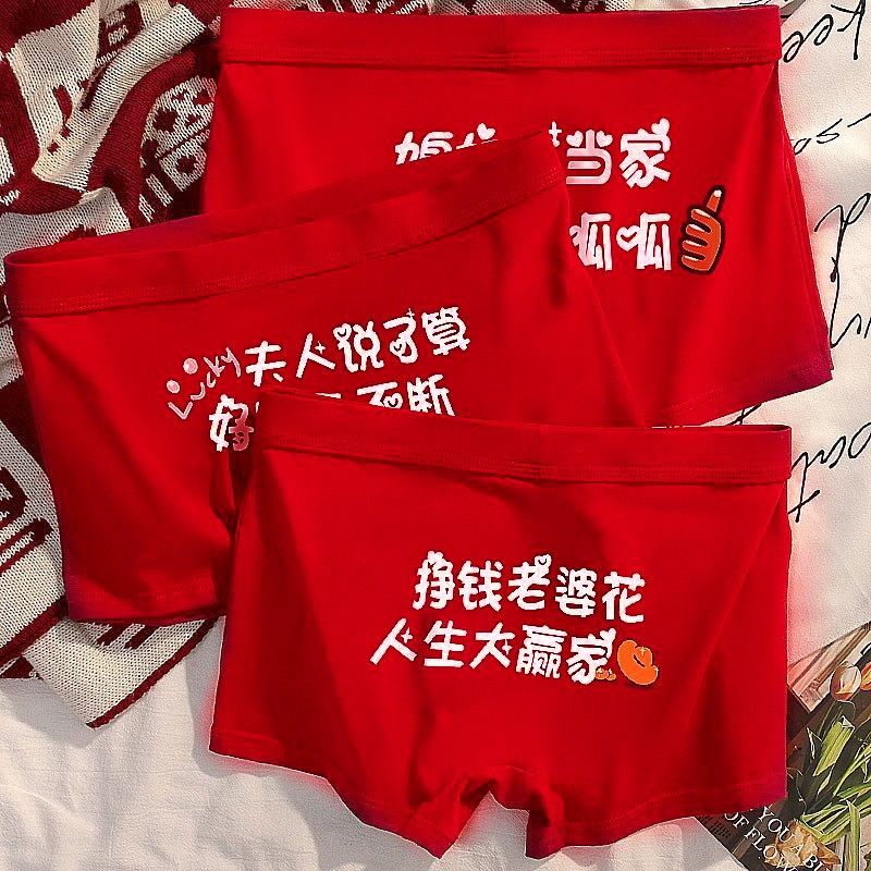 나는 아내의 인생을 사랑한다. 남자 속옷 붉은 면화 소년 복서 반바지 남편 남자의 붉은 새해스토어 가기