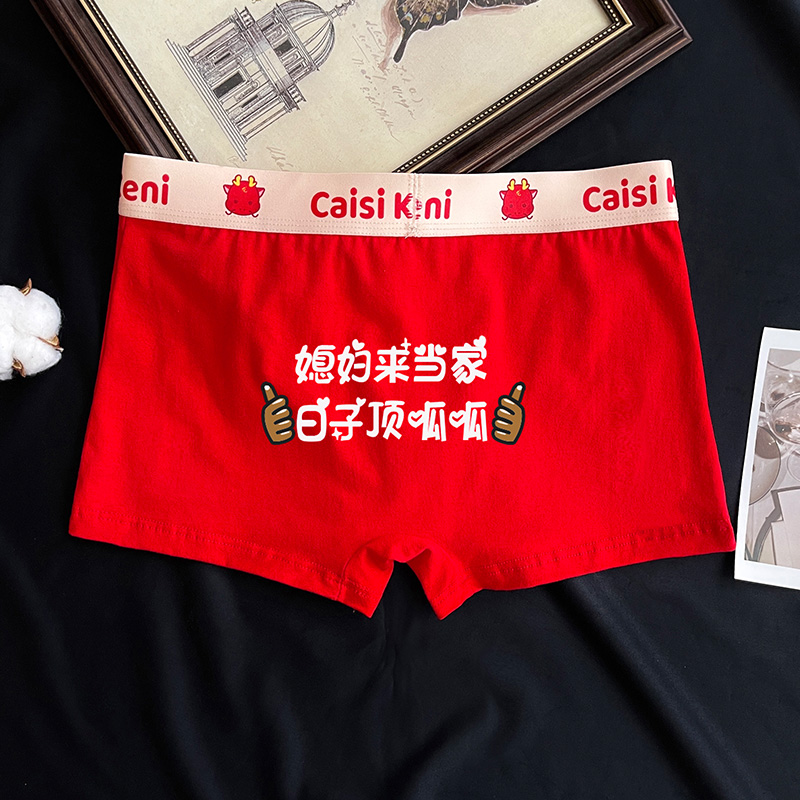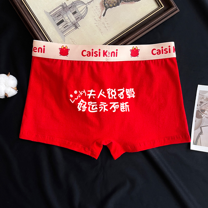 나는 아내의 인생을 사랑한다. 남자 속옷 붉은 면화 소년 복서 반바지 남편 남자의 붉은 새해